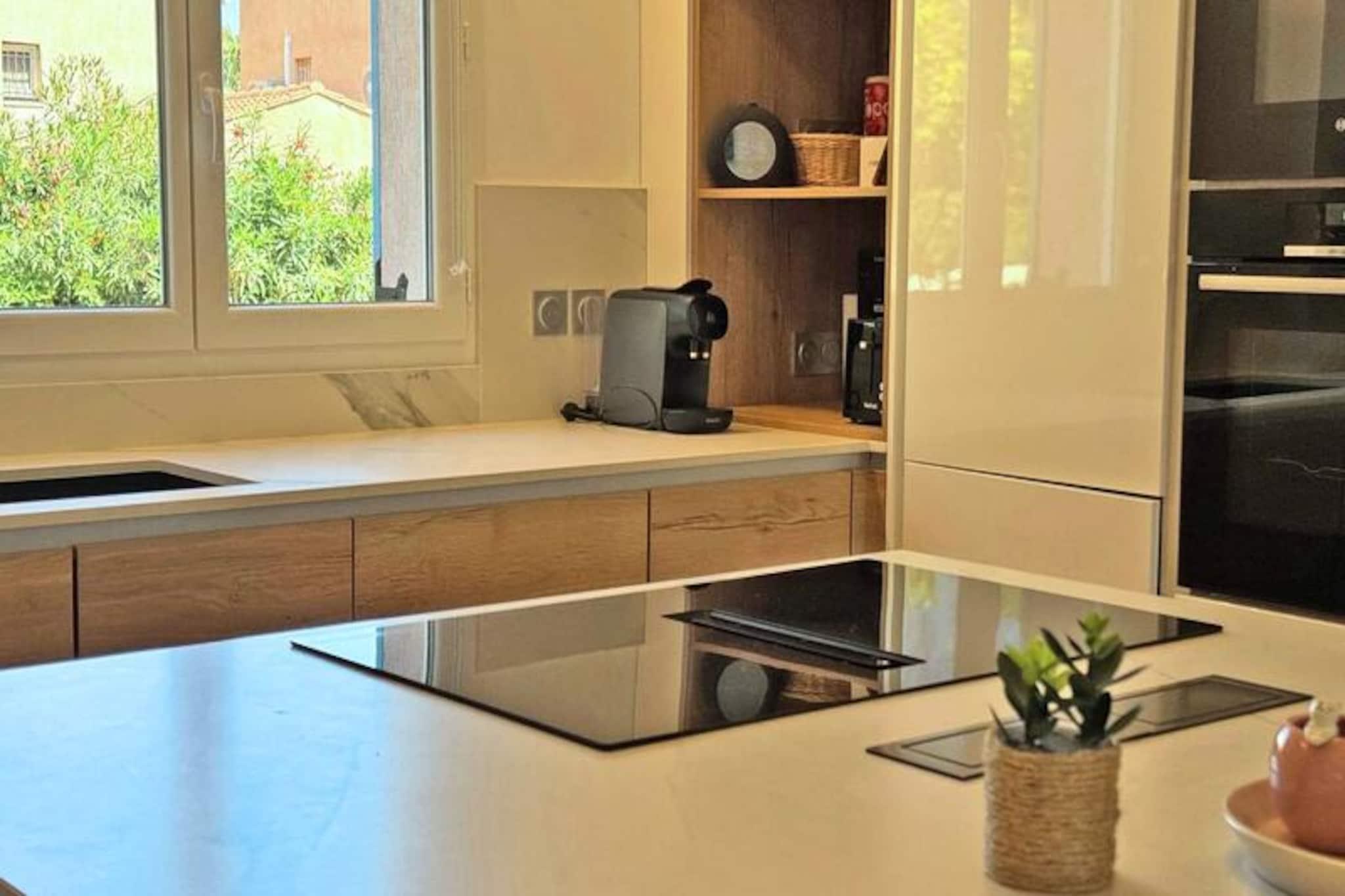 Nur wenige Schritte vom goldenen Sandstrand des Mittelmeers entfernt, bietet dieses charmante Doppelhaus in der exklusiven Casa Di Mare Residence einen luxuriösen Rückzugsort für bis zu 10 Gäste. Umgeben von einer ruhigen, abgeschlossenen Wohnanlage, ist das Anwesen eine Oase des Komforts und Stils – perfekt für Familien oder Gruppen, die Entspannung und Abenteuer am Meer suchen. Der üppige, 500 m² große Garten mit privatem Pool und Bouleplatz lädt zum Verweilen unter der warmen Sonne der Côte d’Azur ein. Das Haus erstreckt sich über zwei Etagen und besticht durch ein geräumiges und geschmackvoll eingerichtetes Interieur. Im Erdgeschoss befinden sich ein helles, klimatisiertes Wohnzimmer mit Zugang zum Garten und Pool, eine voll ausgestattete, moderne Küche mit Kochinsel und ein gemütliches Schlafzimmer mit flexibler Schlafmöglichkeit. Im Obergeschoss bieten drei weitere klimatisierte Schlafzimmer, darunter eines mit teilweisem Meerblick und eigenem Bad, erholsame Rückzugsorte. Highspeed-WLAN, ein Großbildfernseher und durchdachte Annehmlichkeiten sorgen für einen reibungslosen Aufenthalt. Nur 350 Meter vom Strand und eine kurze Fahrt vom lebhaften Stadtzentrum von Sainte-Maxime entfernt, liegt dieses Anwesen mitten im Herzen des bezaubernden Côte d'Azur. Erkunden Sie charmante Märkte, genießen Sie die provenzalische Küche oder unternehmen Sie einen Bootsausflug nach Saint-Tropez. Ob Sie am Pool entspannen, auf der überdachten Terrasse im Freien speisen oder an der Küste entlangspazieren – dieses Haus verspricht einen unvergesslichen Aufenthalt. Mit seiner erstklassigen Lage, dem modernen Komfort und der ruhigen Umgebung ist diese Residenz die perfekte Wahl für Ihren nächsten Urlaub am Mittelmeer.