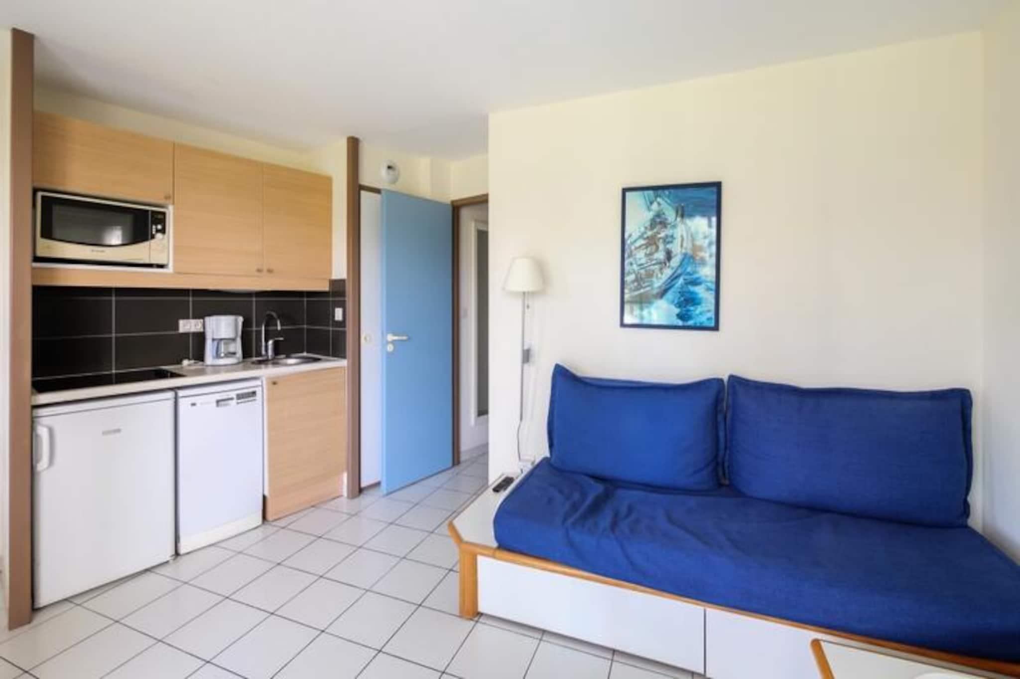 Dieses einladende Apartment befindet sich auf einem 90 Hektar großen Anwesen, umgeben von einem Pinienwald. Es verfügt über ein Wohnzimmer mit 3 Einzelschlafsofas, einen Essbereich und ein Schlafzimmer mit einem Doppelbett. Das Badezimmer ist mit einer Badewanne ausgestattet und es gibt ein separates WC. Das Apartment ist haustierfreundlich (gegen Aufpreis) und bietet auf Anfrage ein Babyset. Bettwäsche und Handtücher sind gegen eine zusätzliche Gebühr erhältlich. Die Endreinigung ist obligatorisch und kann entweder selbst durchgeführt oder beim Check-in bezahlt werden. Die Unterkunft liegt nur 9 km von Les Sables-d'Olonne in der Region Vendée entfernt und bietet einfachen Zugang zum Meer. Der Talmondaise-Shuttle bringt Sie zum 2,5 km entfernten Strand von Veillon, wo eine Vielzahl von Aktivitäten auf Sie wartet. Die Residenz verfügt über 3 Swimmingpools, darunter beheizte Pools mit Rutschen und ein Planschbecken. Zu den Annehmlichkeiten vor Ort gehören eine Pizzeria, eine Bäckerei, eine Bar und eine Eisdiele. Gegen Aufpreis können Sie auch eine Reihe von Freizeitaktivitäten wie Golf, Tennis und Minigolf genießen. Im Inneren ist die offene Küche des Apartments komplett ausgestattet und das Wohnzimmer bietet einen gemütlichen Ort zum Entspannen. Zur Unterkunft gehören kostenfreie Parkplätze und der Pool der Residenz steht von Ende April bis September zur Verfügung. WLAN ist gegen Aufpreis verfügbar. Genießen Sie einen erholsamen Aufenthalt in dieser ruhigen Umgebung mit zahlreichen Möglichkeiten für Outdoor-Aktivitäten.
