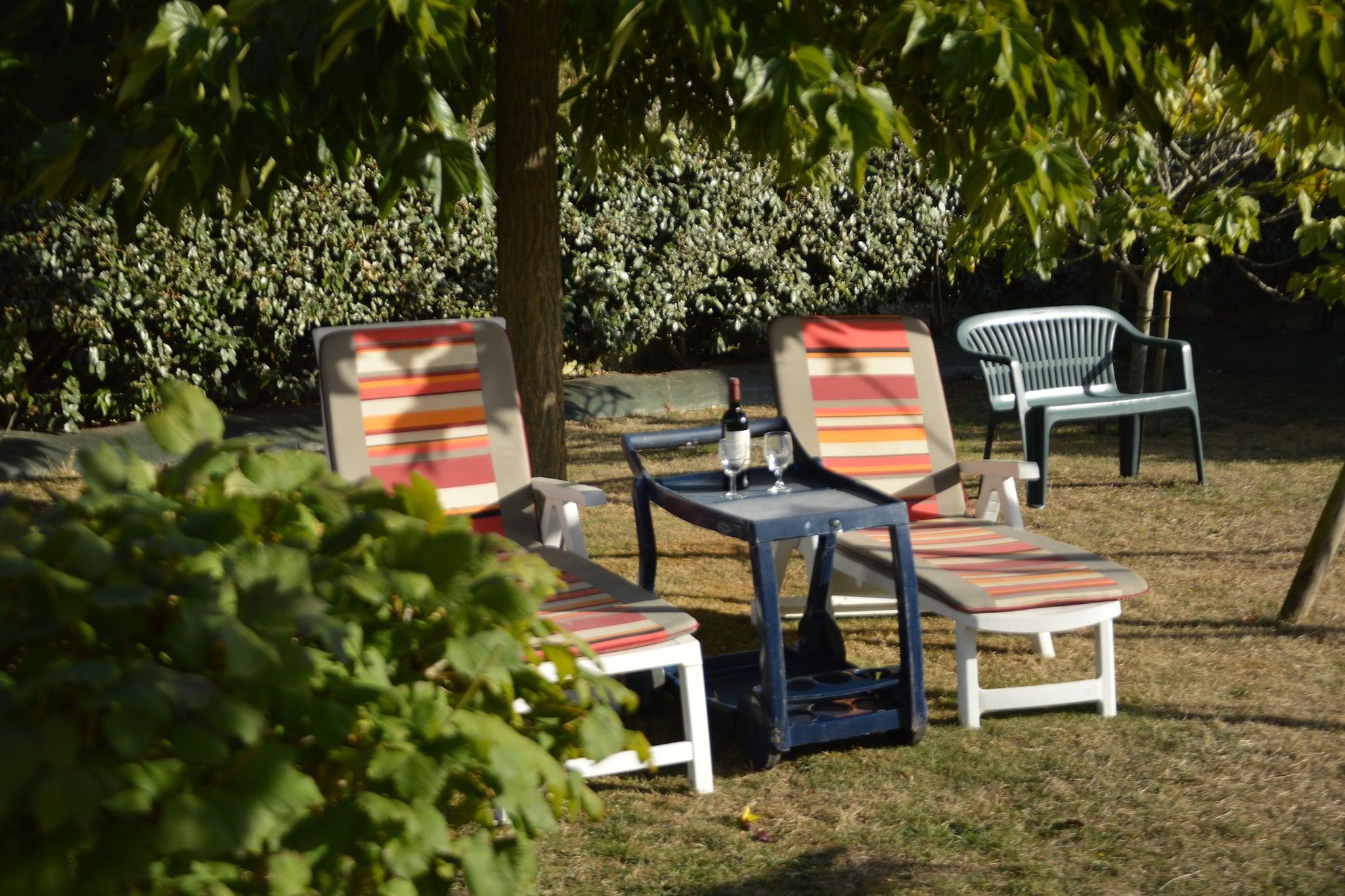 Dieses Ferienhaus befindet sich auf einem Landgut in Talmont-St. Hilaire. Es ist geeignet für einen erholsamen Urlaub einer Familie mit kleinen Kindern! Denn während Sie sich unter dem Sonnenschirm im Garten ausruhen, lernen die Kinder ganz leicht neue Freunde beim Tennisplatz, auf dem Spielplatz, im Freibad oder im (Wellen-)Hallenbad kennen. Das Haus ist umgeben von einem großen, umzäunten Garten mit Rasenfläche, in dem einige Bäume und eine Schaukel stehen. Auf der Terrasse können Sie ein gutes Buch lesen. Mit dem gemauerten Grill haben Sie die Möglichkeit, abends kleine Leckerbissen zuzubereiten! Die Inneneinrichtung des Ferienhauses ist sehr gepflegt. Auf dem etwas weiter gelegenen Campingplatz können Sie morgens zu Fuß frische Brötchen und abends eine warme Mahlzeit besorgen. Außerdem können Sie hier einkaufen, Fahrräder leihen und kostenlos Wifi benutzen. Sie sind 500 m vom Meer entfernt. Die meisten Tage werden Sie am Sandstrand bei Port-Bougenay (3 km) verbringen. Zur Abwechslung von dieser ganzen Schwimm- und Strandunterhaltung gibt es die alte Abtei von St. Jean-d'Orbestier. Vergessen Sie nicht, das Automobilmuseum und das Schloss von Talmont (4 km) zu besuchen! In Talmont finden Sie zudem einen großen Supermarkt und mehrere Restaurants.