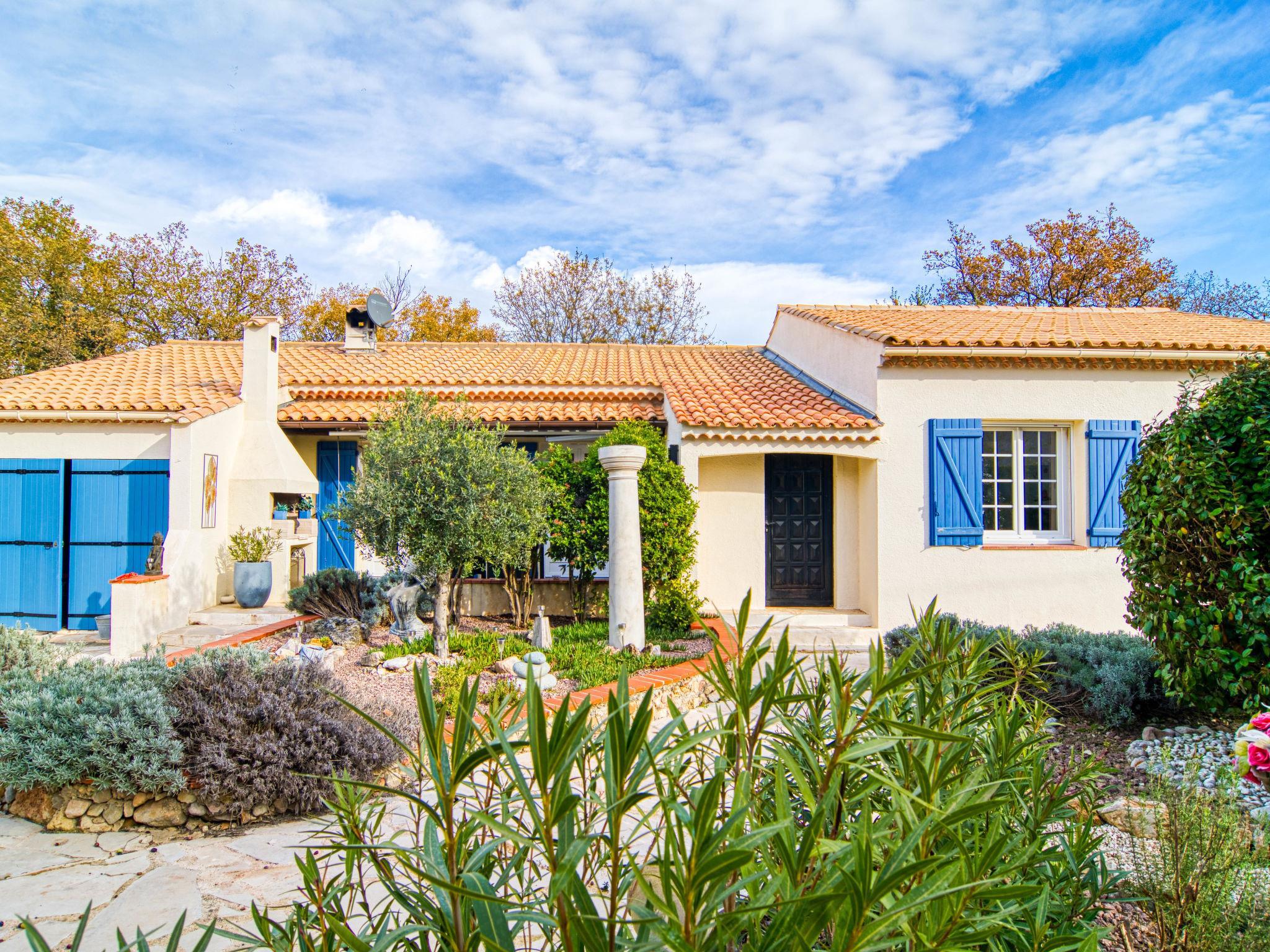 "Villa Esterel", 4-Zimmer-Villa 130 m2. Komfortabel und schön eingerichtet: Wohn-/Esszimmer mit offenem Kamin (nur Deko), Esstisch und TV (Flachbildschirm). Ausgang zur Terrasse. 1 Zimmer mit 1 franz. Bett (180 cm, Länge 200 cm), Ventilator. 2 Zimmer, jedes Zimmer mit 2 franz. Betten (140 cm, Länge 190 cm), Ventilator. Offene Küche (Backofen, Geschirrspüler, 4 Glaskeramikplatten, Toaster, Wasserkocher, Mikrowelle, elektrische Kaffeemaschine) mit Essecke. Sep. WC, Bad/Dusche/WC. E-Heizung. Grosse Terrasse überdacht. Terrassenmöbel, Elektrogrill, Liegestühle (4). Zur Verfügung: Waschmaschine, Wäschetrockner, Bügeleisen, Fliegengitter, Haartrockner. Internet (WLAN, gratis). Bitte beachten: Nichtraucher-Haus. Rauchmelder. Der ausgeschriebene Pool ist zur alleinigen Nutzung. Inserat einer Privatperson nach Artikel 155, IV, CGI.