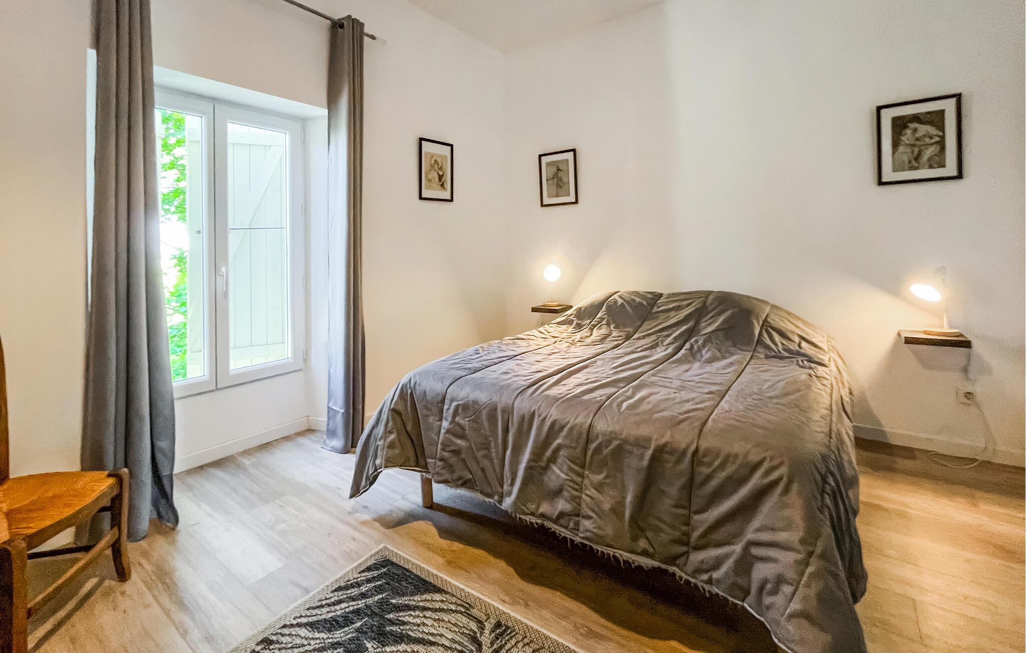 Erleben Sie einen erholsamen Urlaub in einem stilvollen Natursteinhaus mit viel Platz für die ganze Familie. Die ruhige Lage, das gepflegte Grundstück und die geschmackvolle Einrichtung schaffen beste Voraussetzungen für eine entspannte Auszeit in Südfrankreich. Lassen Sie sich von der weiten, offenen Gestaltung des Innenbereichs begeistern. Entspannen Sie im hellen Wohnraum mit Natursteinwänden, bequemen Sofas und stilvoller Dekoration. Versammeln Sie sich mit der Familie oder Freunden am langen Esstisch oder machen Sie es sich mit einem Buch in der Sitzecke gemütlich. Bereiten Sie Ihre Mahlzeiten in der modern ausgestatteten Küche zu.