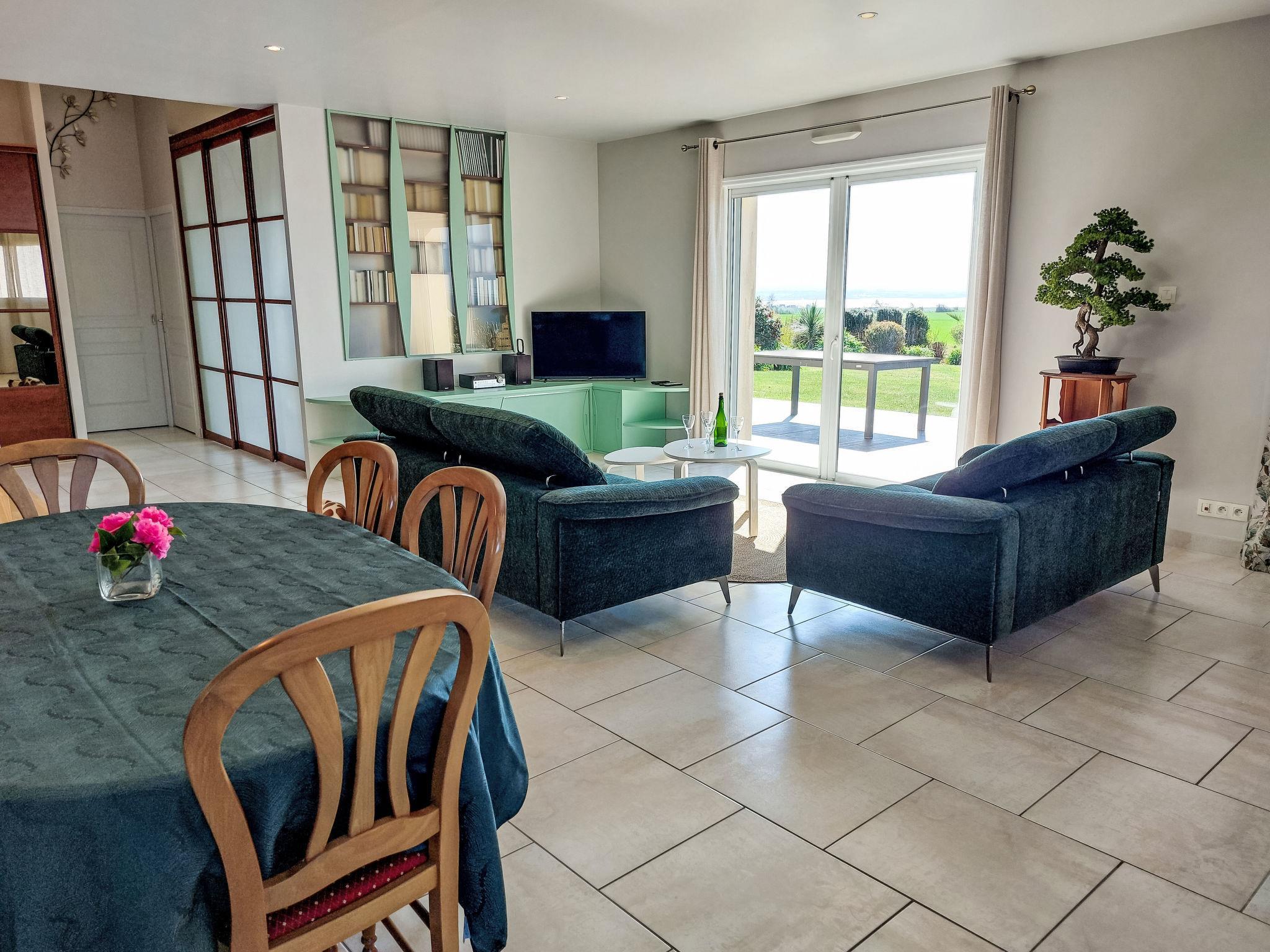 "Cassiopée", 4-Zimmer-Haus 135 m2 auf 2 Stockwerken. Komfortabel und schön eingerichtet: Wohn-/Esszimmer mit Esstisch, Sat-TV, Internationale TV-Sender, Stereoanlage, DVD und elektrischem Rollladen. Ausgang zur Terrasse. 1 Zimmer mit 1 franz. Bett (140 cm, Länge 190 cm), elektrischem Rollladen. Ausgang zur Terrasse. Kleines Büro mit elektrischem Rollladen. Ausgang zur Terrasse. Offene Küche (Backofen, Geschirrspüler, 3 Induktionskochplatten, Toaster, Wasserkocher, Mikrowelle, Tiefkühler, elektrische Kaffeemaschine) mit elektrischem Rollladen. Ausgang zur Terrasse. Bad/Dusche, sep. WC. Heizung. Obergeschoss: 1 Zimmer mit 1 franz. Bett (160 cm, Länge 200 cm), elektrischem Rollladen. 1 Zimmer mit 2 Betten (90 cm, Länge 190 cm), elektrischem Rollladen. Dusche, sep. WC. Heizung. Terrasse 70 m2, Südwestlage. Terrassenmöbel, Gartengrill (mobil). Sicht auf das Meer und Baie de Douarnenez. Zur Verfügung: Waschmaschine, Wäschetrockner, Bügeleisen, Kinderhochstuhl, Babybett. Internet (WLAN, gratis). Bitte beachten: Nichtraucher-Haus. Maximal 1 Haustier/Hund erlaubt. Rauchmelder. Bei Belegung mit weniger Personen als der maximalen Personenzahl stehen nicht alle Schlafzimmer zur Verfügung.