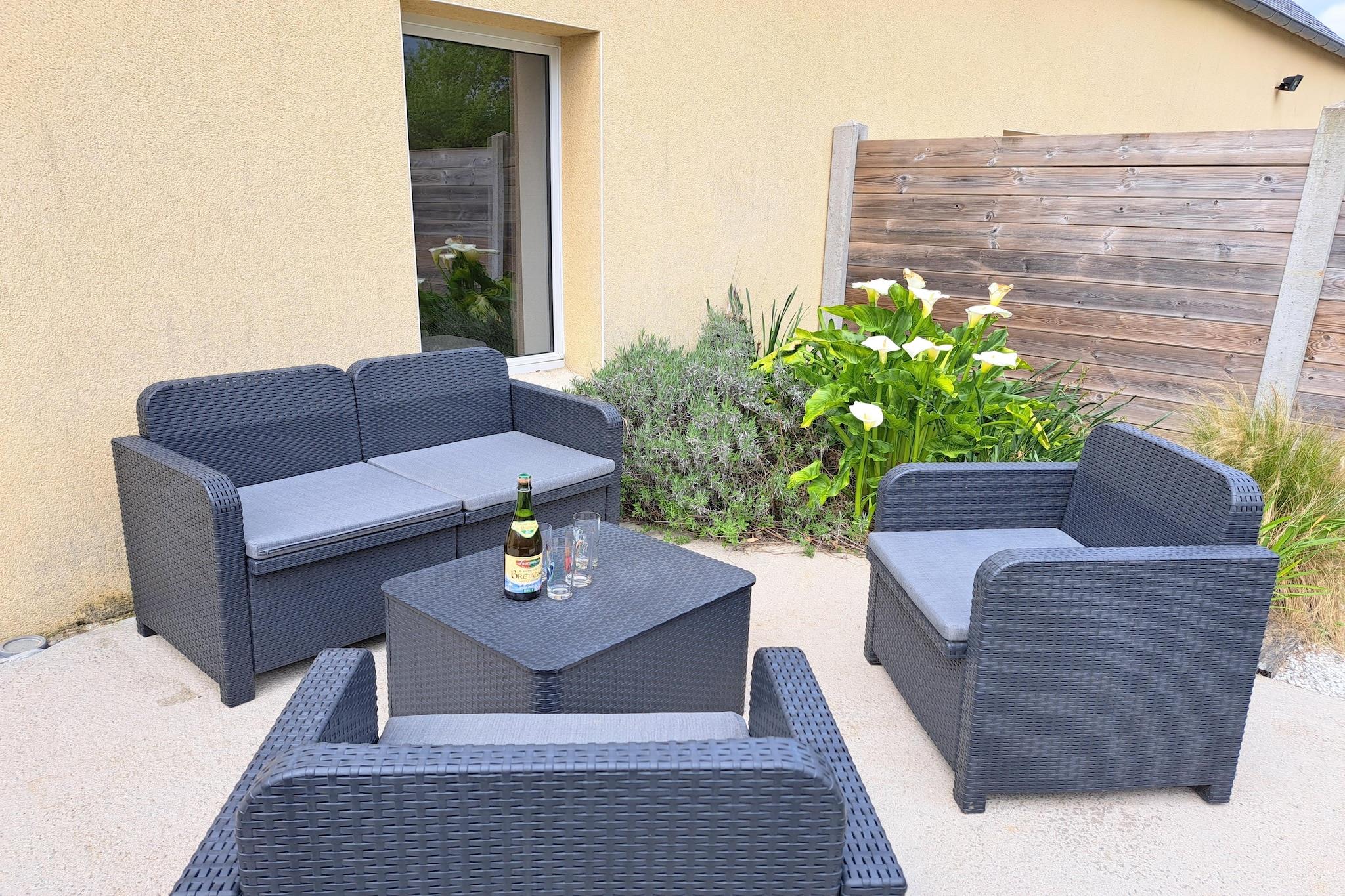 Versteckt in einer ruhigen Ecke der Bretagne liegt dieses charmante Doppelhaus auf einem ruhigen, 9.000 m² großen Grundstück, das sich nur vier Häuser teilen. Jedes Haus verfügt über einen eigenen, umzäunten Garten und eine gemütliche Terrasse, die Ihnen Privatsphäre, Platz und einen Ort bietet, um bei Ihrem Morgenkaffee oder einem Glas Wein am Abend die Meeresbrise zu genießen. Das Haus ist modern, hell und liebevoll eingerichtet und bietet Komfort und Gemütlichkeit. Nach erlebnisreichen Tagen können Sie es sich am knisternden Kamin gemütlich machen und sich wie zu Hause fühlen. Ob Sie in der voll ausgestatteten Küche lokale Meeresfrüchte zubereiten oder im Garten ein gutes Buch lesen – das Haus bietet den perfekten Rahmen für einen erholsamen Urlaub. Nur 3 Gehminuten entfernt lockt der weitläufige Sandstrand von Telgruc-sur-Mer. Der Strand ist ideal für Familien und bietet sanfte Wellen, eine Strandbar für Snacks und sogar eine Segelschule für Abenteuerlustige. Wandern Sie auf dem malerischen Küstenwanderweg GR34 oder entspannen Sie am Wasser – hier scheint die Zeit stillzustehen. Entdecken Sie den historischen Charme von Douarnenez, einem ehemaligen Sardinenhafen, der für seine Fischrestaurants und Hafencafés bekannt ist. Besuchen Sie Locronan, eines der malerischsten mittelalterlichen Dörfer Frankreichs, das aufgrund seiner zeitlosen Schönheit oft als Filmkulisse diente. Erkunden Sie die Naturwunder der Halbinsel Crozon mit ihren dramatischen Klippen, versteckten Buchten und Küstenwegen, die zu unvergesslichen Wanderungen einladen. Ob Sie Natur, Kultur oder pure Entspannung suchen – dieses Ferienhaus bietet die perfekte Mischung aus Komfort und bretonischem Charme.