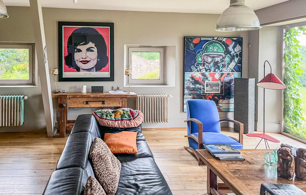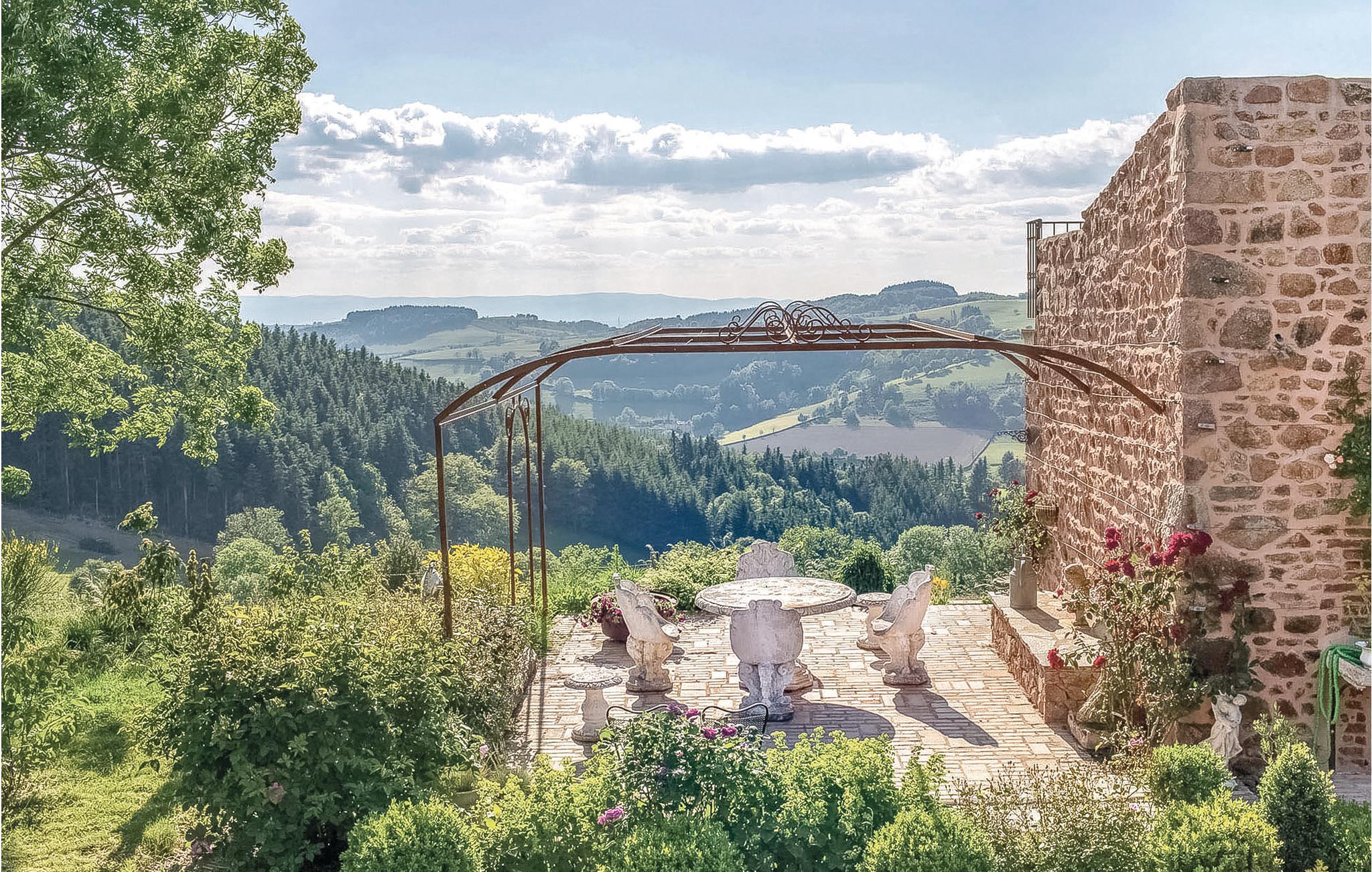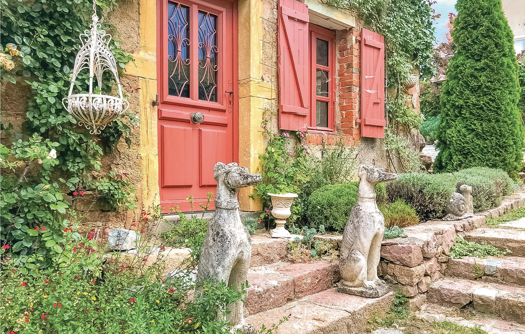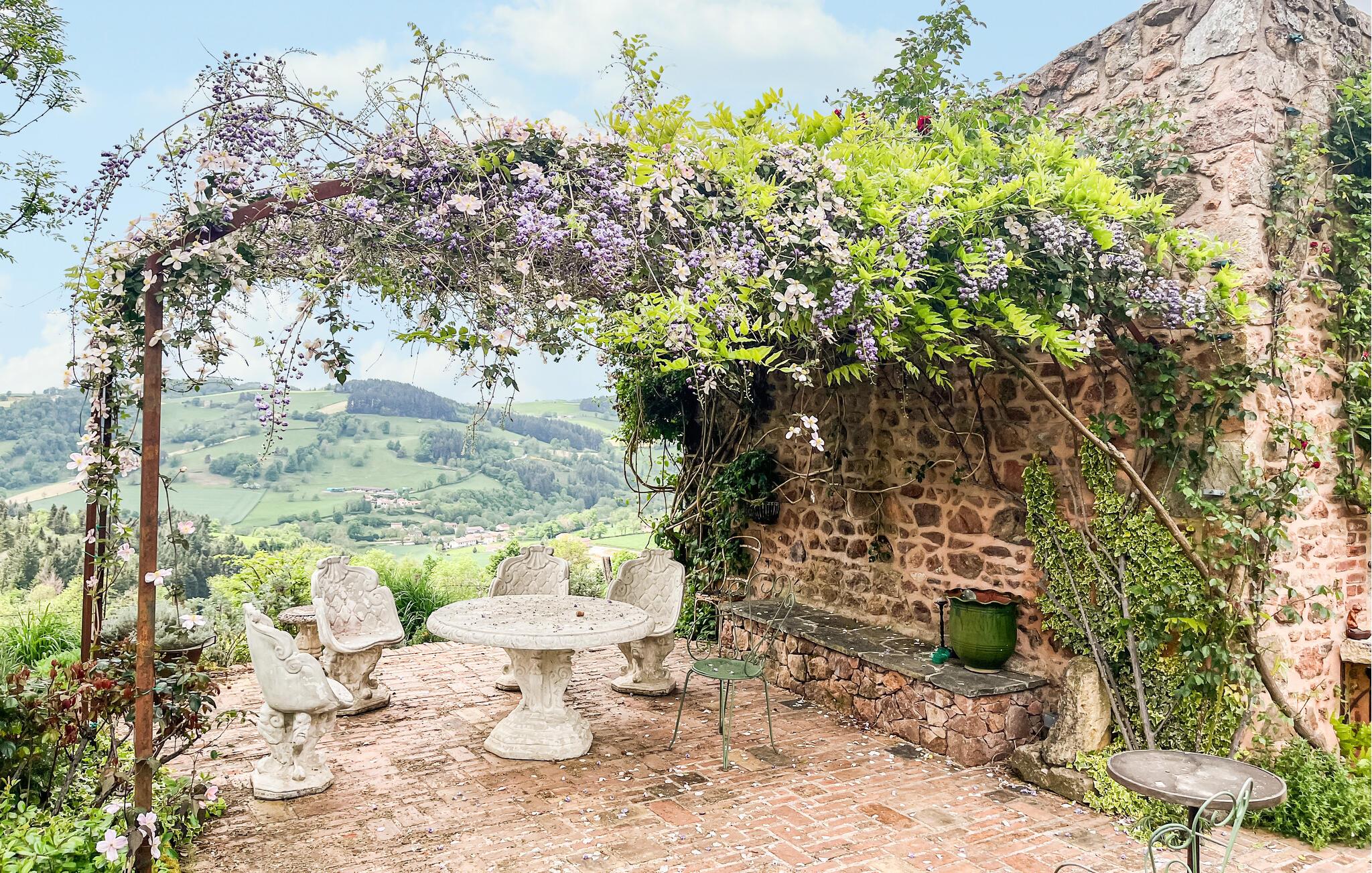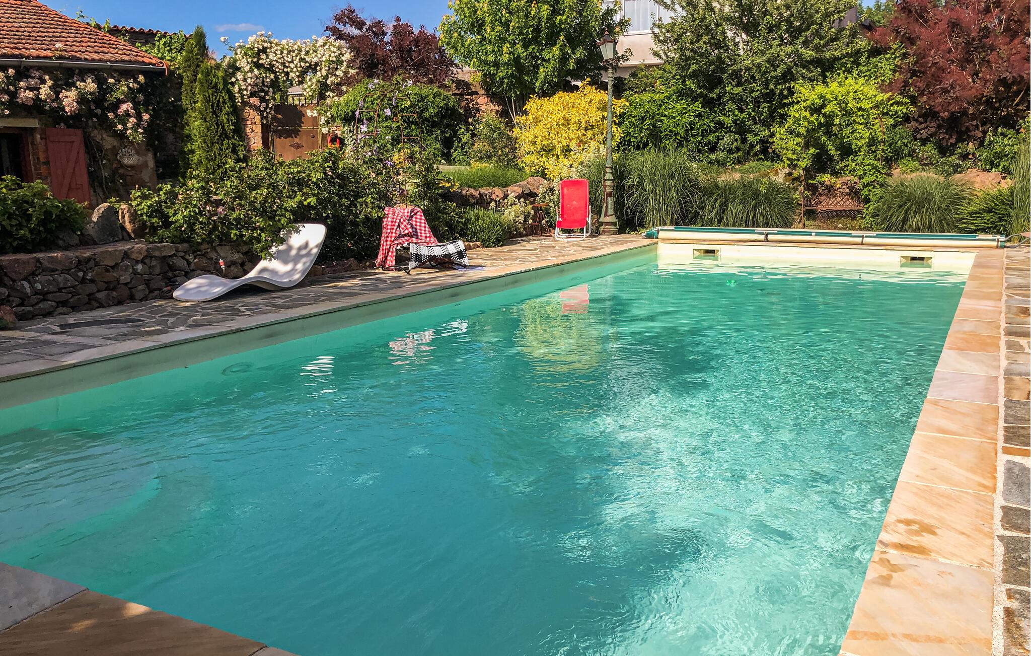 Dieses geräumige Ferienhaus mit viel Charme liegt in der grünen und sehr reizenden Region der Monts du Beaujolais. Durch seine Lage inmitten der Natur ist das ganz aus Stein gebaute Haus ein kleines Stück vom Paradies. Es öffnet sich zu einem idyllischen, 2.000 m² großen Garten mit Rasen hin und verfügt über einen großen Privatpool und drei Terrassen. Von der sonnenverwöhnten Dachterrasse auf einem kleinen Nebengebäude aus bietet sich den Gästen ein atemberaubender Panoramablick. Durch große Glasfronten und eine bezaubernde Dekoration ist im Inneren des Hauses für eine angenehme Atmosphäre gesorgt. Neben der Zimmerdekoration, einer geschickten Mischung aus modernen, barocken und rustikalen Gegenständen, tragen selbstverständlich auch komfortable und hochwertige Möbel zu Ihrem Wohlbefinden bei. Über den von den Eigentümern bereitgestellten Bluetooth-Lautsprecher können Sie Ihre eigene Musik abspielen.