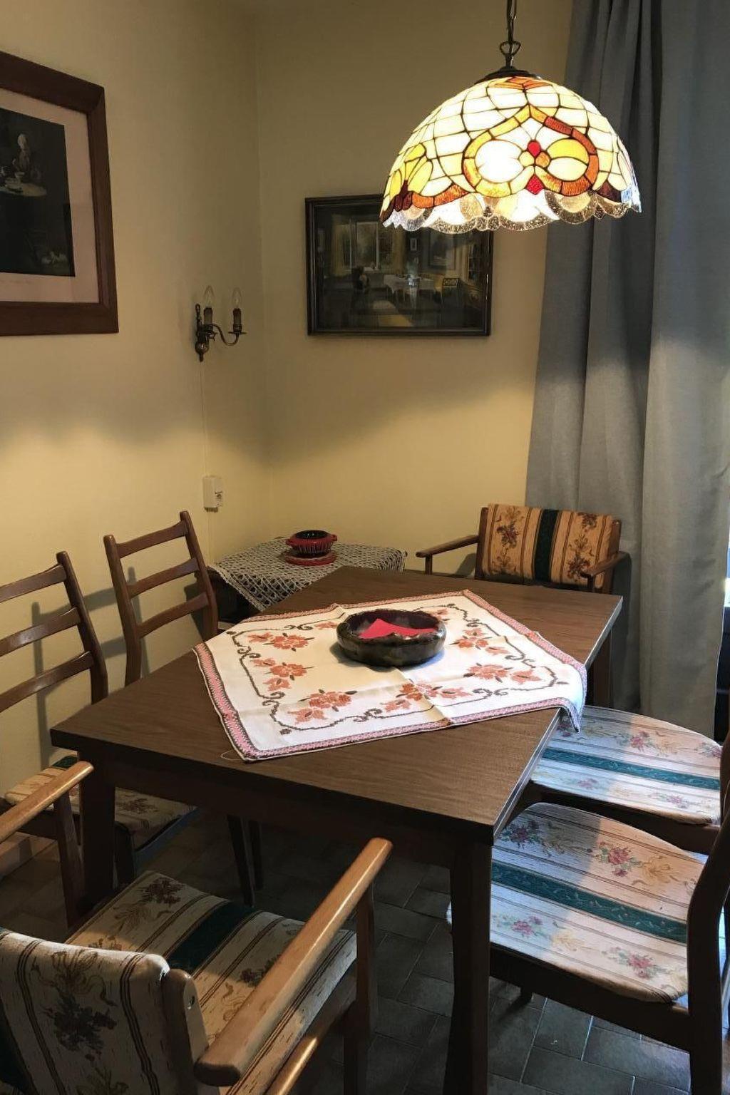 Die Wohnung erstreckt sich über zwei Etagen und bietet im ersten Obergeschoss ein großzügiges, durchgehendes Wohnzimmer mit einem gemütlichen Sofa, Couchtisch, drei Sesseln und einem Kamin. Die Eßecke mit einem Esstisch für sechs Personen, eine voll ausgestattete Küchenzeile mit Elektroherd, Kühlschrank und Spülmaschine sowie ein Balkon mit Blick auf den See und einer zur Südseite runden das Angebot ab. Im zweiten Obergeschoss befinden sich zwei Schlafzimmer, eine separate Toilette und ein Bad mit Waschmaschine. Im Erdgeschoss wartet ein weiteres Schlafzimmer mit französischem Bett, Dusche und Toilette auf seine Bewohner.