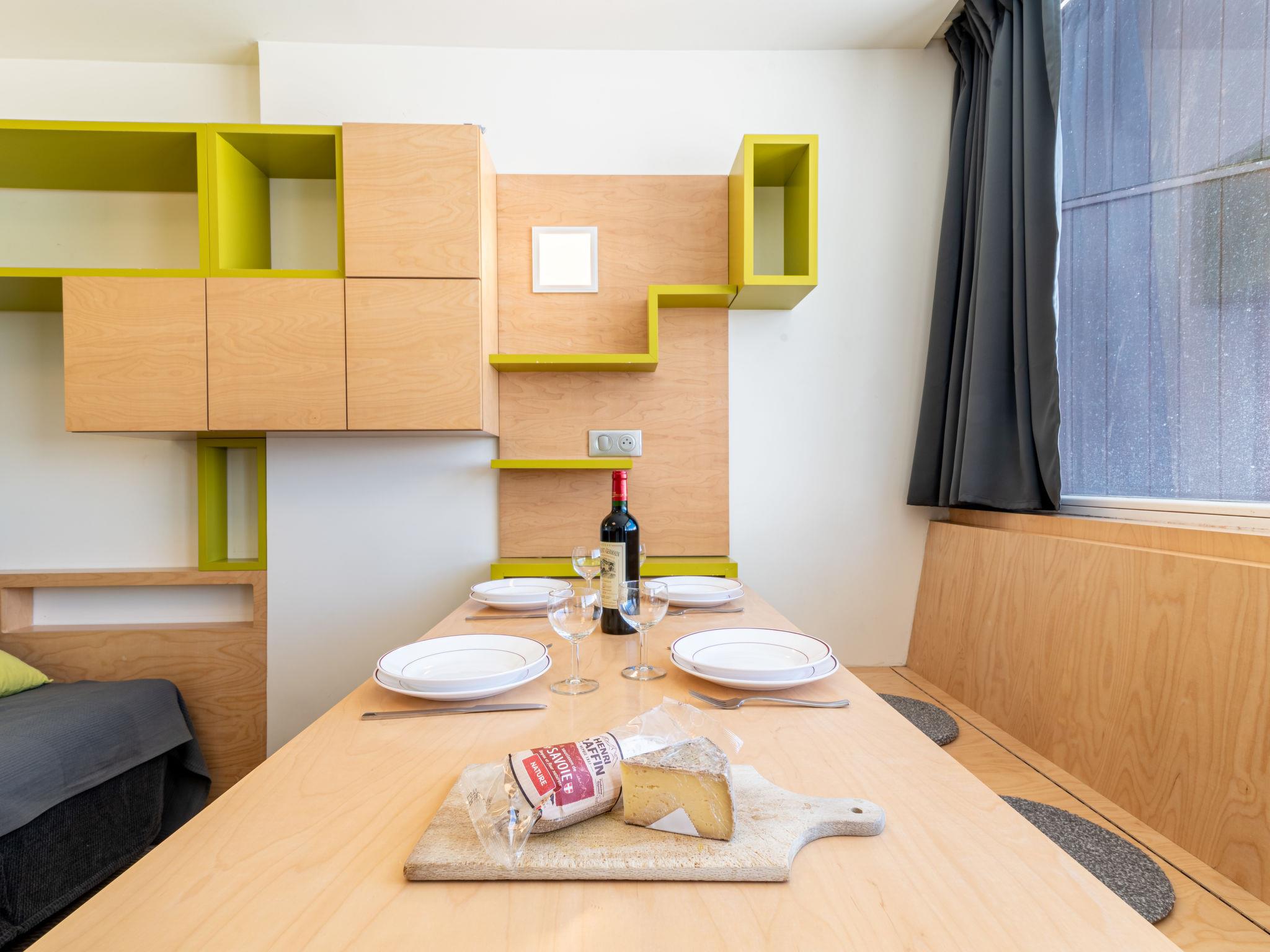 1-Zimmer-Studio 25 m2 im 4. Stock, Nordostlage. Renoviert, modern eingerichtet: Wohn-/Esszimmer mit 1 Diwanbett (140 cm, Länge 190 cm), TV (Flachbildschirm), E-Heizung. Ausgang zum Balkon. Eingang mit 1 x 2 Etagenbetten (80 cm, Länge 190 cm). Offene Küche (Backofen, Geschirrspüler, 3 Induktionskochplatten, Toaster, Wasserkocher, Mikrowelle, elektrische Kaffeemaschine). Dusche/WC. E-Heizung. Balkon 8 m2, Nordostlage. Sehr schöne Panoramasicht auf den See, die Berge und das Tal. Bitte beachten: Nichtraucher-Unterkunft. Rauchmelder. Inserat einer Privatperson nach Artikel 155, IV, CGI.