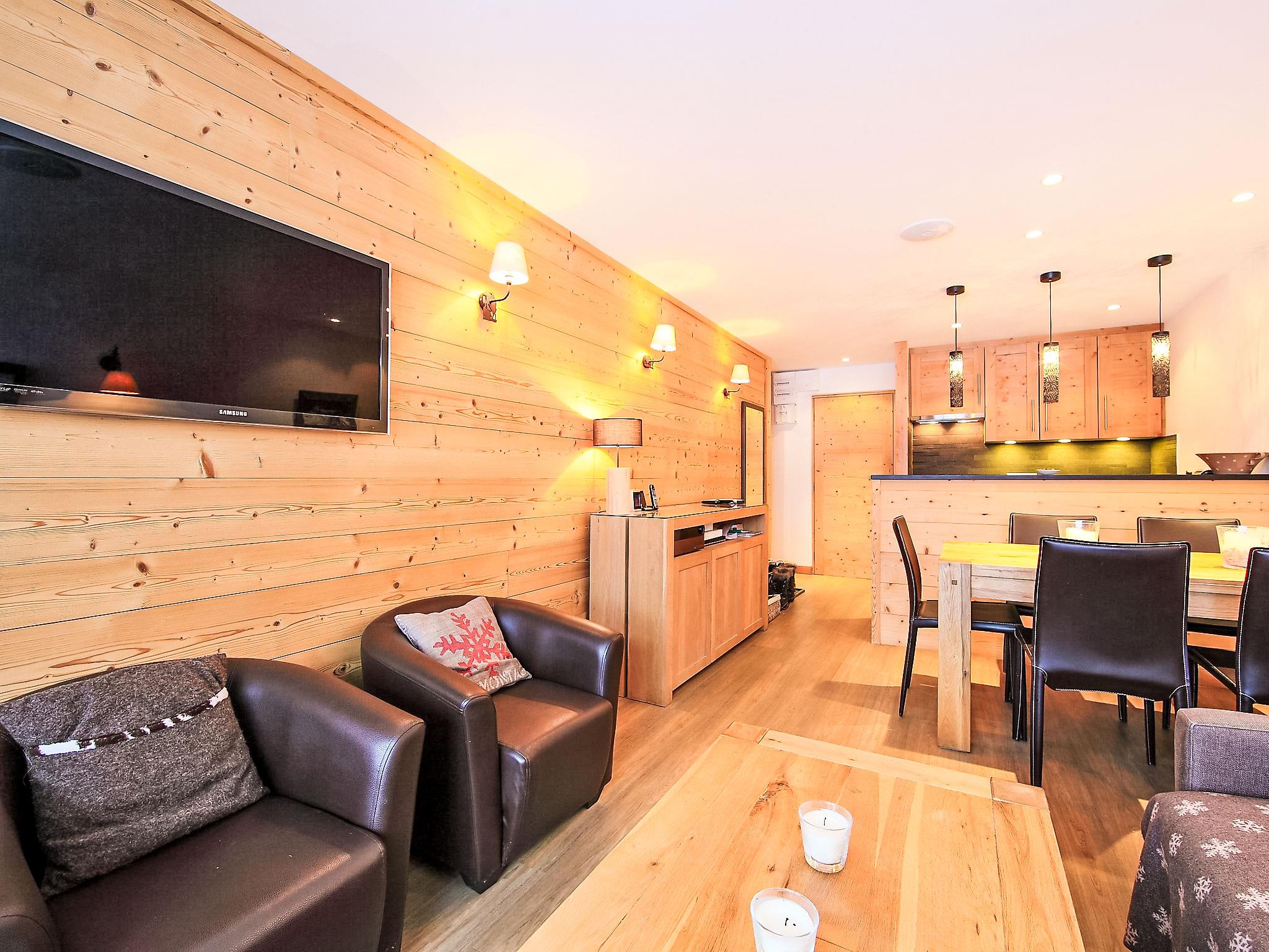 2-Zimmer-Wohnung 44 m2 im 1. Stock. Vollständig renoviert, sehr komfortabel und schön eingerichtet: Wohn-/Esszimmer mit 1 Doppeldiwanbett (160 cm), TV (Flachbildschirm), CD. Ausgang zum Balkon. 1 Zimmer mit 1 franz. Bett (160 cm), TV (Flachbildschirm). Ausgang zum Balkon. Kabine mit Schiebetür mit 1 x 2 Etagenbetten (70 cm). Offene Küche (Backofen, Geschirrspüler, 4 Glaskeramikplatten, Mikrowelle, Grill, elektrische Kaffeemaschine, Racletteofen, Fondue Set (Käse)). Bad, sep. WC. Parkettboden. 2 Balkone, Südlage. Balkonmöbel. Sehr schöne Sicht auf die Berge und die Skipiste. Zur Verfügung: Bügeleisen, Kinderhochstuhl, Babybett, Haartrockner. Internet (WLAN, gratis). Bitte beachten: geeignet für Familien. Nichtraucher-Unterkunft. Rauchmelder. 2 x 50" Ultra-High-Definition-LED-Fernseher 2 SONOS-Musiksystem-Ipads mit Spotify-Abonnements. Anstelle eines abgeschlossenen Schlafzimmers befinden sich manche Schlafplätze in einem offenen Bereich (Galerie, Nische etc.).