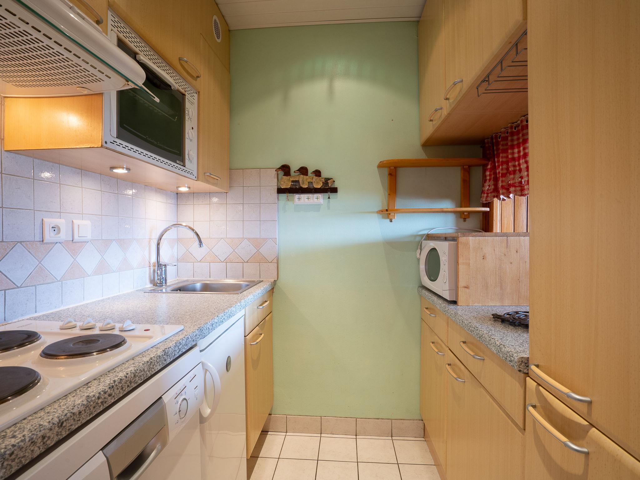 2-Zimmer-Wohnung 40 m2 im 4. Stock. Objekt geeignet für 2 Erwachsene + 2 Kinder. Renoviert, zweckmässig und schön eingerichtet: Wohn-/Esszimmer mit 1 Ausziehbett (2 Pers. 2 x 80 cm), TV (Flachbildschirm). Ausgang zum Balkon, Richtung Süden. 1 Zimmer mit 2 Betten (80 cm), TV (Flachbildschirm). Ausgang zum Balkon, Richtung Süden. Eingang mit 1 x 2 Etagenbetten (80 cm). Kochnische (4 Kochplatten, Mini-Backofen, Geschirrspüler, Mikrowelle). Bad, sep. WC. 2 Balkone, Südlage. Sehr schöne Panoramasicht auf die Berge und die Skipiste. Zur Verfügung: Internet (Wireless LAN, extra). Parkplatz Nr. 66 (überdacht), im Winter in 50 m Höhe 180 cm. Bitte beachten: Nichtraucher-Unterkunft. Rauchmelder. Skischrank in der Residenz.