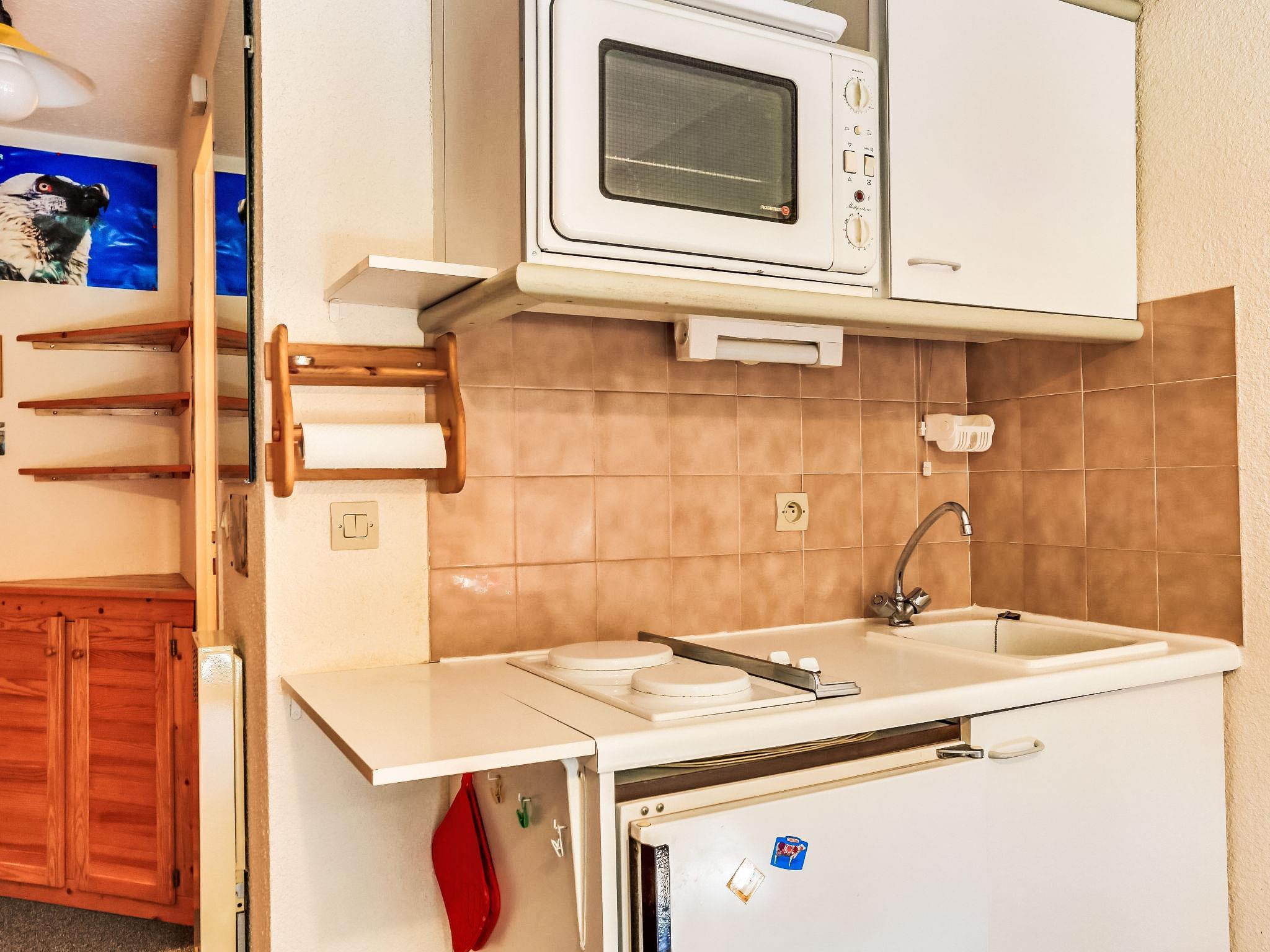 2-Zimmer-Wohnung 23 m2 im 2. Stock. Einfach und zweckmässig eingerichtet: Wohn-/Esszimmer mit 1 franz. Wandklappbett (1 x 120 cm), TV. 1 offenes kleines Zimmer mit 1 franz. Bett (1 x 140 cm). Eingang mit 1 Wandklappbett (80 cm). Kochnische (2 Kochplatten, Backofen, elektrische Kaffeemaschine). Bad/WC. E-Heizung. Balkon, Südwestlage. Zur Verfügung: Internet (Wireless LAN, extra). Parkplatz (überdacht), Höhe 180 cm. Bitte beachten: Nichtraucher-Unterkunft.
