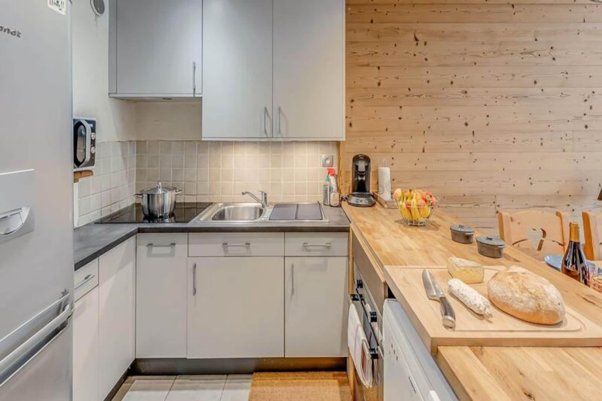 Im malerischen Ortsteil Almes von Tignes bietet dieses einladende Apartment die perfekte Kombination aus Komfort und Bequemlichkeit für Ihren alpinen Urlaub. Nur 100 Meter von den Sesselliften Chaudannes und Pâquis und nur 300 Meter vom lebhaften Ortszentrum von Tignes-le-Lac entfernt, befinden Sie sich mitten in einem der besten Skigebiete Frankreichs. Ob Wintersport oder sommerliche Bergabenteuer – diese Unterkunft ist der ideale Ausgangspunkt, um die atemberaubende Umgebung zu erkunden. Das Apartment im ersten Stock eines charmanten dreistöckigen Hauses bietet Platz für bis zu sechs Gäste. Zwei gemütliche Schlafzimmer, eines mit einem Doppelbett und das andere mit zwei Einzelbetten, die zusammengestellt werden können, sowie ein Schlafsofa im Wohnzimmer bieten ausreichend Platz für Familien oder Freundesgruppen. Die offene Küche mit Essbereich ist modern ausgestattet, unter anderem mit Kühlschrank, Cerankochfeld, Backofen, Mikrowelle und Geschirrspüler – so können Sie sich nach einem Tag auf der Piste ganz einfach eine Mahlzeit zubereiten. Das Wohnzimmer mit seinen bequemen Sitzgelegenheiten und dem Fernseher öffnet sich zu einem Balkon, auf dem Sie die frische Bergluft und die atemberaubende Aussicht genießen können. Die Unterkunft bietet außerdem Annehmlichkeiten wie einen Skiraum und Hotelservices wie Bettwäsche, Handtücher und Endreinigung. Zusätzliche Services wie WLAN und Parkplätze sind auf Anfrage verfügbar. Die französische Skischule, Geschäfte und Restaurants sind fußläufig erreichbar – alles, was Sie brauchen, ist in unmittelbarer Nähe. Ob Sie im Winter durch den Pulverschnee gleiten oder im Sommer auf malerischen Wanderwegen unterwegs sind, dieses Apartment bietet Ihnen einen warmen und einladenden Rückzugsort im Herzen der Alpen. Erleben Sie den Charme von Tignes und schaffen Sie unvergessliche Erinnerungen in dieser idyllischen Berglandschaft.