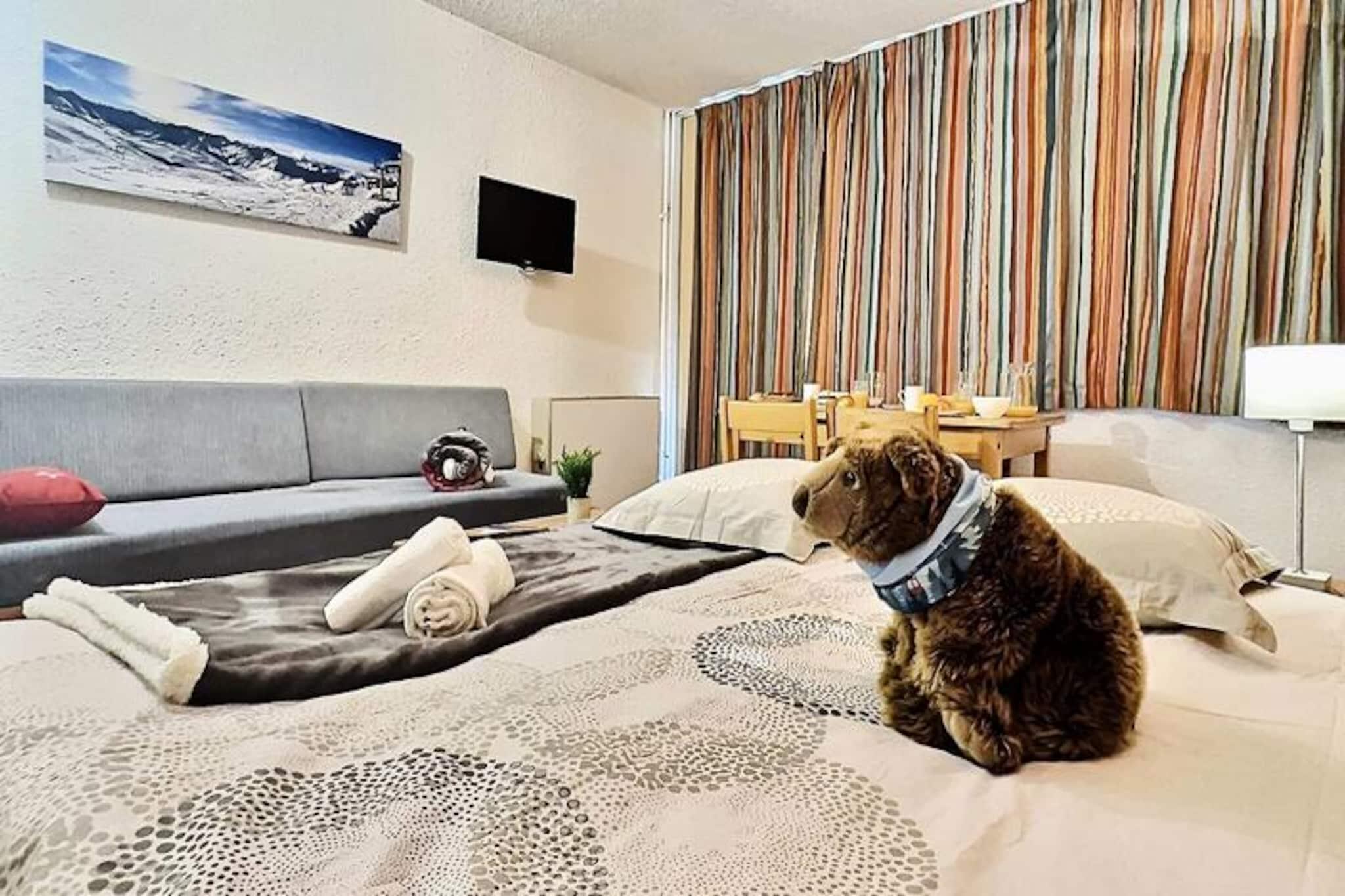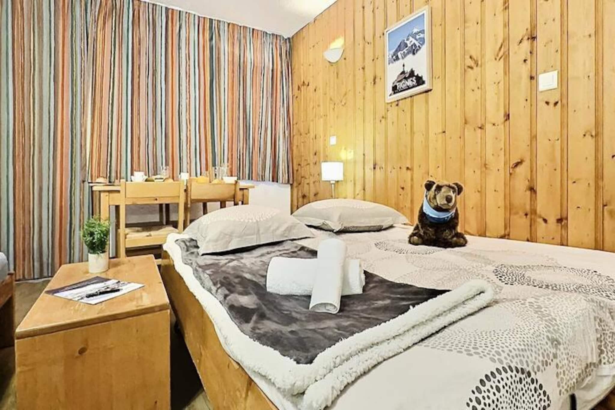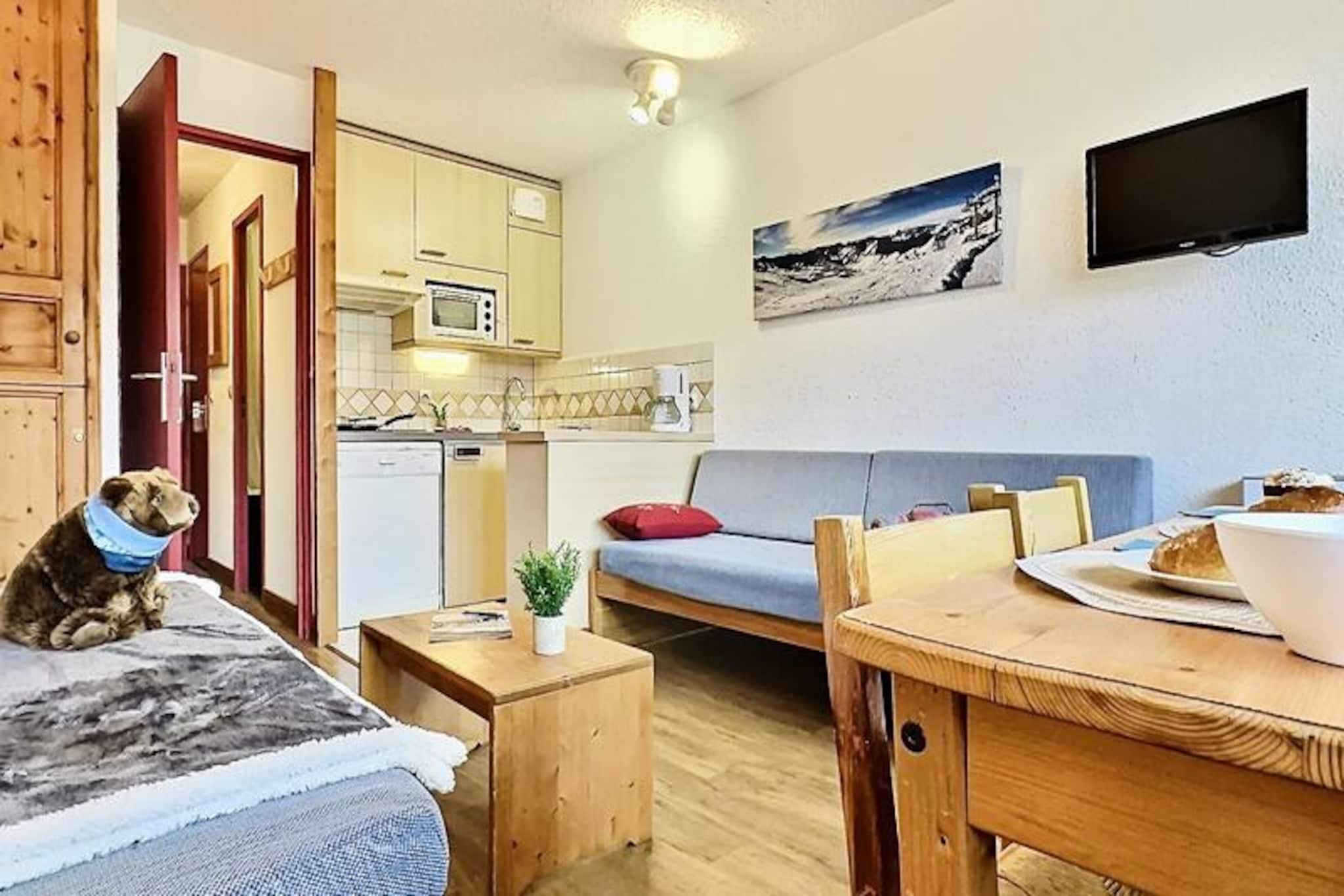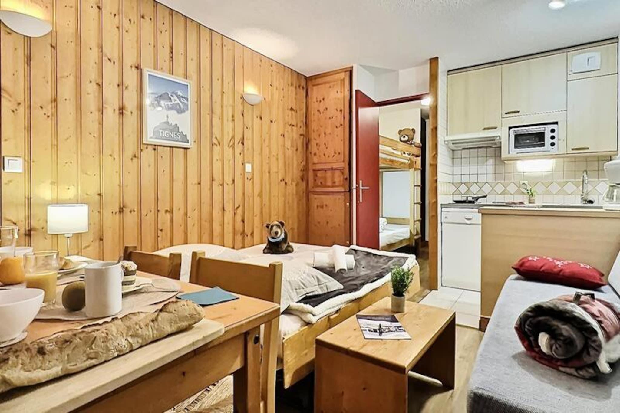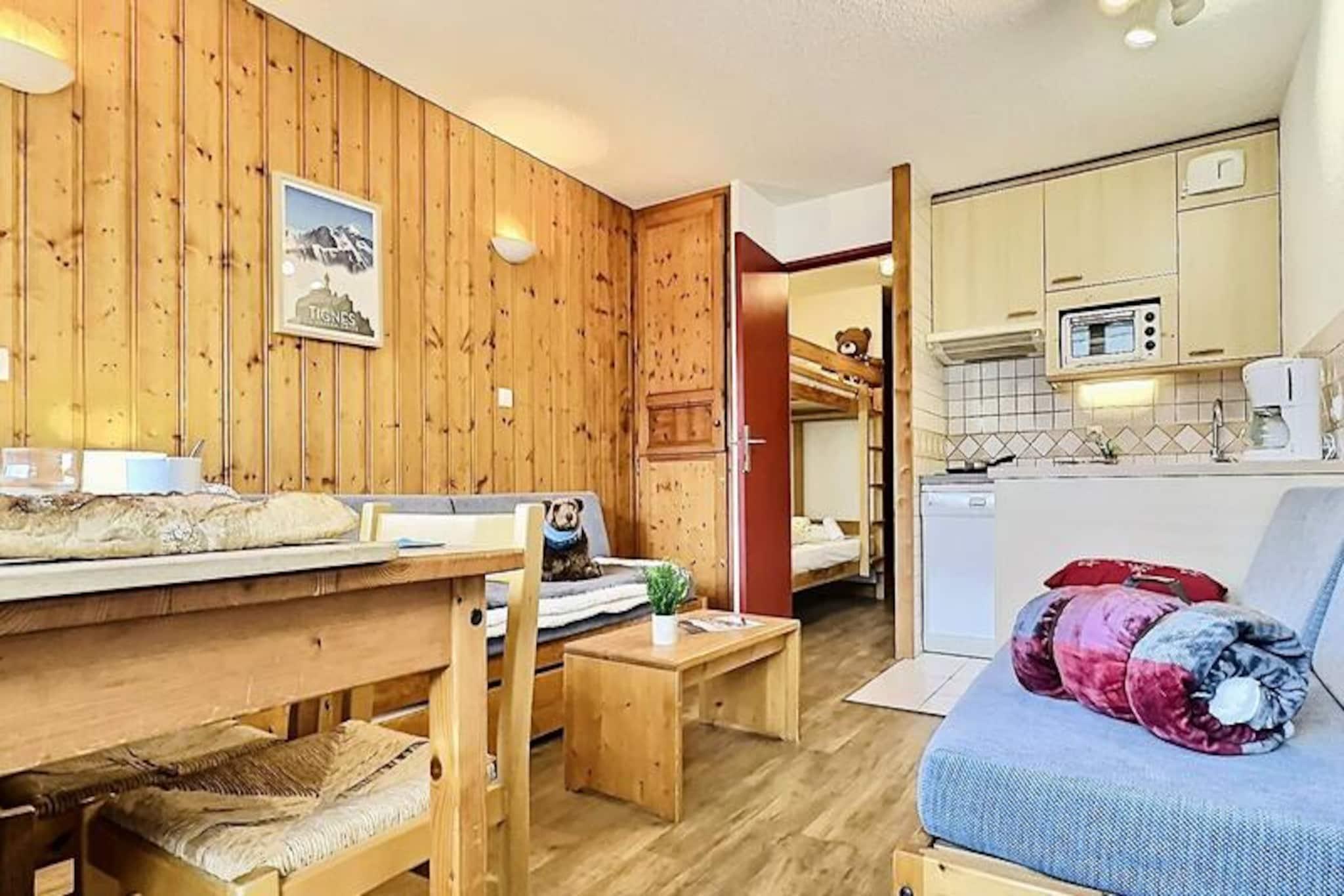 Hoch über dem lebhaften Viertel Lavachet in Tignes bietet dieses charmante Studio einen gemütlichen Rückzugsort mit atemberaubendem Bergblick vom Südbalkon. Ob Sie zum Skifahren im Winter oder für einen sommerlichen Aufenthalt in den Alpen anreisen – diese Unterkunft liegt nur 5 Gehminuten von den Pisten und Geschäften entfernt und garantiert so Komfort und Bequemlichkeit während Ihres gesamten Aufenthalts. Die lebendige Atmosphäre von Lavachet mit seinen belebten Straßen, gesäumt von Restaurants und Boutiquen, bildet die perfekte Kulisse für Ihren Urlaub. Das 24 m² große Studio ist durchdacht gestaltet und bietet Platz für bis zu vier Gäste. Der Wohnbereich verfügt über zwei komfortable Einzelbetten, während eine separate Schlafnische im Eingangsbereich mit einem Etagenbett ausgestattet ist – ideal für Familien oder kleine Gruppen. Die zum Wohnzimmer offene Küchenzeile ist komplett ausgestattet mit Induktionskochfeld, Backofen, Geschirrspüler und Kühlschrank, sodass Sie sich nach einem erlebnisreichen Tag ganz einfach Mahlzeiten zubereiten können. Ein modernes Badezimmer mit Badewanne und separatem WC sorgt für zusätzlichen Komfort während Ihres Aufenthalts. Annehmlichkeiten wie Fernseher, Skiraum und überdachter Parkplatz direkt am Haus garantieren einen reibungslosen Ablauf.\n\nAbseits der Unterkunft bietet Tignes eine Vielzahl an Aktivitäten für jede Jahreszeit. Im Winter ermöglichen die nahegelegenen Skilifte den Zugang zu erstklassigen Pisten, während der Sommer zum Wandern, Mountainbiken und für Wassersport auf dem idyllischen Lac de Tignes einlädt. Die umliegenden Gipfel und Wanderwege laden dazu ein, die atemberaubende Alpenkulisse zu genießen. Dank seiner erstklassigen Lage und der komfortablen Ausstattung ist dieses Studio Ihr Tor zu unvergesslichen Bergabenteuern.