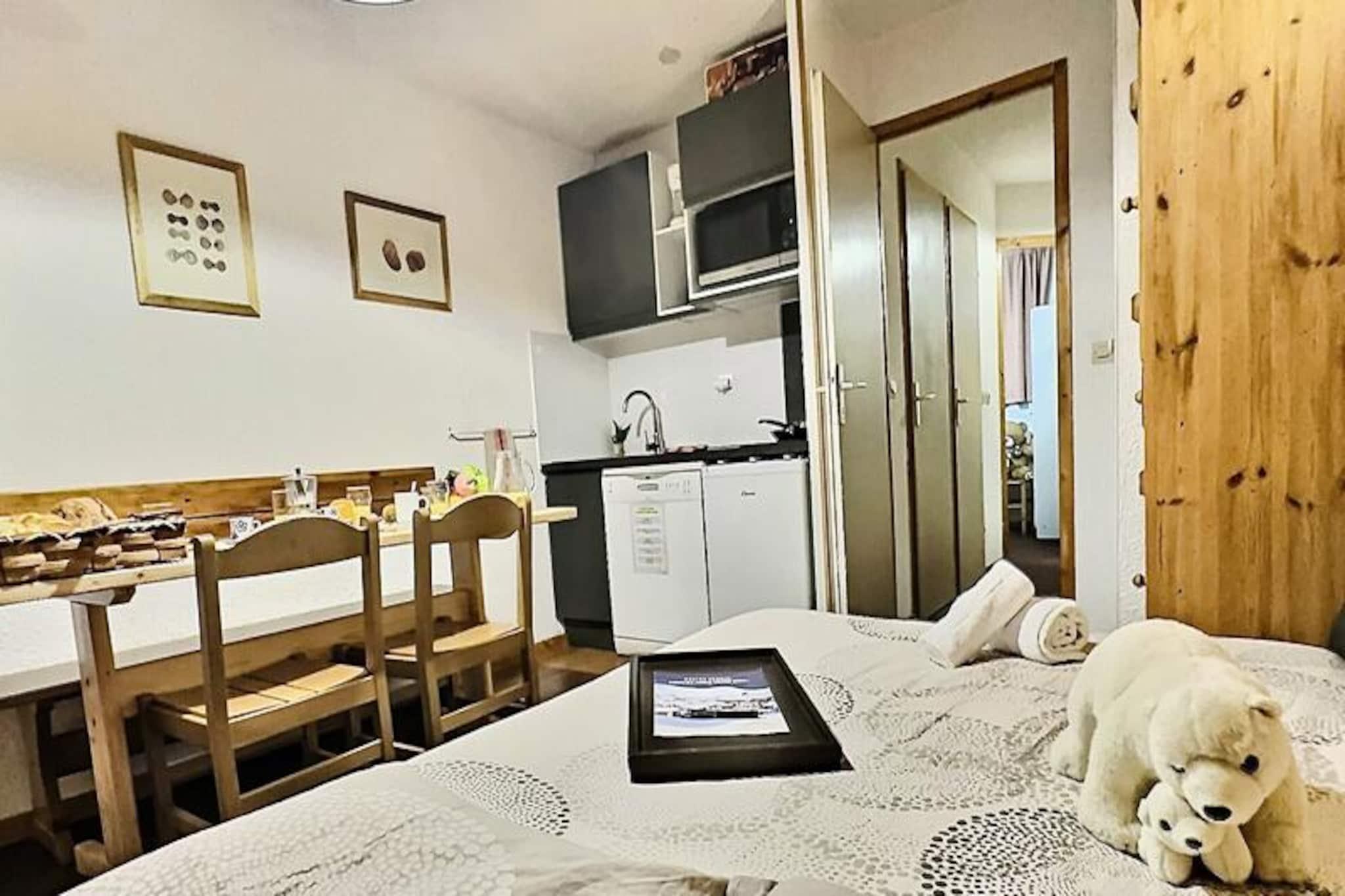 Genießen Sie den Charme des alpinen Lebens in diesem gemütlichen Apartment im Herzen von Tignes-le-Lac. Die Pisten liegen direkt vor der Tür, der idyllische See im Hintergrund – dieser Rückzugsort bietet eine harmonische Mischung aus Abenteuer und Ruhe. Stellen Sie sich vor, wie Sie morgens aufwachen und die Sonne die Berge in goldenes Licht taucht, auf Ihren Südbalkon treten und die frische Bergluft einatmen, während Sie Ihren Ski- oder Wandertag planen. Ob Sie den Nervenkitzel auf den Pisten oder die Ruhe der Wanderwege suchen – von hier aus sind Sie immer mittendrin. Das 30 m² große Apartment ist komfortabel und funktional gestaltet und bietet Platz für bis zu vier Gäste. Der Wohnbereich verfügt über ein bequemes Schlafsofa für zwei Personen, während eine gemütliche Schlafnische mit einem Etagenbett ausgestattet ist – ideal für Familien oder kleine Gruppen. Die offene Küchenzeile ist mit modernen Geräten wie Backofen, Mikrowelle, Geschirrspüler und Kühlschrank ausgestattet und ermöglicht Ihnen die einfache Zubereitung leckerer Mahlzeiten nach einem Tag voller alpiner Abenteuer. Ein Badezimmer mit Badewanne und separatem WC sorgt für zusätzlichen Komfort, und ein Skischrank gewährleistet, dass Ihre Ausrüstung stets für den nächsten Ausflug bereit ist. Die Wohnung befindet sich im zweiten Stock eines Hauses mit Aufzug und bietet Ihnen bequemen Zugang zu den Pisten und den nahegelegenen Geschäften, die nur 10 Gehminuten entfernt sind. Im Winter verwandelt sich die schneebedeckte Landschaft in ein Skiparadies, während der Sommer mit zahlreichen Wanderwegen und Outdoor-Aktivitäten lockt. Die lebendige Dorfatmosphäre, kombiniert mit der atemberaubenden Natur, schafft ein unvergessliches Urlaubserlebnis. Ob Sie nun aufregende Abfahrten, entspannte Spaziergänge am See oder einfach nur einen gemütlichen Rückzugsort in den Bergen suchen – dieses Apartment in Tignes-le-Lac ist Ihr Tor zum perfekten alpinen Urlaub.