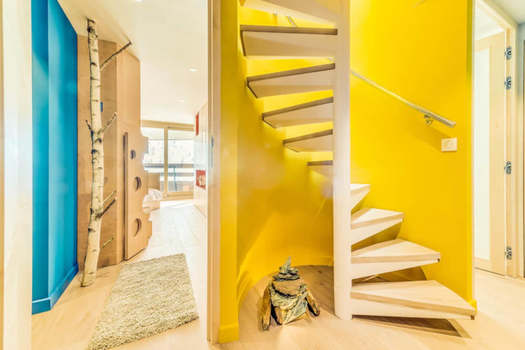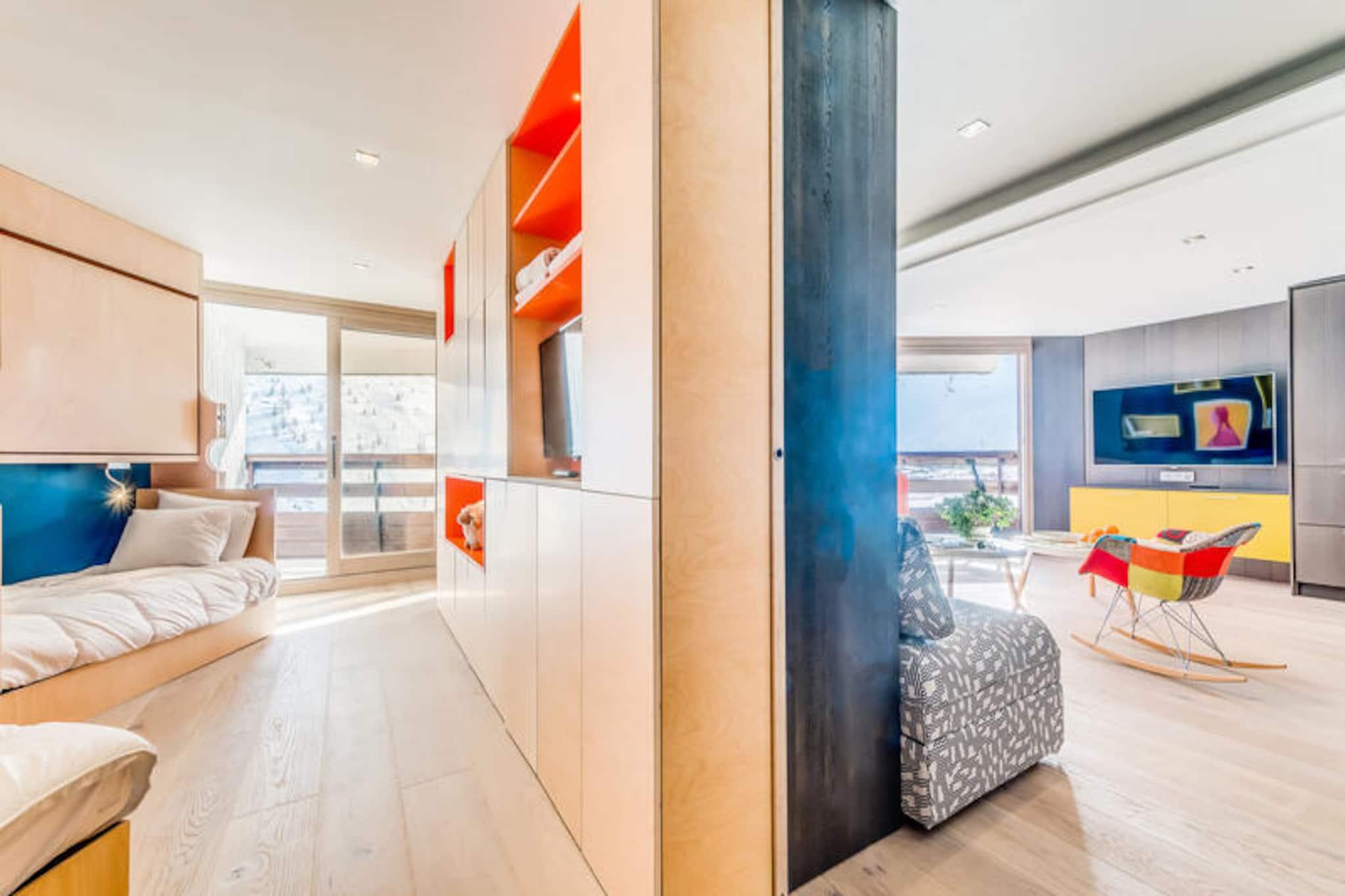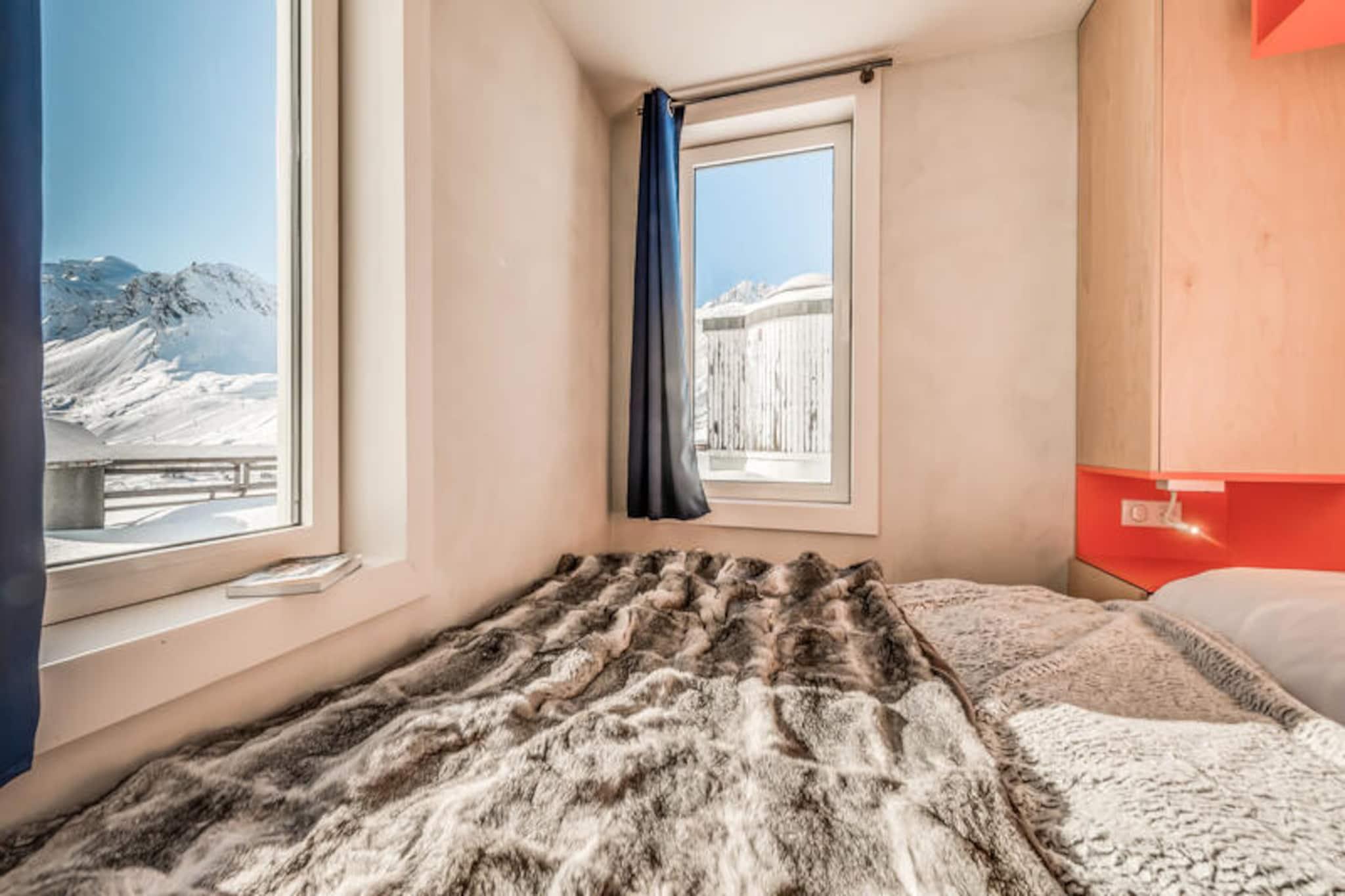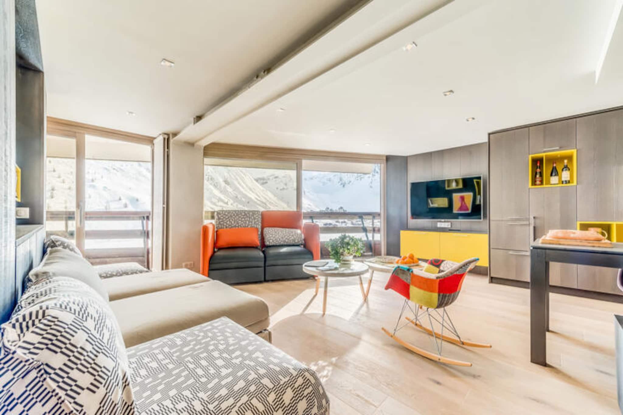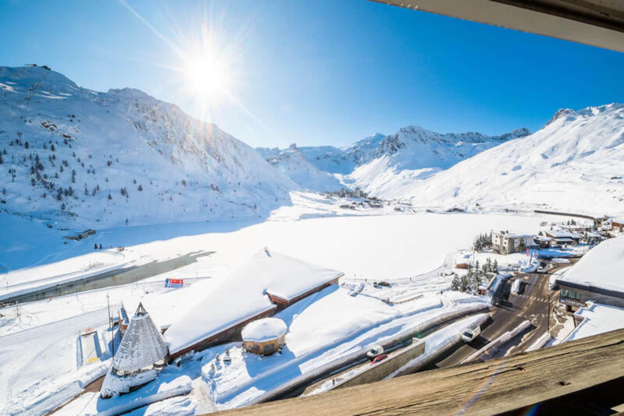 Hoch über dem lebhaften Bergdorf Tignes-le-Lac bietet dieses exklusive Maisonette-Apartment einen unvergleichlichen Rückzugsort in den Bergen. Im 11. Stock der legendären Residence LE PALAFOUR gelegen, vereint es atemberaubende Panoramablicke mit direktem Zugang zu den weltberühmten Pisten von Tignes und Val d’Isère. Stellen Sie sich vor, Sie wachen auf und erleben den Sonnenaufgang über den schneebedeckten Gipfeln, treten auf Ihre private Dachterrasse und spüren die frische Bergluft, während Sie Ihren Tag voller Abenteuer planen. \n\nDieses wunderschön renovierte, 80 m² große Apartment verbindet modernen Komfort harmonisch mit alpinem Charme. Der großzügige Wohnbereich mit warmen ockerfarbenen und roten Holzelementen lädt zum Entspannen auf dem bequemen Sofa und zum Fernsehen ein. Die voll ausgestattete offene Küche mit Geschirrspüler, Backofen und Cerankochfeld ermöglicht die mühelose Zubereitung von Mahlzeiten für bis zu acht Personen. Die Schlafräume sind durchdacht gestaltet und bieten ein vielseitiges Schlafzimmer mit Schiebetüren und Etagenbetten sowie ein gemütliches Doppelbett im Obergeschoss mit eigenem Bad und Zugang zum Solarium. Jedes Detail, von den begehbaren Duschen bis zum kostenlosen WLAN, wurde sorgfältig ausgewählt, um Ihnen einen luxuriösen Aufenthalt zu bieten.\n\nDie Residence LE PALAFOUR liegt auf 2.100 Metern Höhe und damit mitten im lebhaften Tignes-le-Lac. Nur wenige Schritte entfernt befinden sich der Wasserpark LE LAGON und der Sport- und Kulturkomplex TIGNESPACE mit Angeboten für alle Altersgruppen. Die Residence selbst verfügt über ein Einkaufszentrum mit Skischulen, Sportgeschäften, einem Supermarkt und einer Vielzahl an Restaurants. Ob Sie die unberührten Pisten hinunterwedeln, im Spa entspannen oder das pulsierende Après-Ski-Angebot erkunden möchten – hier finden Sie alles.\n\nMit seiner unschlagbaren Lage, erstklassigen Ausstattung und atemberaubenden Aussicht ist dieses Duplex-Apartment mehr als nur eine Unterkunft – es ist eine Einladung zu unvergesslichen alpinen Erlebnissen. Erleben Sie die Magie von Tignes im Komfort dieses außergewöhnlichen Bergrefugiums.