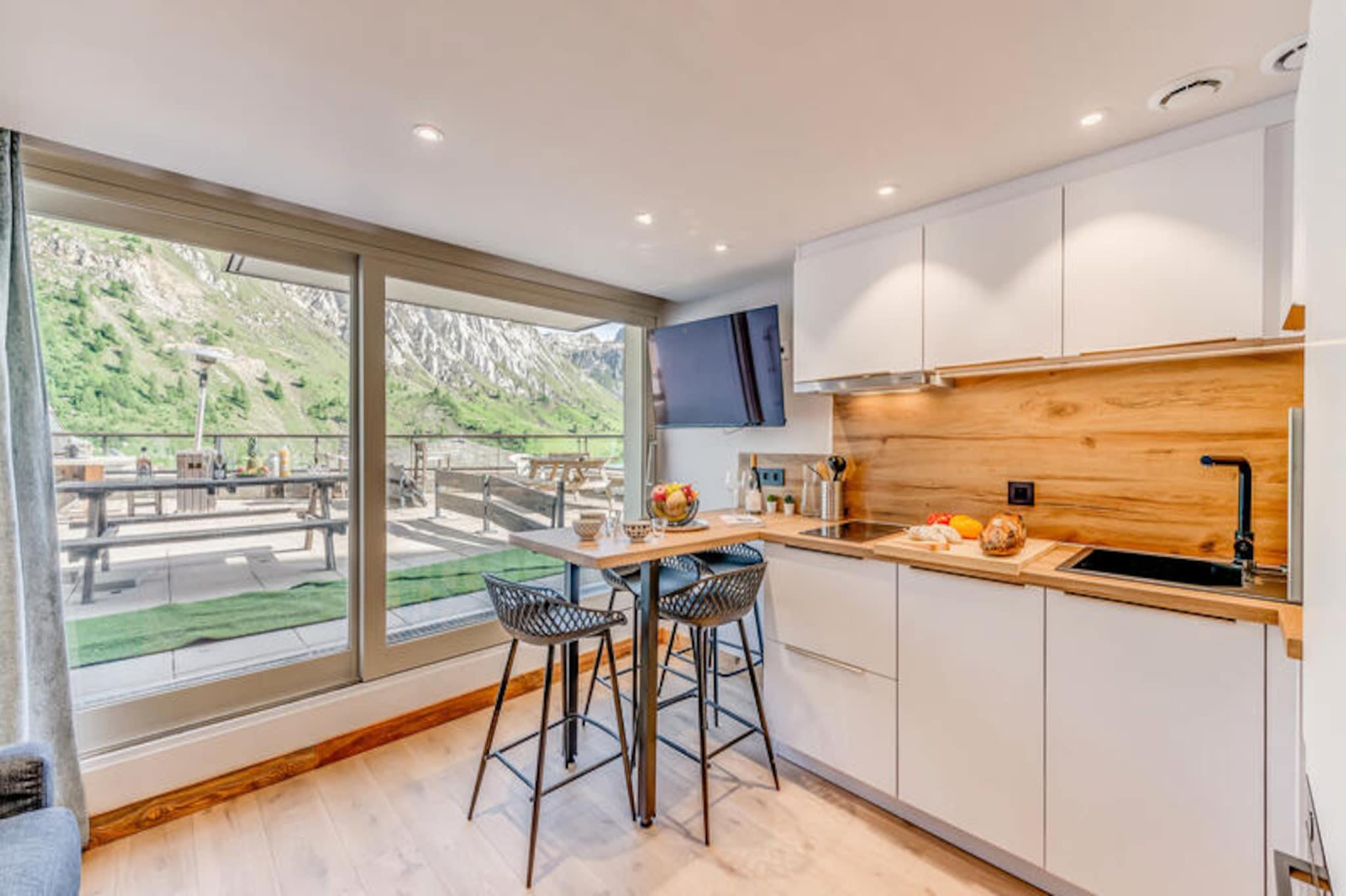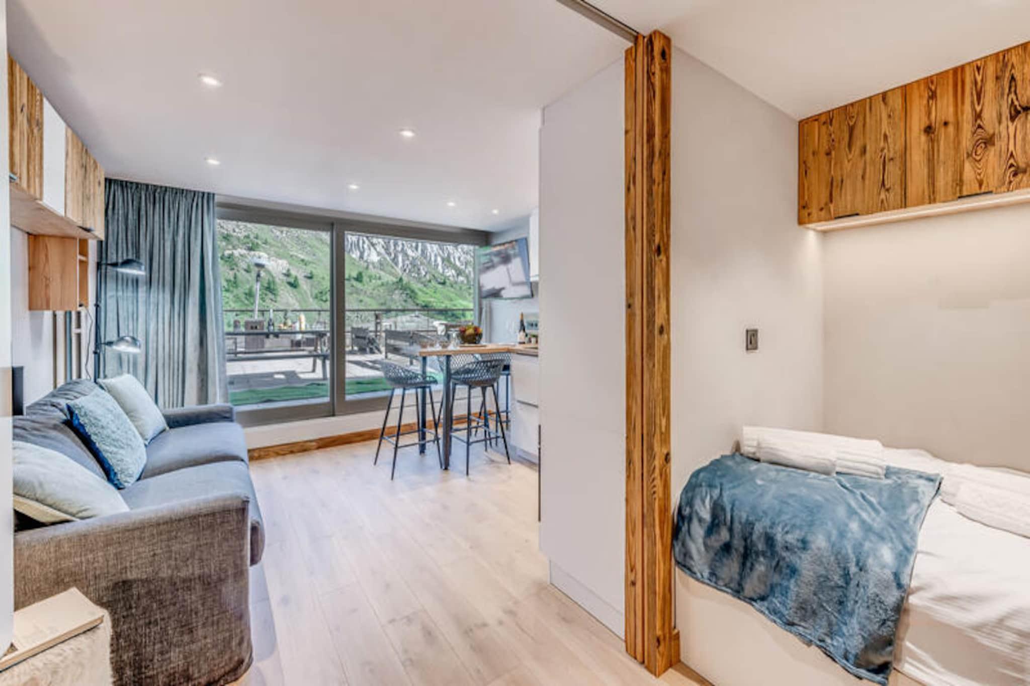 Im Herzen von Tignes-le-Lac, auf beeindruckender Höhe von 2.100 Metern, bietet dieses Premium-Studio-Apartment in der renommierten Residence LE PALAFOUR einen unvergleichlichen alpinen Rückzugsort. Die Unterkunft wurde 2023/24 renoviert und vereint moderne Eleganz mit höchstem Komfort – der perfekte Ort für Paare oder kleine Familien, die eine Mischung aus Gemütlichkeit und Abenteuer suchen. Stellen Sie sich vor: Direkt vor Ihrer Tür haben Sie Zugang zu den Pisten von Tignes. Die nach Süden ausgerichtete Terrasse lädt zum Sonnenbaden mit atemberaubendem Bergpanorama ein. Das 28 m² große Studio ist durchdacht gestaltet und bietet optimalen Raum und Funktionalität. Die Schlafnische verfügt über ein gemütliches Doppelbett mit Schiebetüren für mehr Privatsphäre, während der Wohnbereich mit einem bequemen Schlafsofa, einem Stehtisch mit Stühlen und einem Flachbildfernseher ausgestattet ist. Die voll ausgestattete Küche bietet moderne Geräte wie Induktionskochfeld, Mikrowellen-Kombinationsgerät, Geschirrspüler und eine Nespresso-Kaffeemaschine – alles, was Sie für einen angenehmen Aufenthalt benötigen. Das Badezimmer verfügt über einen eleganten Waschtisch, eine Dusche, einen beheizten Handtuchhalter und sogar einen Waschtrockner für zusätzlichen Komfort. Neben dem Apartment bietet die Residence LE PALAFOUR zahlreiche Annehmlichkeiten. Ein Einkaufszentrum direkt vor Ort ermöglicht Ihnen den bequemen Zugang zu Sportgeschäften, Skischulen, einem Supermarkt, einer Bäckerei und einer Vielzahl an Restaurants. Der Wasserpark LE LAGON ist nur 50 Meter entfernt, und der Sport- und Kulturkomplex TIGNESPACE liegt nur 100 Meter von Ihrer Tür entfernt. Ob Skifahren im Winter oder Wandern auf den alpinen Pfaden im Sommer – diese Lage ist unschlagbar. Dank der inkludierten Hotelleistungen wie Bettwäsche, Handtüchern und Endreinigung genießen Sie garantiert einen stressfreien Aufenthalt. Erleben Sie den Charme von Tignes Le Lac, wo Abenteuer auf Entspannung trifft, und schaffen Sie unvergessliche Erinnerungen in dieser traumhaften alpinen Oase.