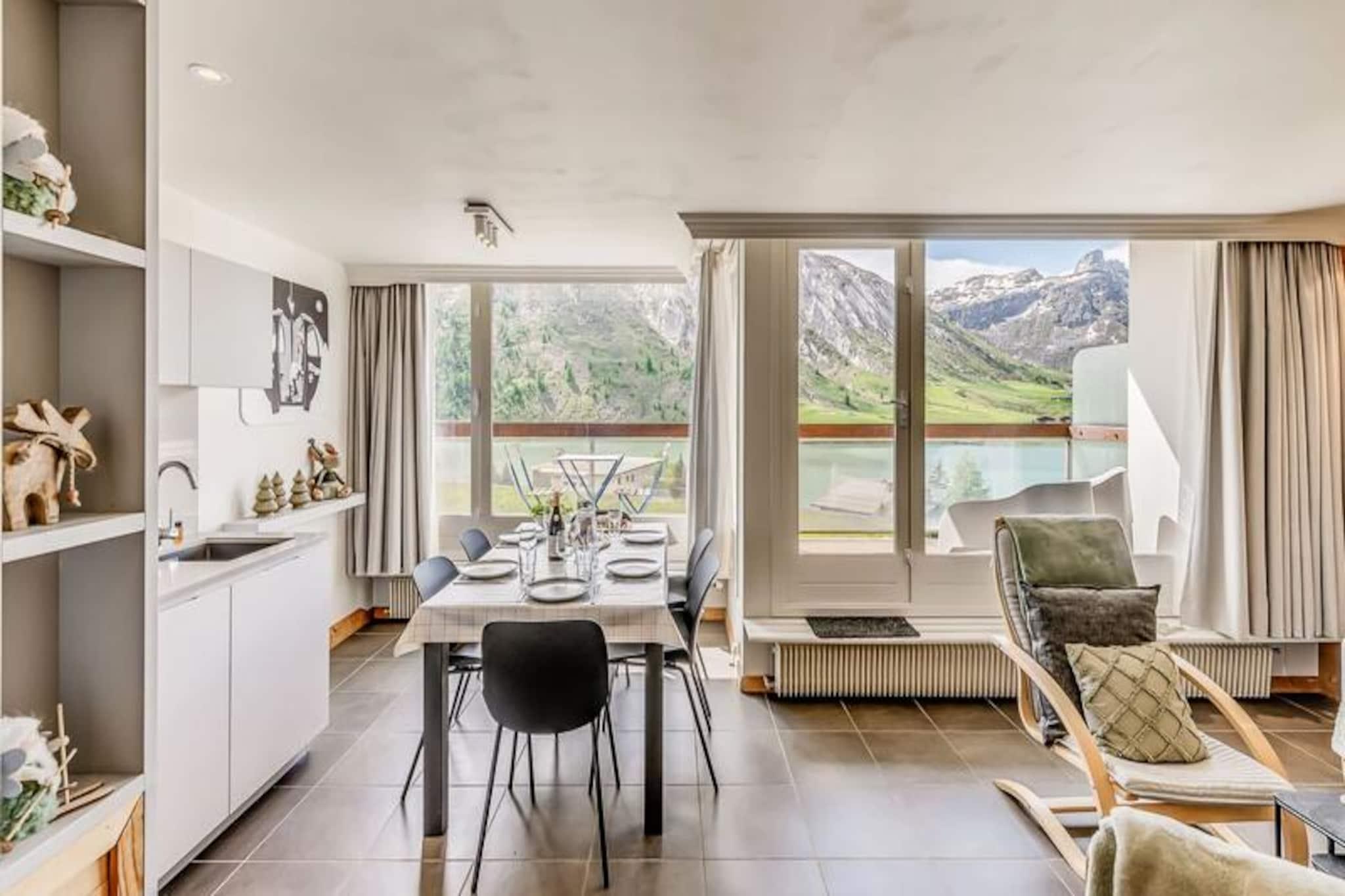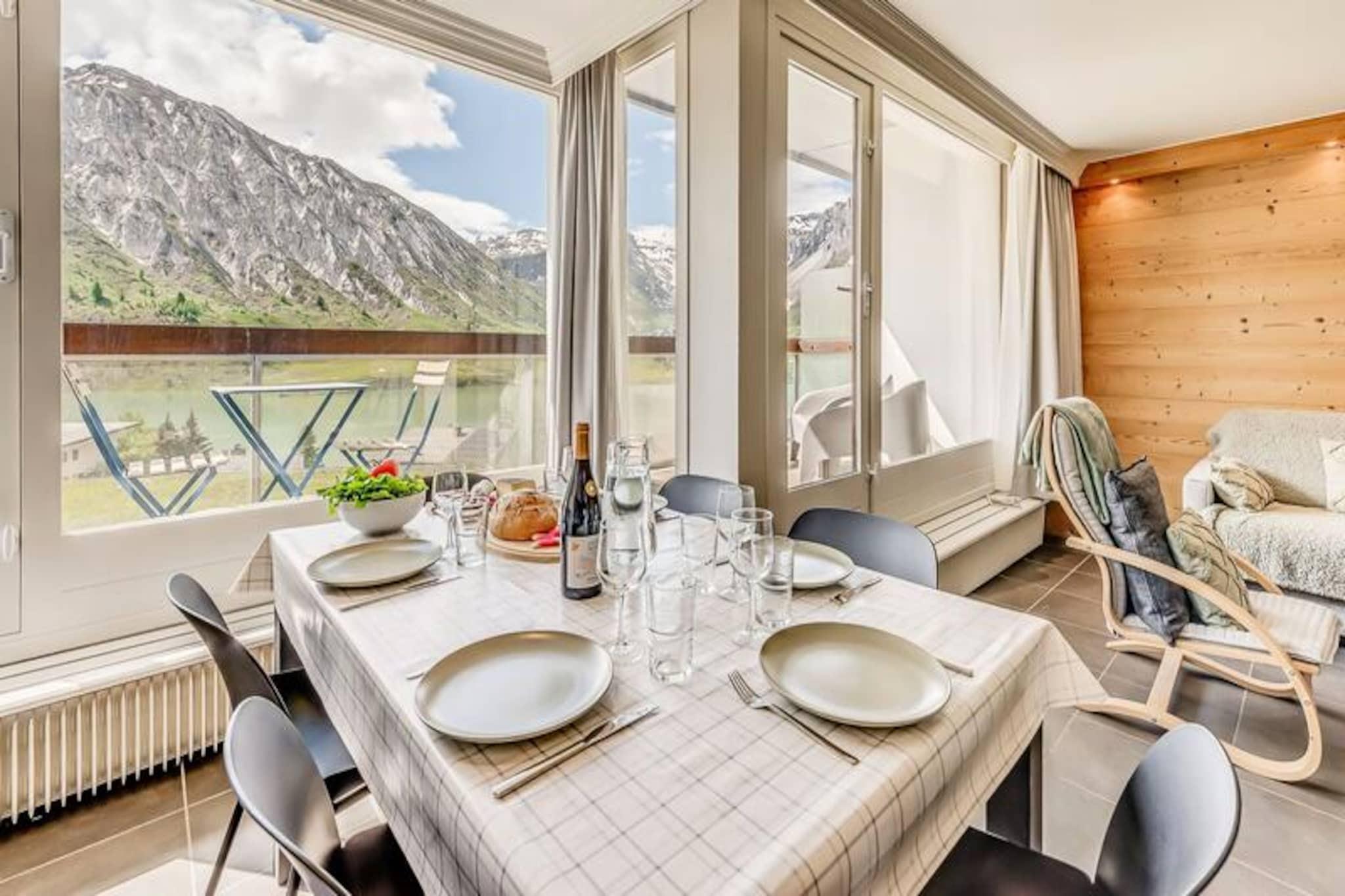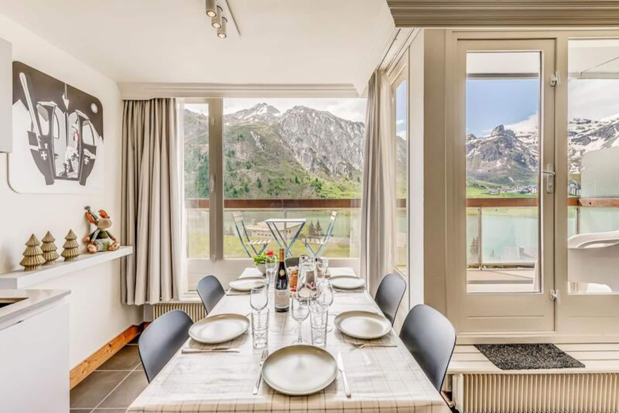 Direkt am glitzernden See von Tignes gelegen, bietet dieses exklusive Zwei-Zimmer-Apartment die perfekte Kombination aus alpinem Charme und modernem Komfort. Gelegen in der renommierten Residenz Combe Folle auf 2100 Metern Höhe, befinden Sie sich direkt am Fuße der Pisten – der Skilift Chardonnet ist nur wenige Schritte entfernt. Genießen Sie von Ihrem Südbalkon aus den atemberaubenden Blick auf das Toviere-Massiv und den Gletscher Grande Motte und atmen Sie die belebende Bergluft ein, während Sie Ihren erlebnisreichen Tag im Herzen der französischen Alpen planen. Das Apartment ist für bis zu sechs Gäste ausgelegt und besticht durch seine durchdachte Raumaufteilung mit einem gemütlichen Schlafzimmer mit flexiblen Schlafmöglichkeiten, einem ausziehbaren Schlafsofa im Wohnzimmer und einer voll ausgestatteten Küche, die sich zu einem einladenden Essbereich öffnet. Der Eingangsbereich verfügt über eine Garderobe und eine Sitzbank, während das Badezimmer mit einer modernen Dusche, einem Waschtisch und sogar einem Skischuhtrockner ausgestattet ist, damit Sie sich nach einem Tag auf der Piste rundum wohlfühlen. Hotelleistungen wie WLAN, Bettwäsche, Handtücher und die Endreinigung (ohne Küche) sind inklusive und sorgen für einen entspannten und unkomplizierten Aufenthalt.\n\nNur 50 Meter von der Unterkunft entfernt finden Sie zahlreiche Annehmlichkeiten wie Sportgeschäfte, Skischulen, einen Supermarkt, eine Bäckerei, Bars und Restaurants. Das renommierte Wassersportzentrum Le Lagon und der Sport- und Kulturkomplex Tignespace sind nur 100 Meter entfernt und bieten Aktivitäten für jedes Alter und jeden Geschmack. Ob Sie zum Skifahren, Snowboarden oder einfach nur zum Genießen der alpinen Atmosphäre hier sind – diese Lage bietet Ihnen einen unvergleichlichen Zugang zu den Highlights von Tignes.\n\nMit seiner atemberaubenden Aussicht, der erstklassigen Lage und den durchdachten Annehmlichkeiten ist dieses Apartment mehr als nur eine Unterkunft – es ist der Schlüssel zu unvergesslichen Bergerlebnissen. Ob Winter oder Sommer, die Residenz Combe Folle lädt Sie ein, die Magie der Alpen stilvoll und komfortabel zu erleben.