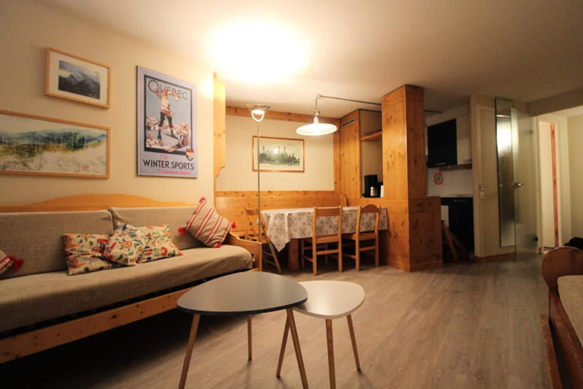 Hoch über dem glitzernden Wasser des Tignes-le-Lac bietet dieses geräumige Apartment in der legendären Residence LE PALAFOUR auf 2.100 Metern Höhe einen perfekten alpinen Rückzugsort. Dank direktem Zugang zur Piste und atemberaubendem Blick auf den Gletscher Grande Motte und die Gipfel der Toviere ist jeder Moment hier vom Zauber der französischen Alpen durchdrungen. Ob Sie vom Südbalkon aus die Aussicht genießen oder direkt auf die Piste gehen – hier trifft Abenteuer auf Entspannung. \n\nDas 63 m² große Apartment bietet bequem Platz für bis zu sieben Gäste. Die durchdachte Raumaufteilung umfasst einen gemütlichen Wohnbereich mit Einzelbett, Flachbildfernseher und Essbereich sowie eine voll ausgestattete Küche mit modernen Geräten wie Backofen, Mikrowelle und Geschirrspüler. Zwei einladende Schlafzimmer laden zum Entspannen ein: eines mit einem Doppelbett und das andere mit zwei Einzelbetten. Zusätzliche Schlafmöglichkeiten bietet der Eingangsbereich mit Etagenbetten. Mit Bad, Duschbad und separatem WC bietet das Apartment Komfort für Gruppen oder Familien. Die Residence LE PALAFOUR selbst ist ein zentraler Ort zum Entspannen und für Aktivitäten. Nur 50 Meter vom Wasserpark LE LAGON und 100 Meter vom Sport- und Kulturkomplex TIGNESPACE entfernt, befindet sie sich in unmittelbarer Nähe eines lebhaften Einkaufszentrums mit Skischulen, Sportgeschäften, einem Supermarkt und charmanten Bäckereien. Nach einem Tag auf der Piste können Sie in einer der nahegelegenen Bars oder Restaurants entspannen oder die vielen Annehmlichkeiten in wenigen Schritten erkunden. Ob Sie nun wegen des erstklassigen Skifahrens, der klaren Bergluft oder der pulsierenden Après-Ski-Atmosphäre hier sind – dieses Apartment bietet den perfekten Ausgangspunkt für einen unvergesslichen Aufenthalt in den Alpen.