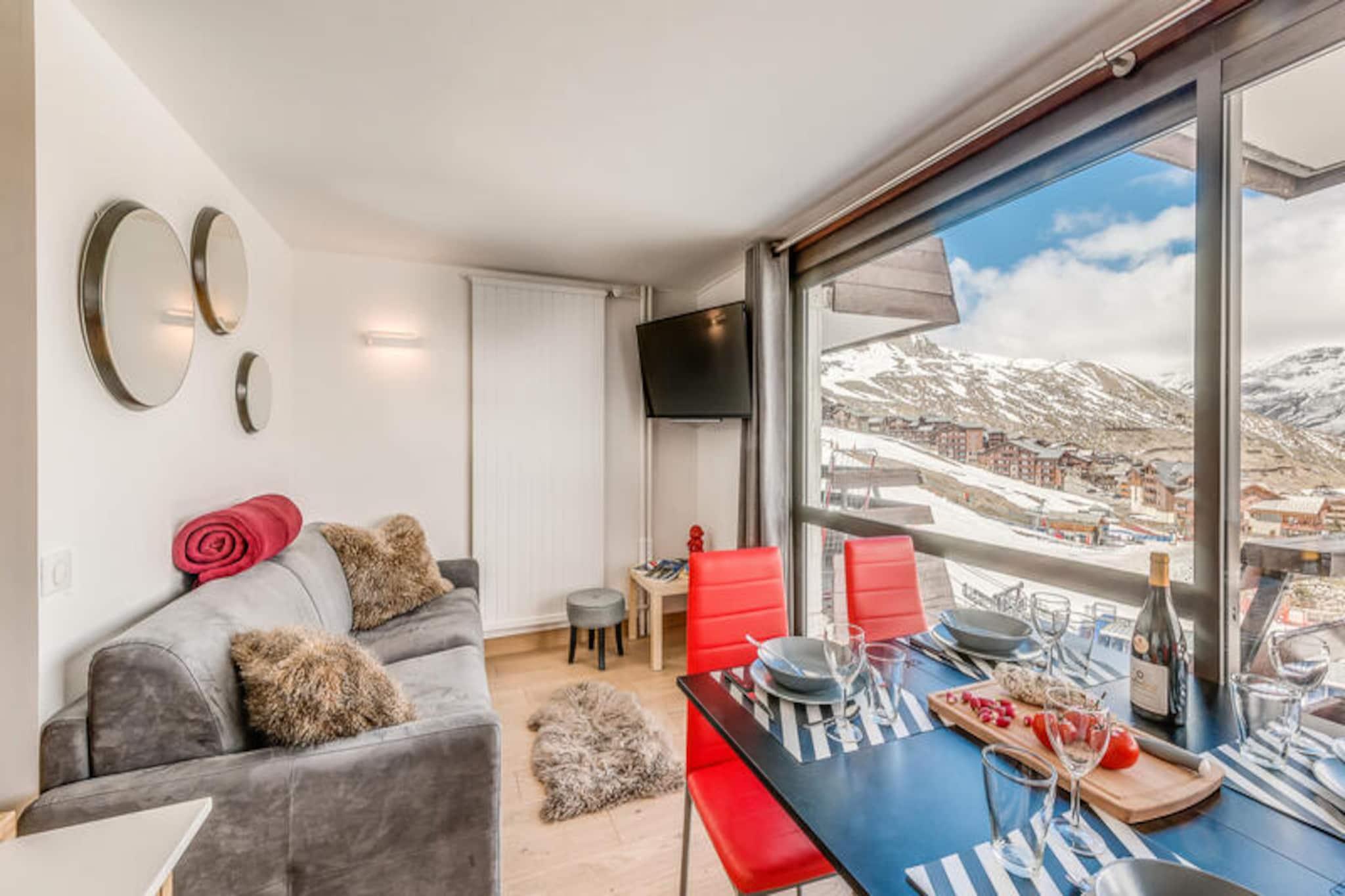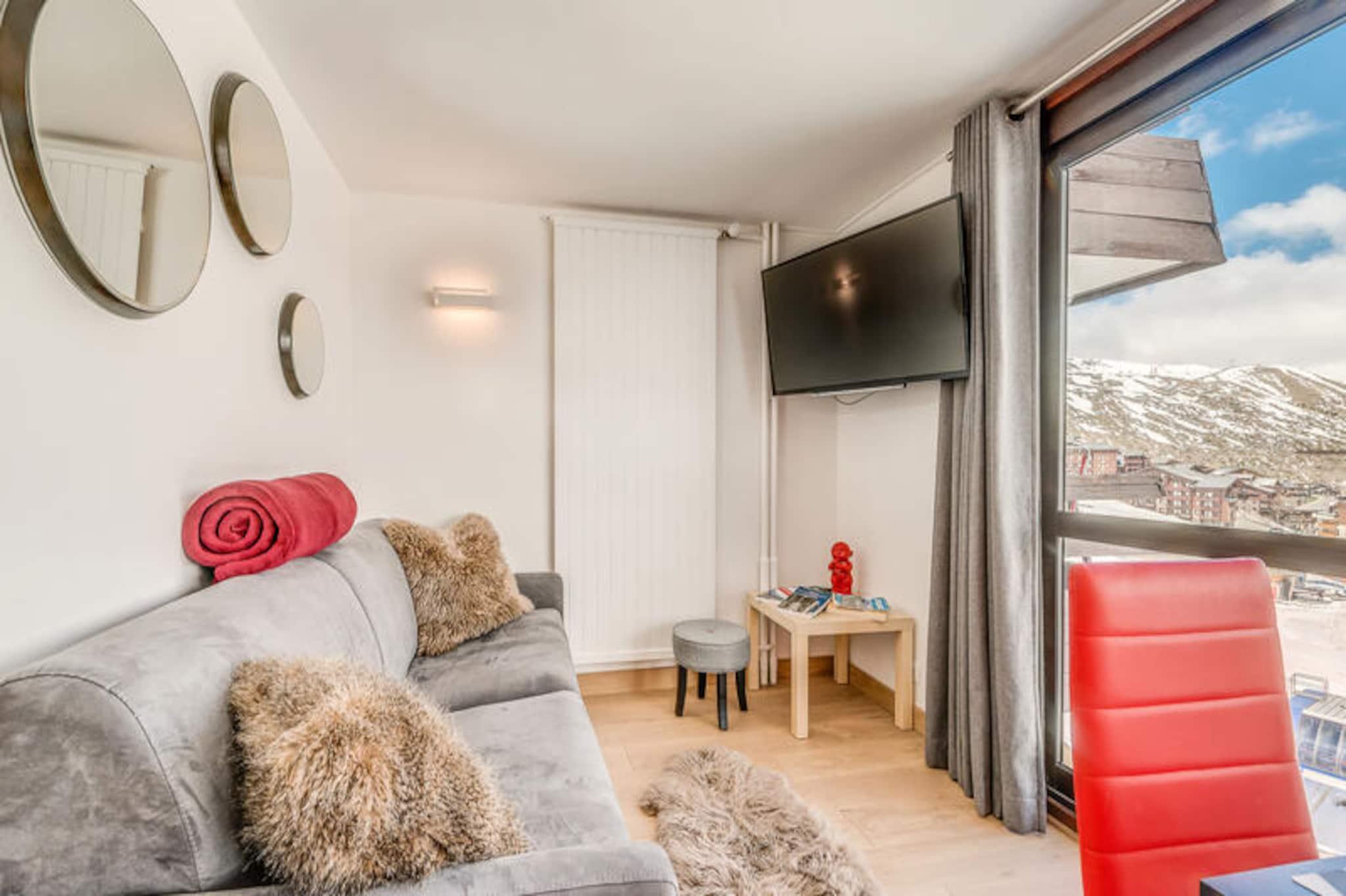 Hoch über der Welt, auf 2100 Metern Höhe, bietet dieses Premium-Studio in der legendären Residence Le Palafour einen unvergesslichen alpinen Aufenthalt im Herzen von Tignes-le-Lac. Dank des direkten Zugangs zur Piste können Sie direkt auf die Abfahrten und das aufregende Erlebnis der französischen Alpen genießen. Stellen Sie sich vor, wie Sie von Ihrem nach Osten ausgerichteten Balkon aus mit atemberaubendem Blick auf das Maison de Tignes und die majestätische Grande Sassière erwachen, die frische Bergluft Ihre Lungen füllt und die Vorfreude auf neue Abenteuer auf Sie wartet. Dieses Refugium im sechsten Stock ist eine Oase der Ruhe für alle, die Komfort und Bequemlichkeit in einem erstklassigen Skigebiet suchen. Das komplett renovierte, 26 m² große Studio ist durchdacht gestaltet und bietet Platz für bis zu vier Gäste. Der Wohnbereich verfügt über ein gemütliches Schlafsofa, einen Flachbildfernseher und ein großes Erkerfenster, das den Raum mit Tageslicht durchflutet. Die moderne Küche ist mit Cerankochfeld, Kühlschrank, Mikrowellen-Kombinationsgerät, Geschirrspüler und sogar einer Waschmaschine ausgestattet und somit ideal für längere Aufenthalte. Ein separater Schlafbereich mit Etagenbetten sorgt für Privatsphäre und Komfort, während das elegante Badezimmer mit Badewanne und separatem WC für einen Hauch von Luxus sorgt. Hotelleistungen wie Bettwäsche, Handtücher und Endreinigung garantieren einen reibungslosen und entspannten Aufenthalt. Treten Sie vor die Tür und tauchen Sie ein in die lebendige Atmosphäre von Tignes-le-Lac. Die Unterkunft bietet ein Einkaufszentrum mit Sportgeschäften, Skischulen, Supermarkt, Bäckerei, Bars und Restaurants – alles nur wenige Schritte entfernt. Der nahegelegene Wasserpark Le Lagon und der Sport- und Kulturkomplex Tignespace bieten unzählige Möglichkeiten zur Erholung und Entspannung. Ob Sie nun durch unberührten Pulverschnee gleiten, Sommerwanderwege erkunden oder einfach nur den alpinen Charme genießen möchten – diese Studio-Hütte ist Ihr Tor zu einem unvergesslichen Bergabenteuer.