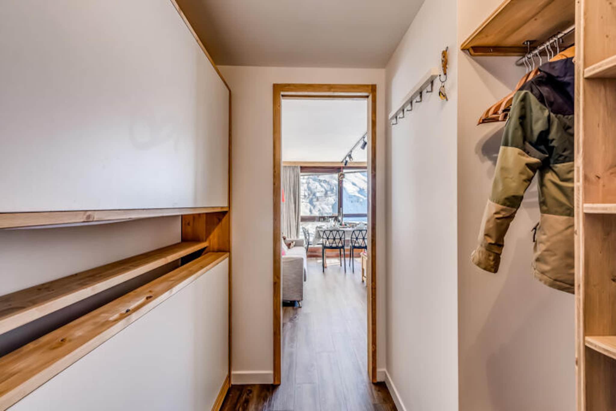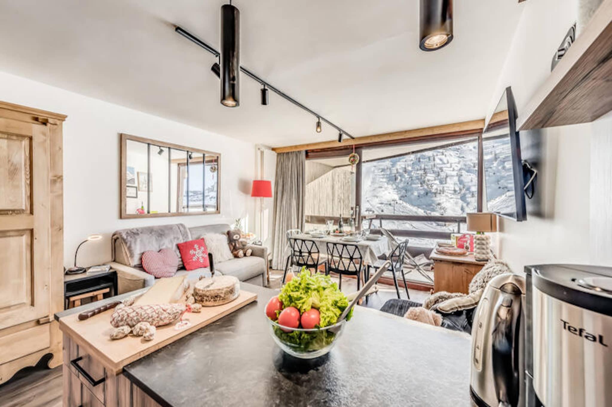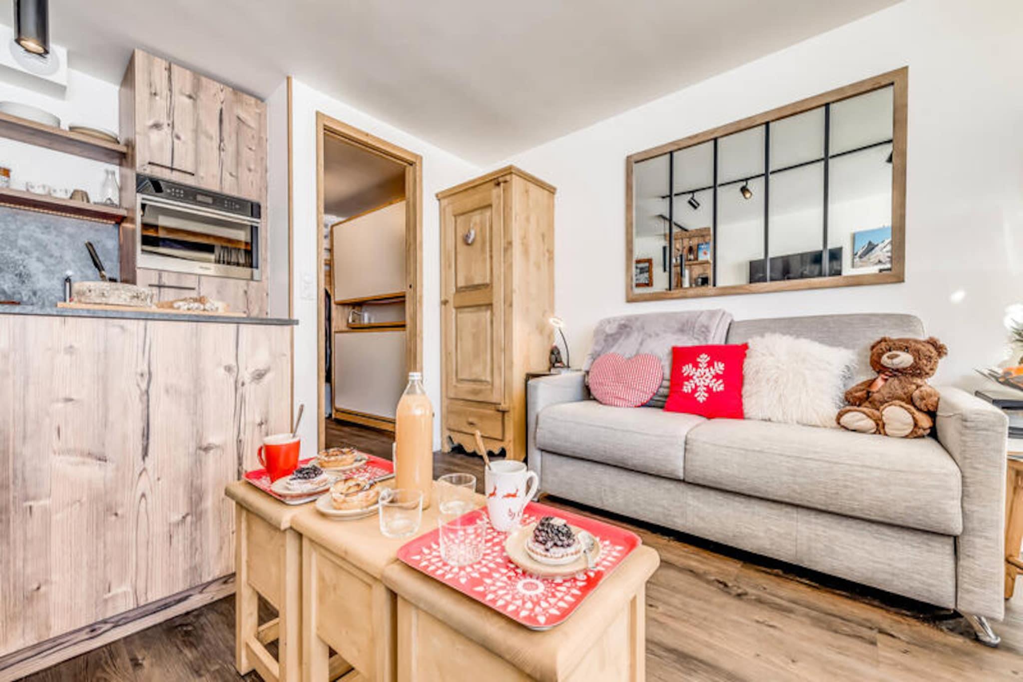 Hoch über dem glitzernden Wasser des Tignes-le-Lac bietet dieses Premium-Studio einen Logenplatz für den alpinen Zauber eines der bekanntesten Skigebiete Frankreichs. Stellen Sie sich vor, Sie wachen auf und erleben den Sonnenaufgang über dem See, treten auf Ihren Südbalkon und atmen die frische Bergluft ein, während die Pisten direkt vor Ihrer Tür locken. Dank des direkten Zugangs zur Piste sind Sie bestens positioniert, um die Weltklasse-Pisten von Tignes und Val d’Isère zu erkunden und jeden Tag zu einem Abenteuer im schneebedeckten Paradies der französischen Alpen zu machen. \n\nDieses durchdacht gestaltete Studio im 8. Stock der Residence LE PALAFOUR bietet bequem Platz für bis zu vier Gäste. Der Raum ist clever aufgeteilt mit ausklappbaren Etagenbetten im Eingangsbereich und einem gemütlichen Wohnbereich mit Schlafsofa und festem Sofa. Die Küchenzeile ist modern ausgestattet, unter anderem mit Cerankochfeld, Kühlschrank mit Gefrierfach, Multifunktionsbackofen und Geschirrspüler. So haben Sie alles, was Sie für die Zubereitung Ihrer Mahlzeiten nach einem Tag auf der Piste benötigen. Das Badezimmer verfügt über Dusche, Waschbecken und separates WC sowie eine Waschmaschine für zusätzlichen Komfort. Premium-Hotelleistungen wie Bettwäsche, Handtücher und die Endreinigung (ohne Küche) sind inklusive und sorgen für einen unbeschwerten Aufenthalt. \n\nEntdecken Sie das pulsierende Herz von Tignes-le-Lac. Die Unterkunft liegt nur 50 Meter vom Wasserpark LE LAGON und 100 Meter vom Sport- und Kulturkomplex TIGNESPACE entfernt, der eine Vielzahl an Aktivitäten für Entspannung und Abenteuer bietet. Im hauseigenen Einkaufszentrum finden Sie Skischulen, Sportgeschäfte, einen Supermarkt, eine Bäckerei, Bars und Restaurants – alles, was Sie brauchen, ist in unmittelbarer Nähe. Ob Sie zum Skifahren, Wandern oder einfach nur zum Genießen der atemberaubenden Alpenkulisse hier sind: Dieses Studio ist Ihr Tor zu unvergesslichen Bergerlebnissen. Wählen Sie dieses charmante Refugium wegen seiner unschlagbaren Lage, des modernen Komforts und der atemberaubenden Aussicht und lassen Sie die Magie von Tignes Le Lac zur Kulisse für Ihren nächsten alpinen Urlaub werden.