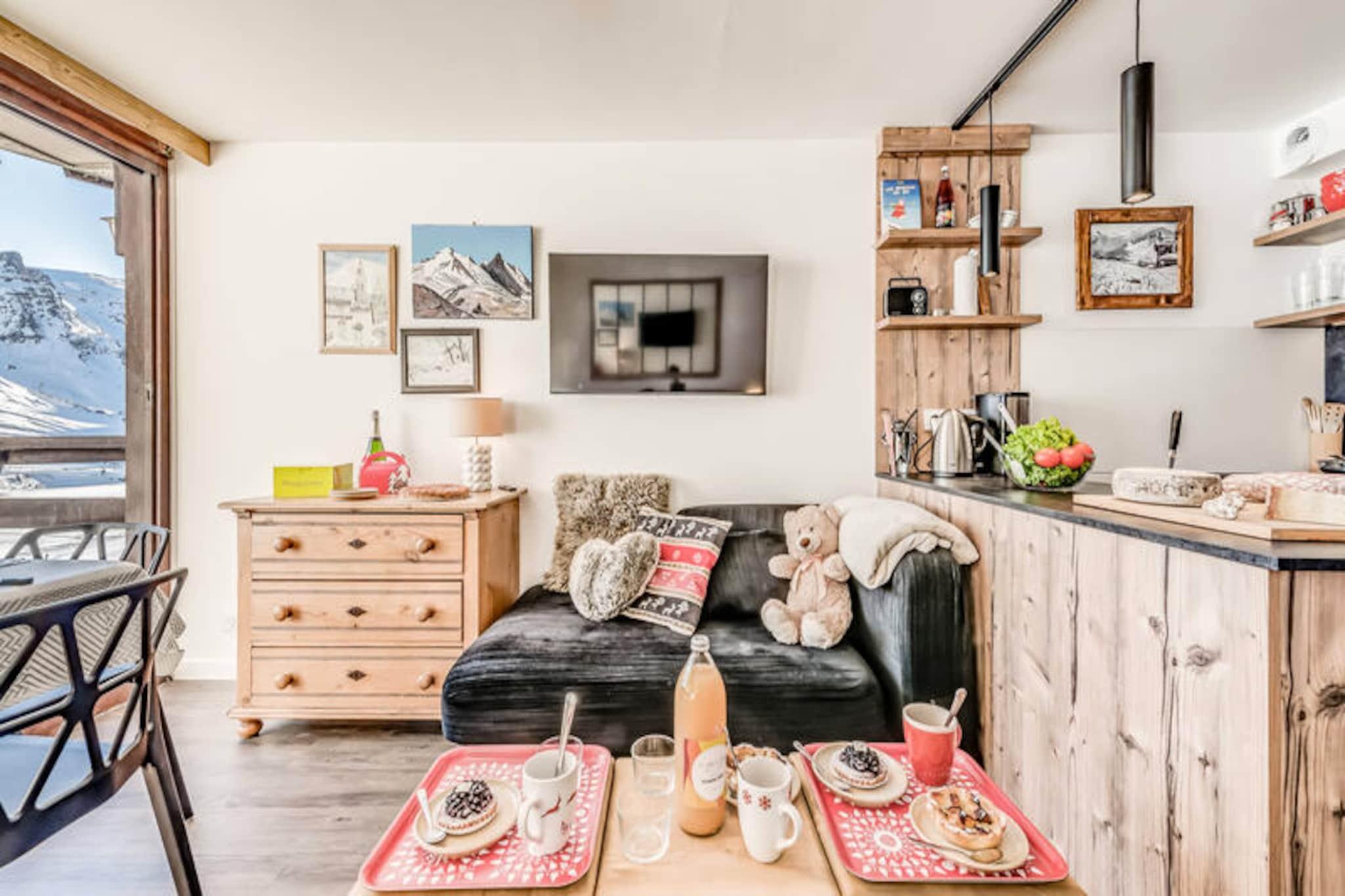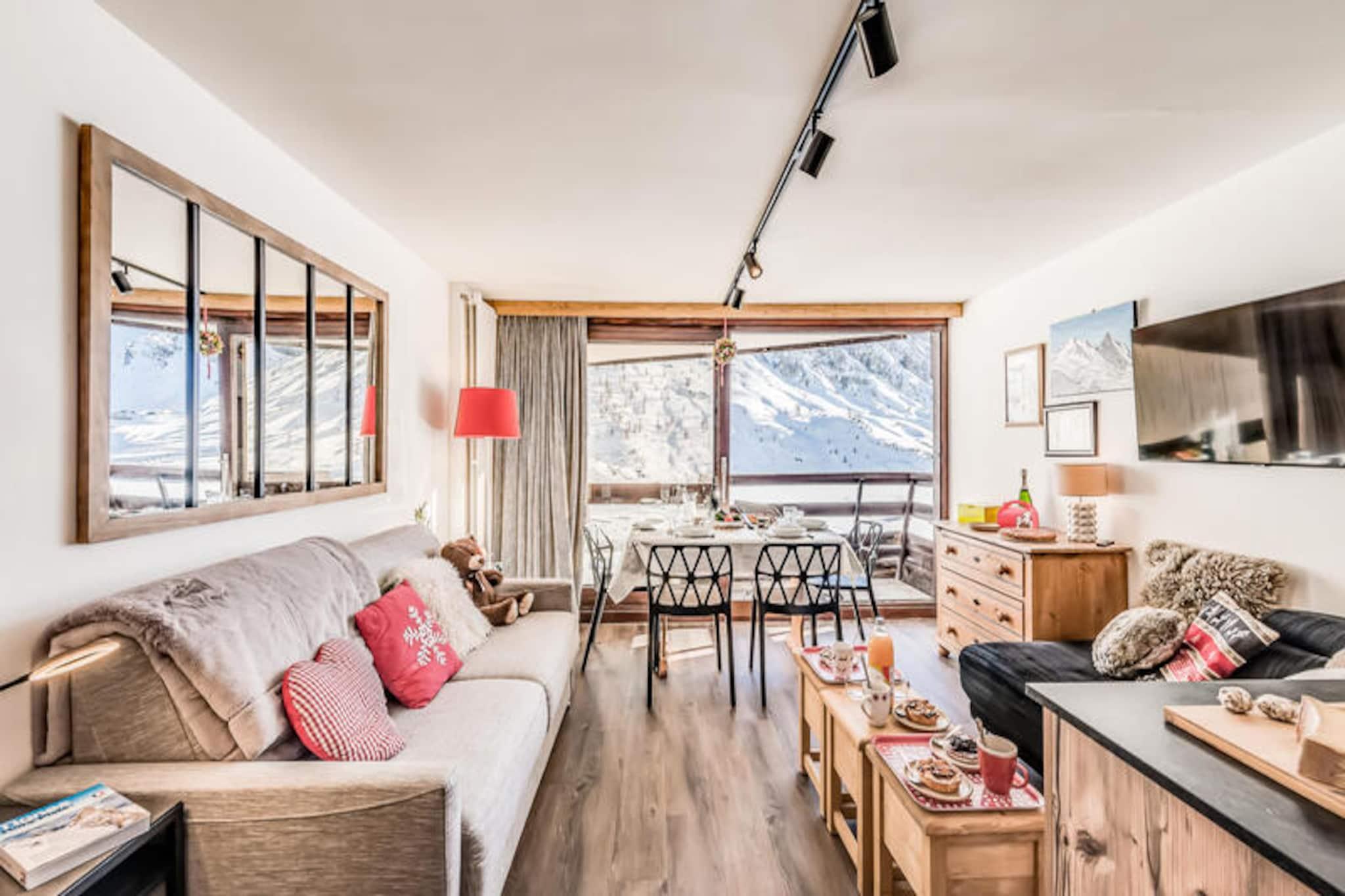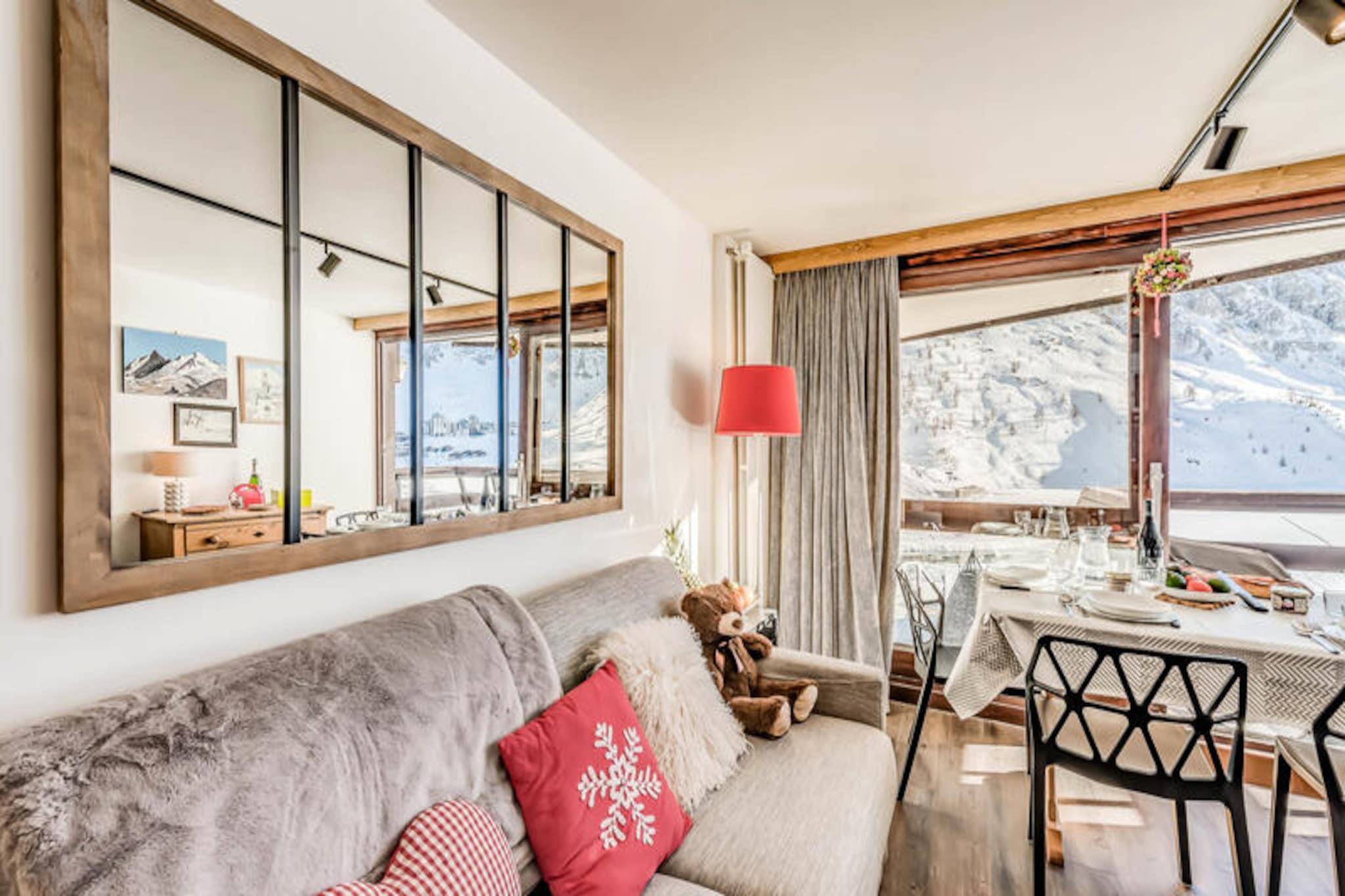 Hoch über dem glitzernden Wasser des Tignes-le-Lac bietet dieses Premium-Studio einen Logenplatz für den alpinen Zauber eines der bekanntesten Skigebiete Frankreichs. Stellen Sie sich vor, Sie wachen auf und erleben den Sonnenaufgang über dem See, treten auf Ihren Südbalkon und atmen die frische Bergluft ein, während die Pisten direkt vor Ihrer Tür locken. Dank des direkten Zugangs zur Piste sind Sie bestens positioniert, um die Weltklasse-Pisten von Tignes und Val d’Isère zu erkunden und jeden Tag zu einem Abenteuer im schneebedeckten Paradies der französischen Alpen zu machen. \n\nDieses durchdacht gestaltete Studio im 8. Stock der Residence LE PALAFOUR bietet bequem Platz für bis zu vier Gäste. Der Raum ist clever aufgeteilt mit ausklappbaren Etagenbetten im Eingangsbereich und einem gemütlichen Wohnbereich mit Schlafsofa und festem Sofa. Die Küchenzeile ist modern ausgestattet, unter anderem mit Cerankochfeld, Kühlschrank mit Gefrierfach, Multifunktionsbackofen und Geschirrspüler. So haben Sie alles, was Sie für die Zubereitung Ihrer Mahlzeiten nach einem Tag auf der Piste benötigen. Das Badezimmer verfügt über Dusche, Waschbecken und separates WC sowie eine Waschmaschine für zusätzlichen Komfort. Premium-Hotelleistungen wie Bettwäsche, Handtücher und die Endreinigung (ohne Küche) sind inklusive und sorgen für einen unbeschwerten Aufenthalt. \n\nEntdecken Sie das pulsierende Herz von Tignes-le-Lac. Die Unterkunft liegt nur 50 Meter vom Wasserpark LE LAGON und 100 Meter vom Sport- und Kulturkomplex TIGNESPACE entfernt, der eine Vielzahl an Aktivitäten für Entspannung und Abenteuer bietet. Im hauseigenen Einkaufszentrum finden Sie Skischulen, Sportgeschäfte, einen Supermarkt, eine Bäckerei, Bars und Restaurants – alles, was Sie brauchen, ist in unmittelbarer Nähe. Ob Sie zum Skifahren, Wandern oder einfach nur zum Genießen der atemberaubenden Alpenkulisse hier sind: Dieses Studio ist Ihr Tor zu unvergesslichen Bergerlebnissen. Wählen Sie dieses charmante Refugium wegen seiner unschlagbaren Lage, des modernen Komforts und der atemberaubenden Aussicht und lassen Sie die Magie von Tignes Le Lac zur Kulisse für Ihren nächsten alpinen Urlaub werden.