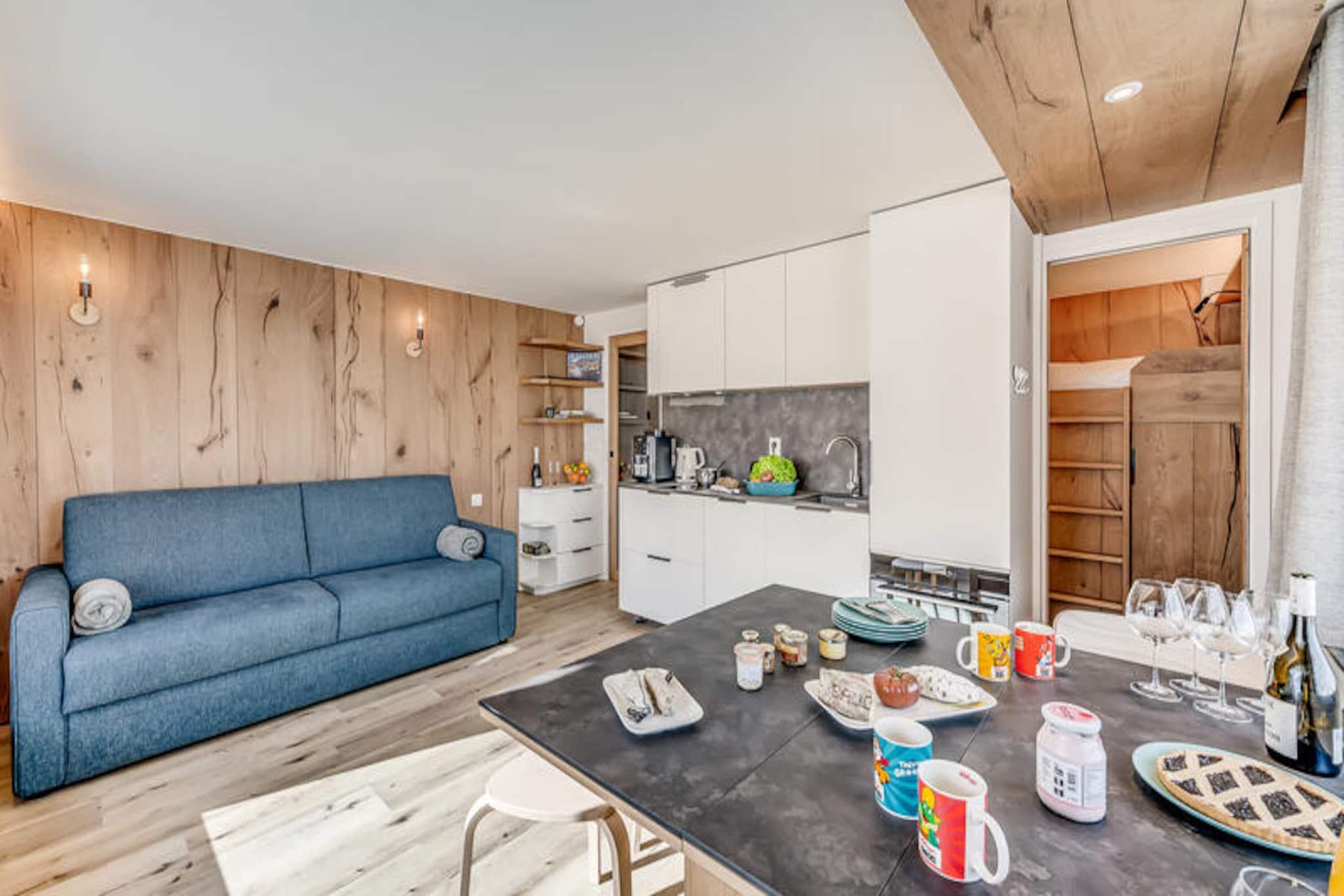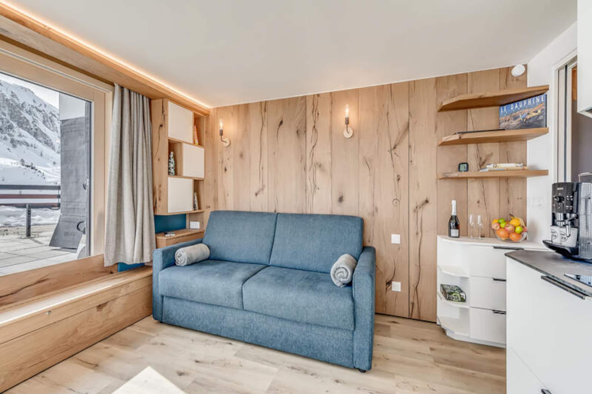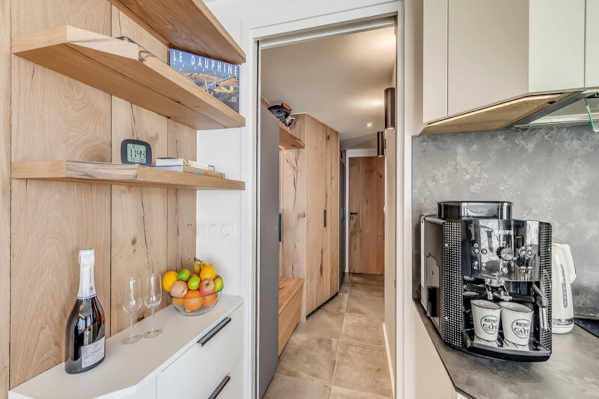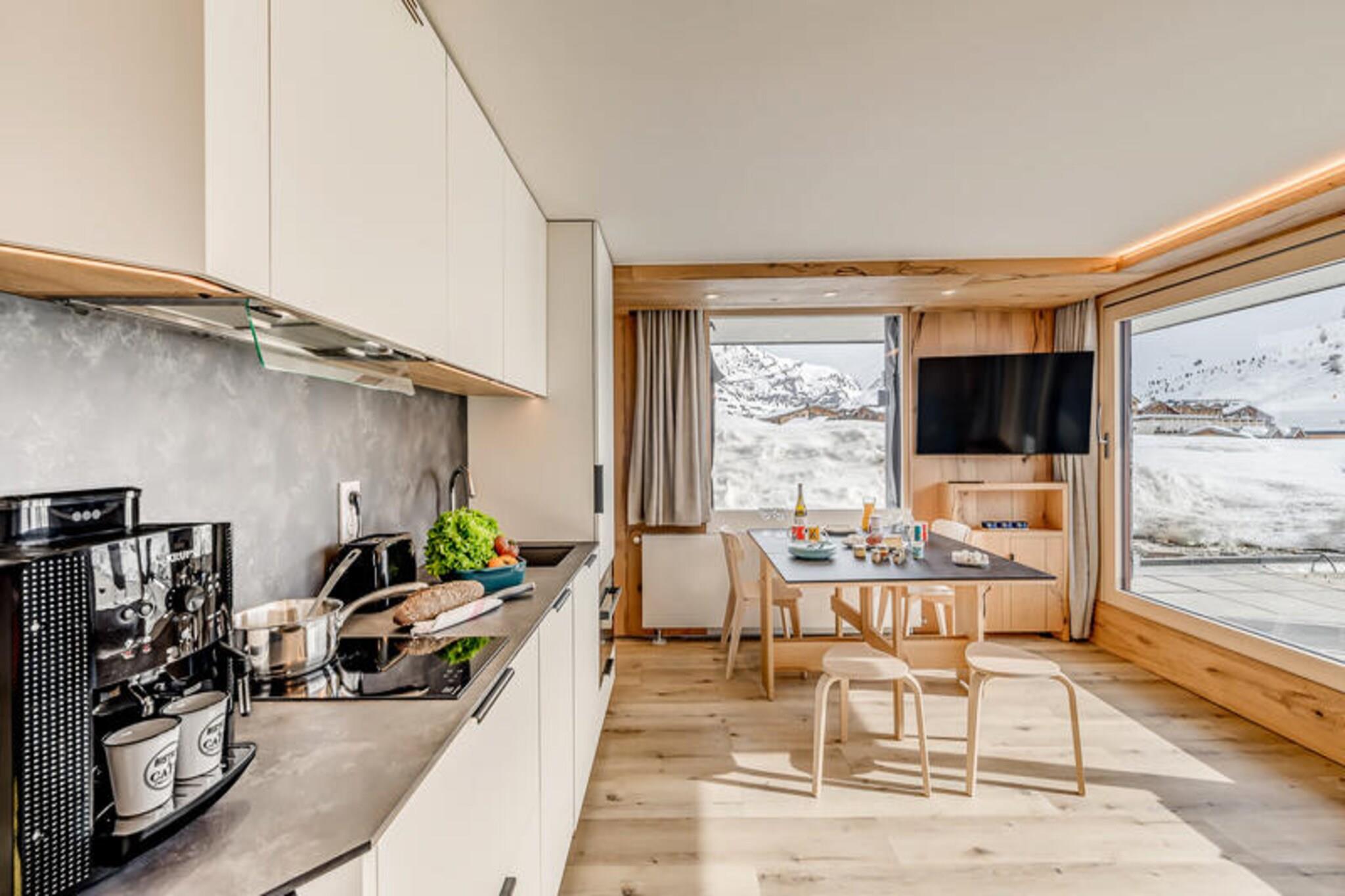Hoch über dem glitzernden Wasser des Sees von Tignes-le-Lac bietet dieses wunderschön renovierte Studio-Apartment einen erstklassigen alpinen Rückzugsort mit direktem Zugang zur Piste. Gelegen in der legendären Residence LE PALAFOUR, sind Gäste ideal positioniert, um die Weltklasse-Pisten von Tignes und Val d’Isère zu erkunden und gleichzeitig das pulsierende Leben des Ortes auf 2.100 Metern Höhe zu genießen. Ob Sie von Ihrer sonnigen Terrasse aus den Blick auf den ruhigen See oder die majestätische Grande Sassière schweifen lassen – hier werden Bergträume wahr. Das 2023 komplett renovierte Studio vereint moderne Eleganz mit durchdachter Funktionalität. Das nach Süden ausgerichtete Wohnzimmer ist eine gemütliche Oase mit einem bequemen Schlafsofa, einem stilvollen Essbereich und einer voll ausgestatteten Küche mit hochwertigen Geräten, darunter eine Kaffeemaschine für den perfekten Start in den Tag. Ein separates Doppelschlafzimmer mit Etagenbetten sorgt für erholsame Nächte, während das elegante Badezimmer mit beheiztem Handtuchhalter und Waschmaschine für zusätzlichen Luxus sorgt. Zusätzliche Annehmlichkeiten wie ein privater Skischrank, ein elektrischer Skischuhtrockner und Highspeed-WLAN machen dieses Studio ebenso praktisch wie einladend. Nur 50 Meter vom Wasserpark LE LAGON und 100 Meter vom Sport- und Kulturkomplex TIGNESPACE entfernt, befinden Sie sich direkt vor der Tür. Die Residenz selbst bietet ein Einkaufszentrum mit Skigeschäften, einer Bäckerei, Restaurants und Bars – alles, was Sie brauchen, ist in unmittelbarer Nähe. Im Winter laden die Pisten zum Skifahren ein, während die Region im Sommer zu einem Paradies für Wanderer, Mountainbiker und Naturliebhaber wird. Ob Sie nun Adrenalin pur oder erholsame Momente in den Alpen suchen – dieses Studio ist Ihr Tor zu unvergesslichen Erinnerungen in den französischen Alpen.