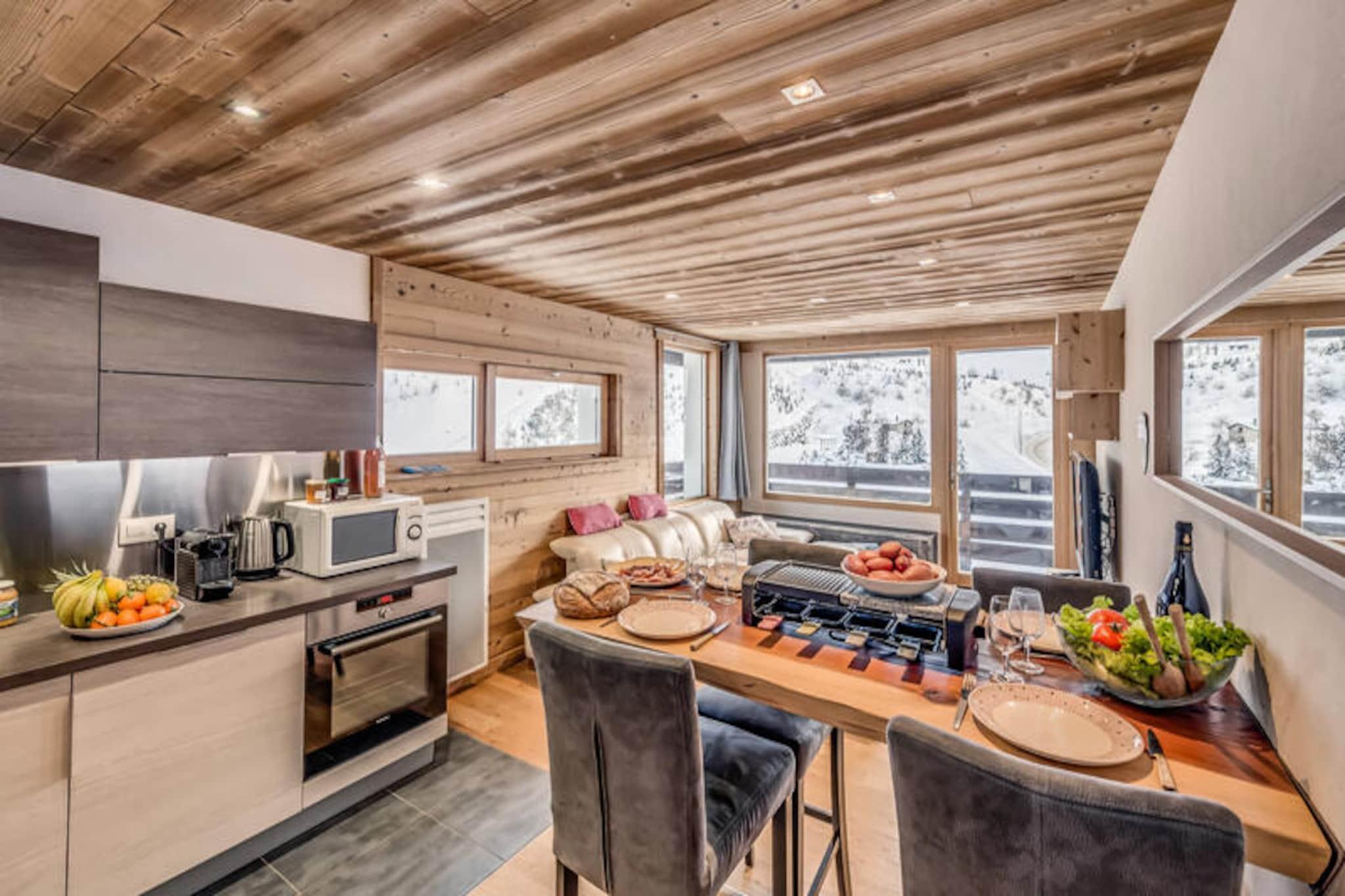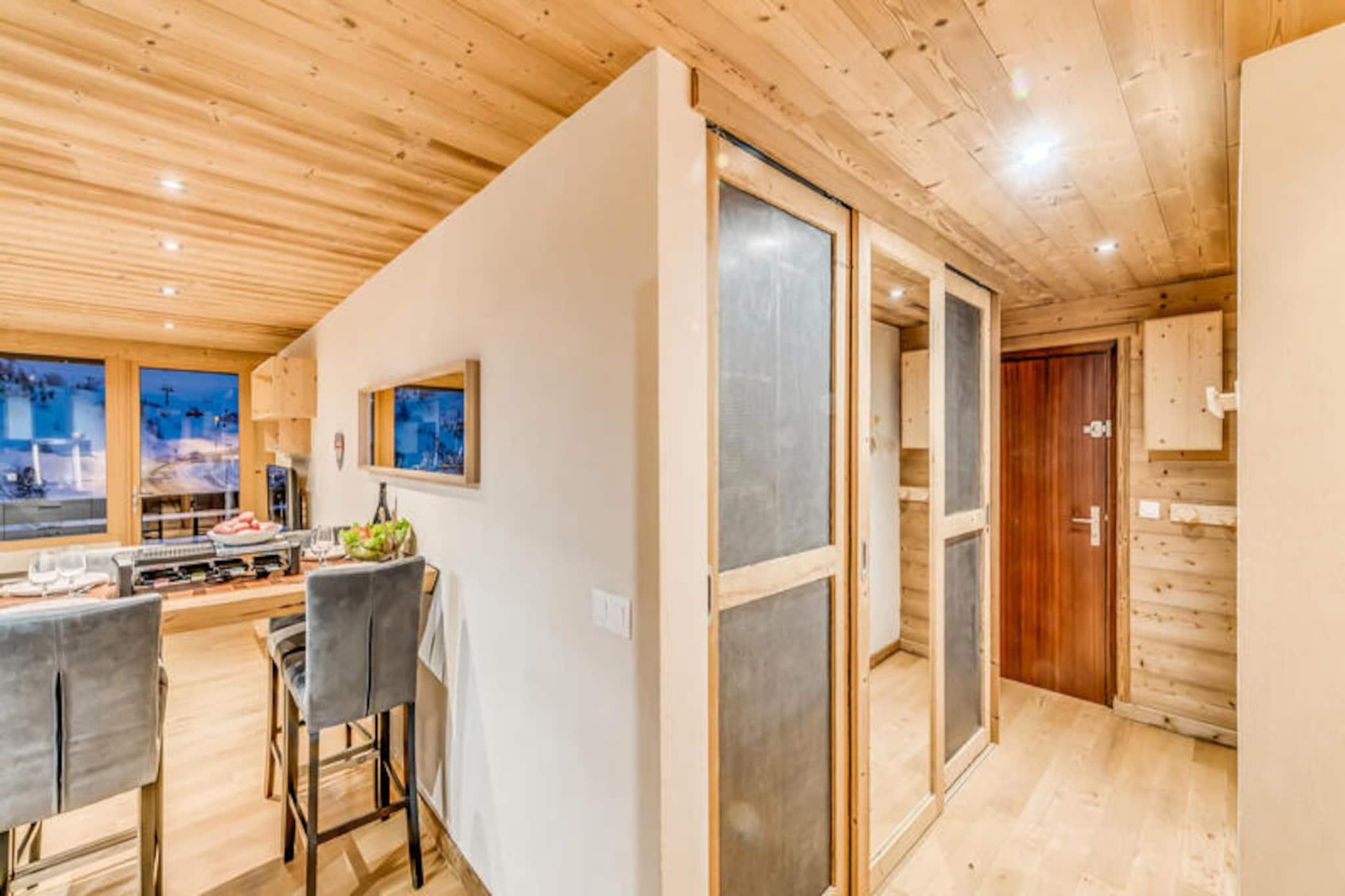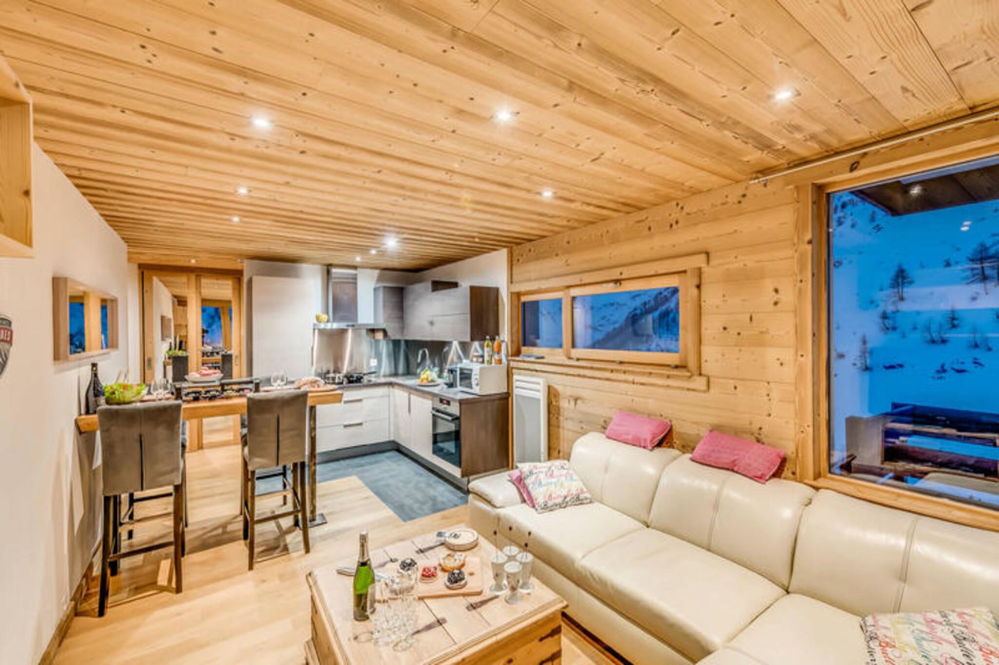 Hoch über dem lebhaften Bergdorf Le Lavachet lädt diese atemberaubende Residenz Sie ein, den Zauber von Tignes auf 2.100 Metern Höhe zu erleben. La TOUR du LAC bietet einen ruhigen Rückzugsort mit atemberaubendem Blick auf den Gletscher Grande Motte von den breiten, nach Süden ausgerichteten Balkonen und liegt nur wenige Schritte von den Sesselliften Chaudannes und Pâquis entfernt. Ob Sie die unberührten Pisten hinunterfahren oder den sonnenverwöhnten Charme dieser familienfreundlichen Gegend genießen möchten – dank des direkten Zugangs zur Piste beginnt Ihr Abenteuer direkt vor der Tür. Kostenlose Shuttlebusse bringen Sie in wenigen Minuten bequem nach Tignes-le-Lac und Tignes-Val Claret und machen die Erkundung der Umgebung zum Kinderspiel. Das hochwertige Dreizimmer-Apartment im 6. Stock wurde liebevoll renoviert und vereint modernen Komfort mit alpiner Gemütlichkeit. Die hellen Holzelemente schaffen ein behagliches und zugleich elegantes Ambiente – perfekt für Familien oder Gruppen bis zu fünf Personen. Die Ausrichtung nach zwei Seiten lässt die Räume in natürlichem Licht erstrahlen, während zwei Balkone einen Panoramablick auf die umliegenden Gipfel bieten. Das Apartment verfügt über ein geräumiges Wohnzimmer mit Flachbildfernseher, eine voll ausgestattete Küche mit hochwertigen Geräten und zwei einladende Schlafzimmer – eines mit Doppelbett und Balkonzugang, das andere mit Etagenbett und Einzelbett. Ein elegantes Badezimmer mit Badewanne und beheiztem Handtuchhalter sowie ein separates WC runden das Raumangebot ab. Direkt am Eingang der Anlage befinden sich Skischränke. Zu den Annehmlichkeiten eines Hotels gehören WLAN, Bettwäsche, Handtücher und die Endreinigung. Die Geschäfte, Bäckereien und Restaurants von Le Lavachet in der Nähe tragen zum Charme der Gegend bei, und der majestätische Blick auf die Gletscher erinnert an die außergewöhnliche alpine Kulisse. Ob Sie Wintersport betreiben oder im Sommer wandern gehen möchten – La TOUR du LAC verspricht einen unvergesslichen Aufenthalt im Herzen von Tignes.