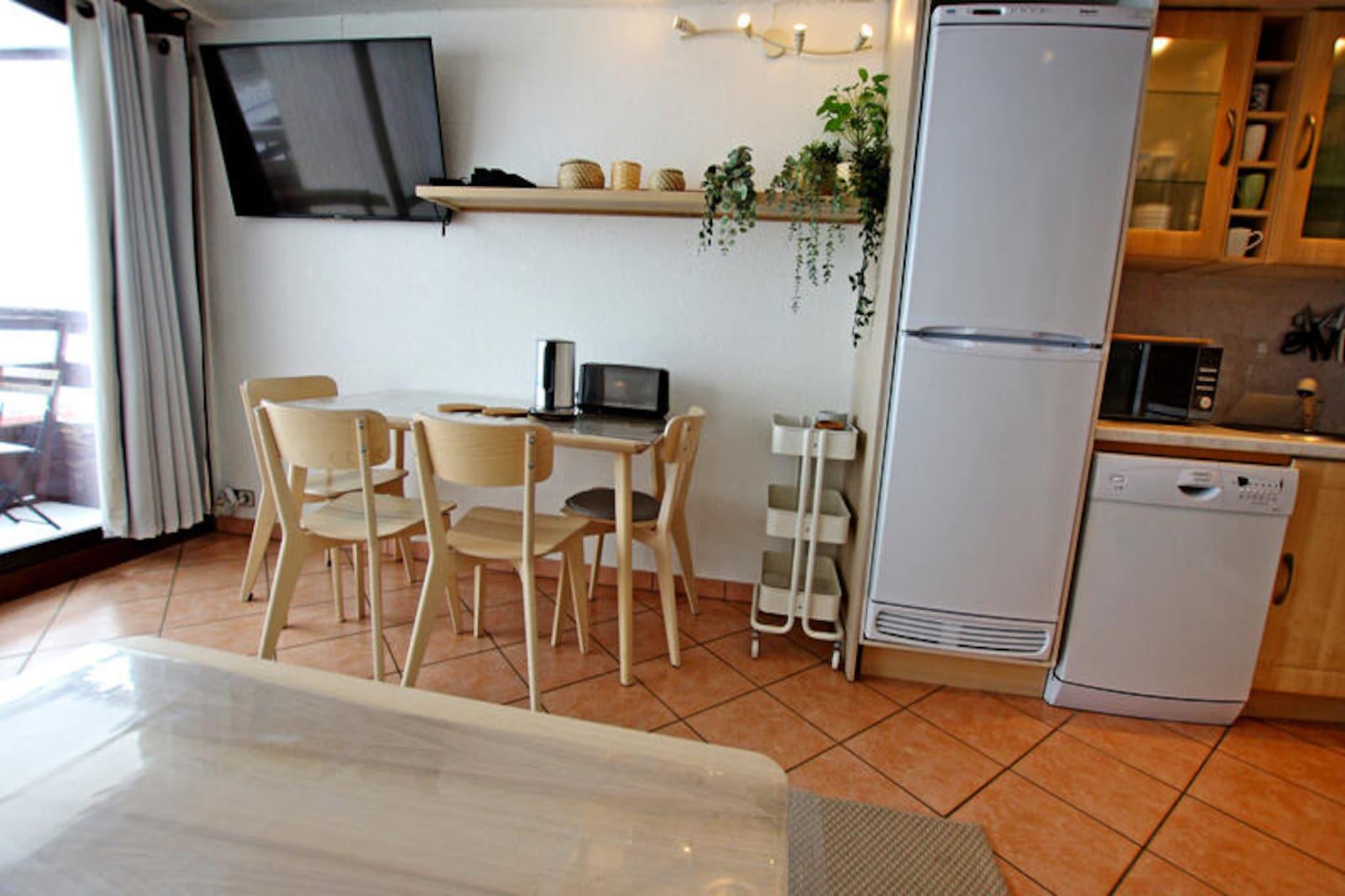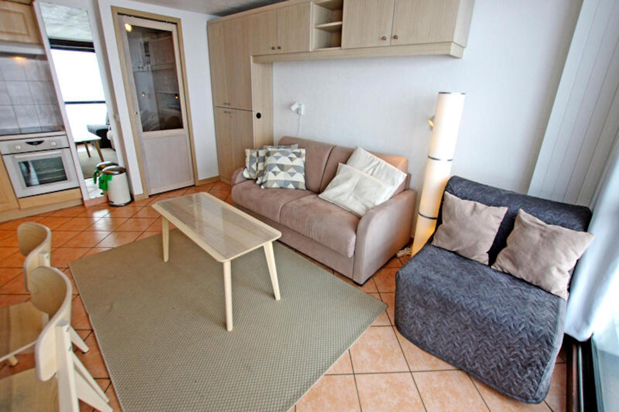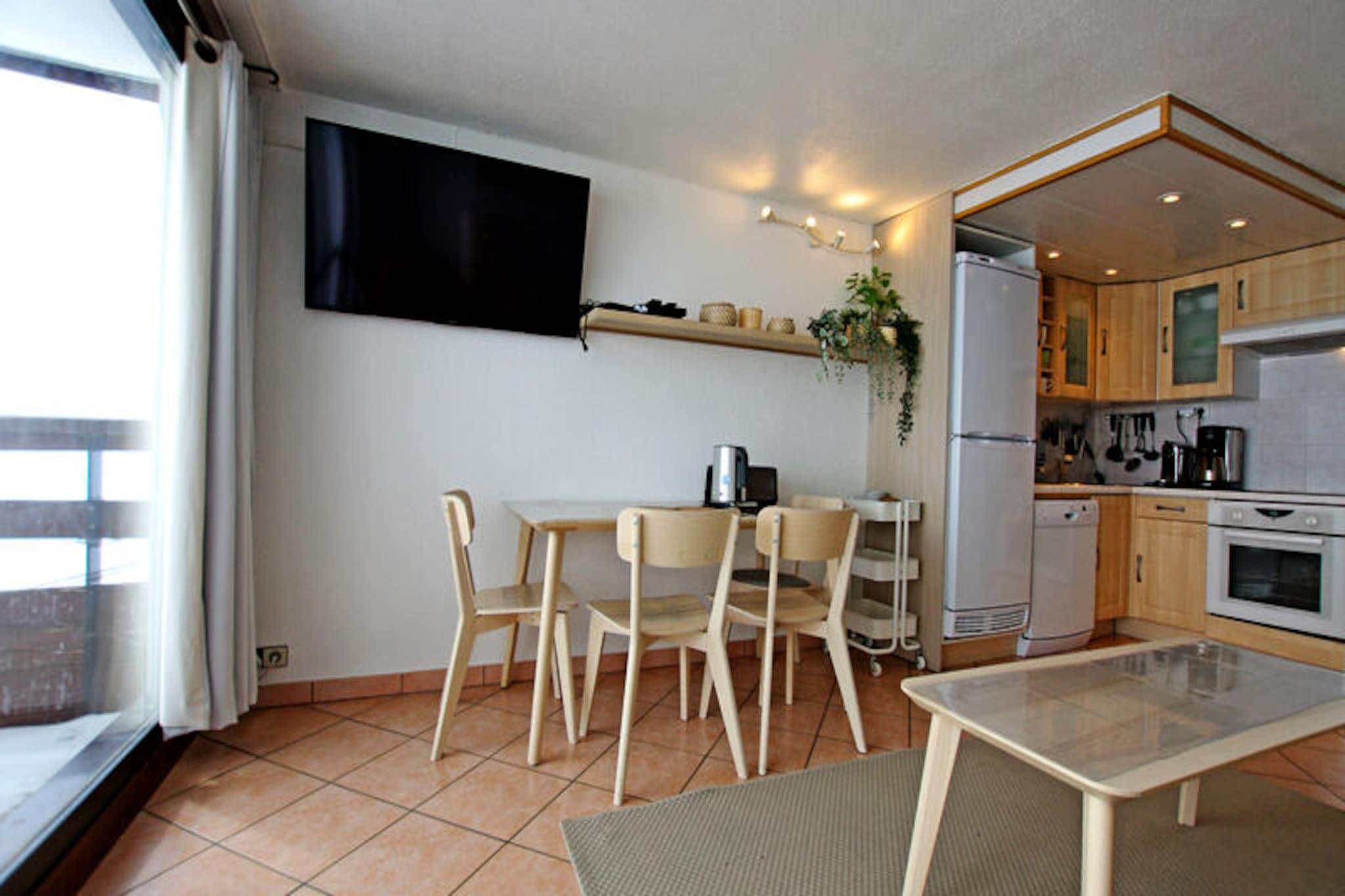 Hoch über dem glitzernden Wasser von Tignes-le-Lac bietet dieses stilvolle Studio die perfekte Kombination aus alpinem Charme und modernem Komfort. Stellen Sie sich vor, wie Sie von Ihrem privaten Balkon aus mit atemberaubendem Blick auf La Grande Motte aufwachen und Ihren Kaffee genießen, während die Sonne über den schneebedeckten Gipfeln aufgeht. Ob Sie zum Skifahren, Wandern oder einfach nur zum Entspannen hier sind – dieses Premium-Studio ist Ihr Tor zur außergewöhnlichen Schönheit der französischen Alpen. Gelegen in der renommierten Residence LE PALAFOUR, genießen Sie direkten Zugang zur Piste und sind nur wenige Schritte vom pulsierenden Herzen von Tignes-le-Lac entfernt. Das liebevoll renovierte Studio bietet bequem Platz für bis zu vier Gäste. Der Eingangsbereich ist mit gemütlichen Etagenbetten ausgestattet, die durch eine Schiebetür vom Wohnbereich abgetrennt sind und so für mehr Privatsphäre sorgen. Das Wohnzimmer verfügt über ein bequemes Schlafsofa, einen Couchtisch und einen Fernseher und bietet einen einladenden Ort zum Entspannen nach einem erlebnisreichen Tag. Die voll ausgestattete Küche umfasst ein Cerankochfeld, einen Elektroherd, einen großen Kühlschrank, eine Mikrowelle und einen Geschirrspüler, sodass die Zubereitung von Mahlzeiten zum Kinderspiel wird. Das Badezimmer ist mit Badewanne, Waschbecken, WC und beheiztem Handtuchhalter ausgestattet und bietet Ihnen höchsten Komfort. Zusätzliche Annehmlichkeiten wie WLAN, eine Waschmaschine und Hotelservices wie Bettwäsche und Handtücher sorgen für einen angenehmen Aufenthalt.\n\nEntdecken Sie die Vorzüge der Residence LE PALAFOUR. Von Sportgeschäften und Skischulen bis hin zu Supermarkt, Bäckerei, Bars und Restaurants – alles, was Sie brauchen, ist in unmittelbarer Nähe. Der Wasserpark LE LAGON ist nur 50 Meter entfernt und bietet Entspannung und Spaß, während der Sport- und Kulturkomplex TIGNESPACE nur 100 Meter von Ihrer Tür entfernt liegt. Ob Sie die Pisten erkunden, die lokale Küche genießen oder das pulsierende Après-Ski-Angebot erleben möchten – diese Lage ist unschlagbar.\n\nWählen Sie dieses Studio für einen unvergesslichen Aufenthalt in den Alpen. Mit seiner erstklassigen Lage, dem atemberaubenden Ausblick und der durchdachten Ausstattung ist es der perfekte Rückzugsort für Paare, Familien oder Freunde, die Abenteuer und Ruhe gleichermaßen suchen.