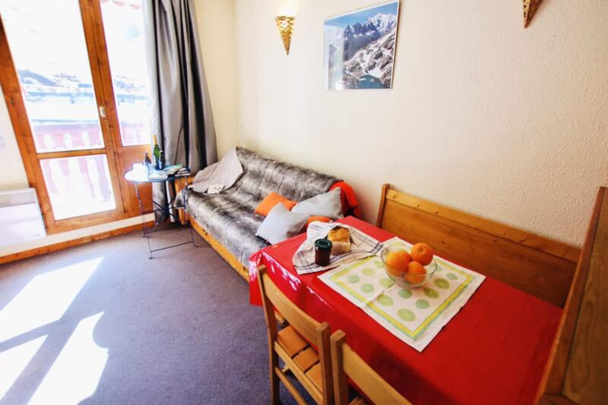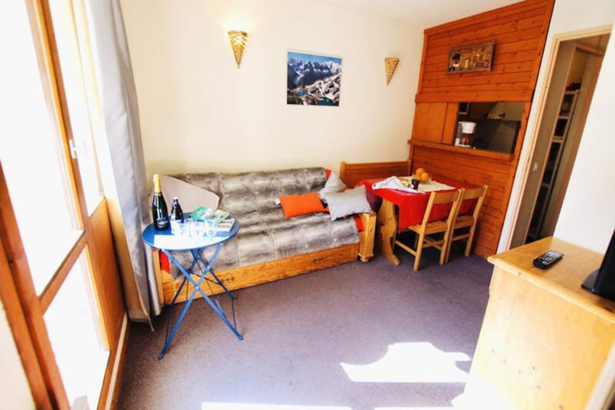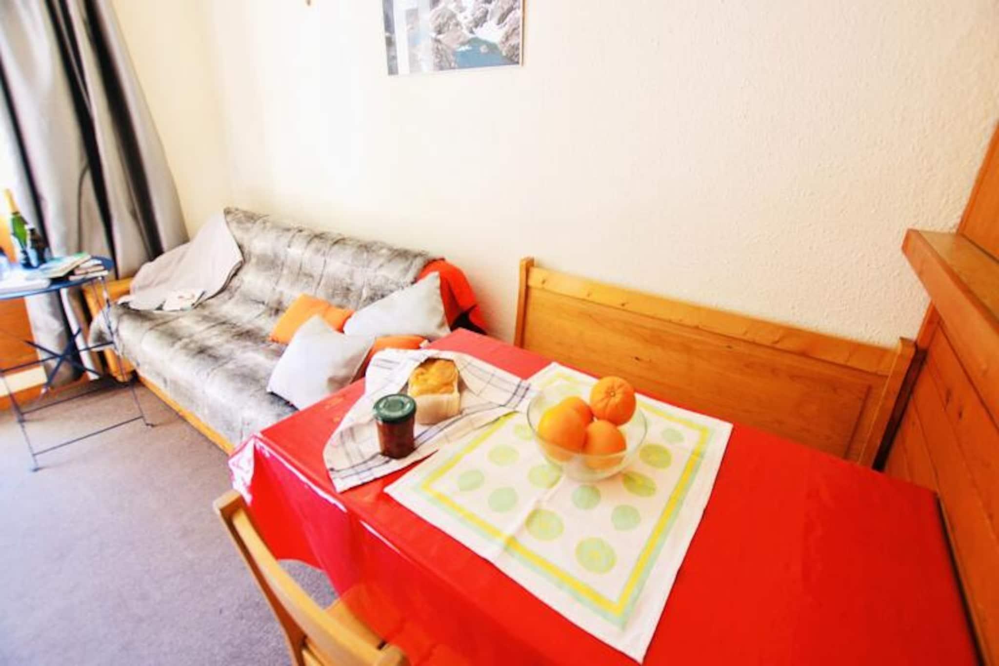Erleben Sie die Faszination der französischen Alpen! Dieses charmante Studio in der Residenz LE ROND POINT DES PISTES bietet Skibegeisterten und Bergfreunden gleichermaßen eine unschlagbare Lage. Nur wenige Schritte von den Pisten und Skiliften entfernt, sorgt dieses gemütliche Refugium dafür, dass Sie Ihr alpines Abenteuer in vollen Zügen genießen können. Geschäfte, Bäckereien und die französische Skischule befinden sich in unmittelbarer Nähe (100 Meter), sodass Sie alles Notwendige bequem erreichen und somit den perfekten Ausgangspunkt für einen unbeschwerten Urlaub haben. \n\nDieses nach Süden ausgerichtete Studio im zweiten Stock ist durchdacht gestaltet und bietet Platz für bis zu vier Gäste. Der Wohnbereich verfügt über ein Ausziehbett, einen Essbereich für vier Personen und einen Fernseher für gemütliche Abende. Eine separate Kabine mit Etagenbetten bietet zusätzliche Schlafmöglichkeiten und ist somit ideal für Familien oder kleine Gruppen. Die voll ausgestattete Küchenzeile mit vier elektrischen Kochplatten, Kühlschrank, Backofen und Geschirrspüler ermöglicht es Ihnen, nach einem Tag auf der Piste leckere Mahlzeiten zuzubereiten. Das Badezimmer ist mit Badewanne und Waschbecken sowie einer separaten Toilette ausgestattet. Treten Sie auf den nach Süden ausgerichteten Balkon und genießen Sie die frische Bergluft und den atemberaubenden Alpenpanorama.\n\nNeben dem Komfort des Studios bietet die Residenz private Skischränke und einen Aufzug, die Ihnen während Ihres gesamten Aufenthalts maximalen Komfort garantieren. In der lebendigen Umgebung der Residenz finden Sie zahlreiche Après-Ski-Möglichkeiten, von gemütlichen Bars bis hin zu charmanten Restaurants mit regionalen Savoyer Spezialitäten. Die nahegelegene Standseilbahn ermöglicht Ihnen zudem einen schnellen und bequemen Zugang zu den weitläufigen Skigebieten und verspricht unzählige Möglichkeiten für Erkundungen und Abenteuer.\n\nOb Sie nun durch unberührten Pulverschnee carven, die kulinarischen Köstlichkeiten der Region genießen oder einfach nur in der ruhigen Alpenatmosphäre entspannen möchten – dieses Studio im LE ROND POINT DES PISTES ist Ihr Tor zu einem unvergesslichen Bergurlaub. Buchen Sie noch heute und schaffen Sie Erinnerungen, die ein Leben lang halten.