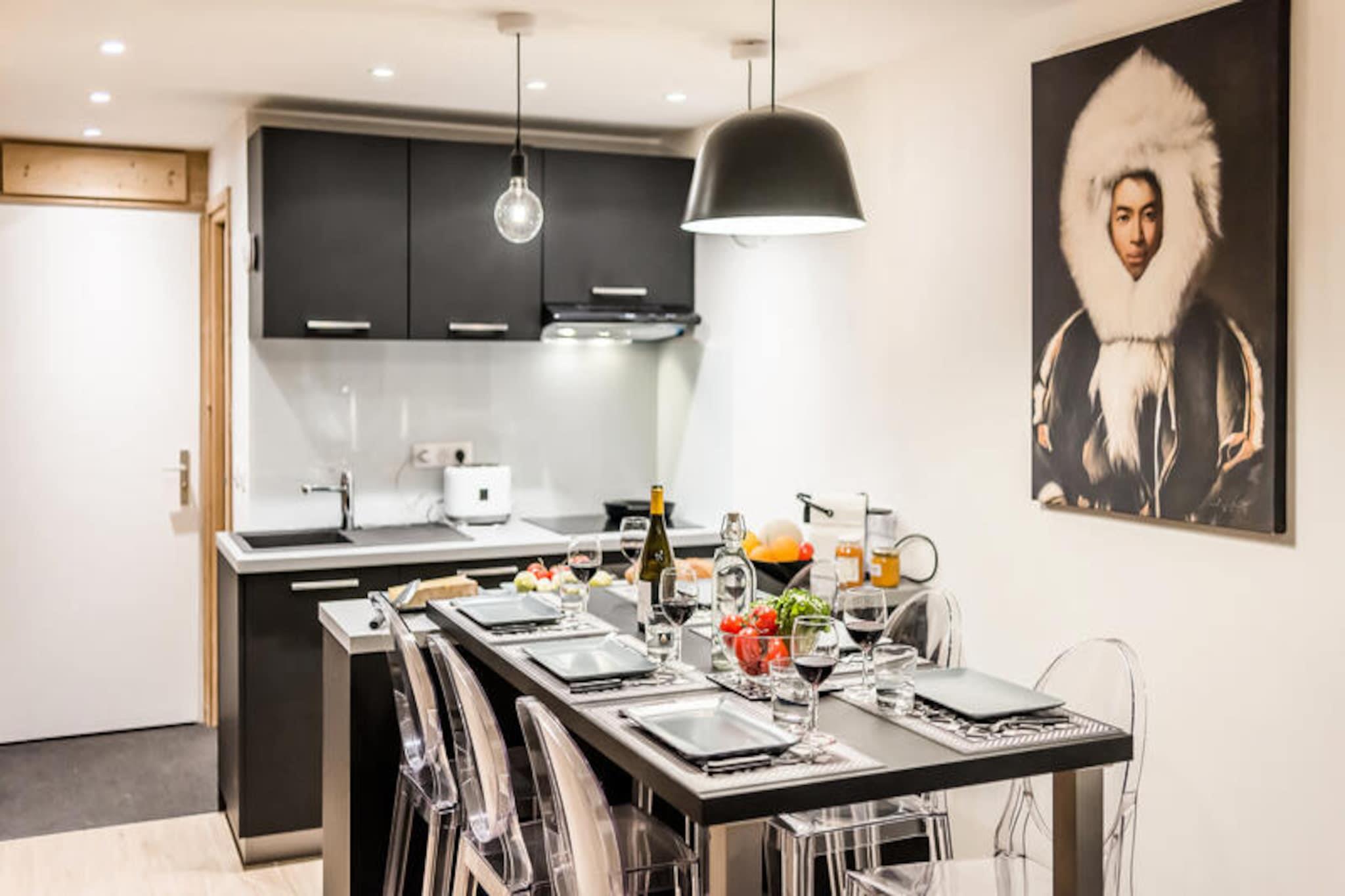 Hoch über den glitzernden Gipfeln der französischen Alpen bietet dieses exklusive 3-Zimmer-Maisonette-Apartment in der Residenz Les Moutières einen unvergesslichen Alpenurlaub in Tignes Val Claret. Auf 2.100 Metern Höhe, nur 250 Meter von den Pisten, der Skischule und allen Annehmlichkeiten entfernt, vereint dieses nach Süden ausgerichtete Refugium modernen Komfort mit atemberaubendem Bergblick und ist somit der perfekte Ort für Wintersportler und Sommerabenteurer gleichermaßen. Stellen Sie sich vor, Sie wachen mit der klaren Bergluft auf, treten auf Ihren privaten Balkon und blicken auf die sonnenbeschienenen Hänge, die nur darauf warten, von Ihnen erkundet zu werden. Das 2018 komplett renovierte, 50 m² große Apartment ist durchdacht gestaltet und bietet Platz für bis zu sieben Gäste. Die erste Ebene verfügt über einen einladenden Eingangsbereich mit Abstellraum, Schuh- und Handschuhwärmern sowie eine voll ausgestattete Küche, die in ein gemütliches Wohnzimmer mit Schlafsofa, Flachbildfernseher und DVD-Player übergeht. Treten Sie hinaus auf den möblierten Balkon und genießen Sie das alpine Ambiente. Im Obergeschoss bieten zwei Schlafzimmer erholsame Rückzugsorte: eines mit drei Einzelbetten (die zu einem Doppel- und einem Einzelbett umgewandelt werden können) und ein weiteres mit einem Doppelbett und eigenem Bad. Ein zweites Badezimmer mit Dusche und WC sorgt für Komfort für alle Gäste. Moderne Annehmlichkeiten wie kostenloses WLAN, eine Waschmaschine und Hotelservices wie Bettwäsche, Handtücher und Endreinigung garantieren einen stressfreien Aufenthalt. Die Les Moutieres Residence verfügt über private Skischränke und einen Aufzug für zusätzlichen Komfort. Abseits der Pisten bietet Tignes Val Claret eine lebendige Après-Ski-Szene, charmante Geschäfte und eine Vielzahl an Restaurants. Im Sommer verwandelt sich die Region in ein Paradies für Wanderer, Mountainbiker und Naturliebhaber mit Wanderwegen, die sich durch atemberaubende Alpenlandschaften schlängeln. Ob Sie durch frischen Pulverschnee carven oder sonnenverwöhnte Gipfel erkunden – dieses Apartment ist Ihr Tor zu den schönsten Seiten der französischen Alpen. Buchen Sie Ihren Aufenthalt und schaffen Sie Erinnerungen, die ein Leben lang halten.