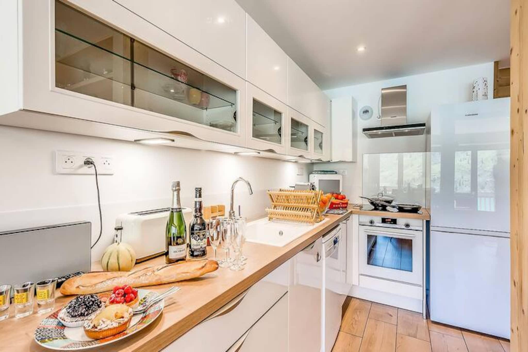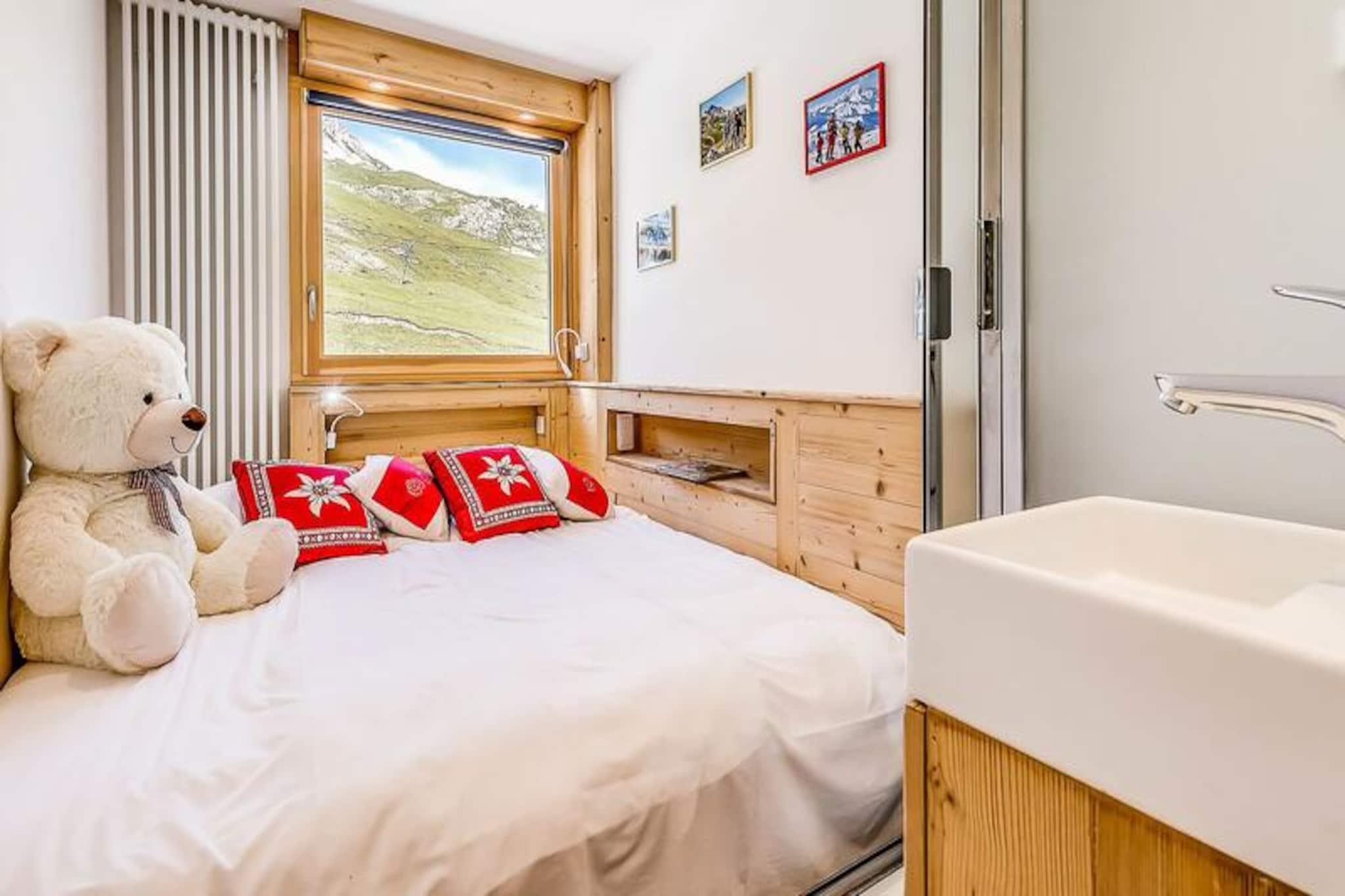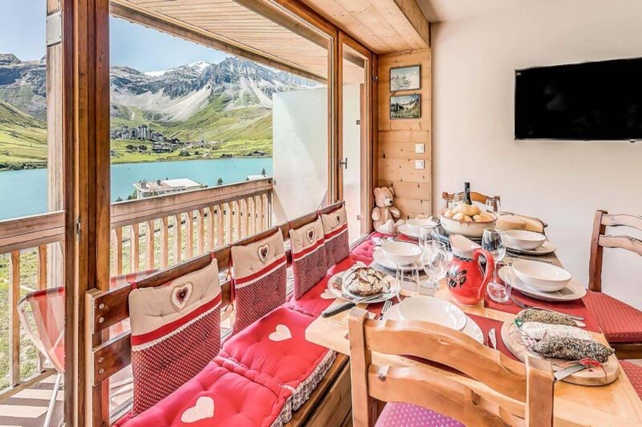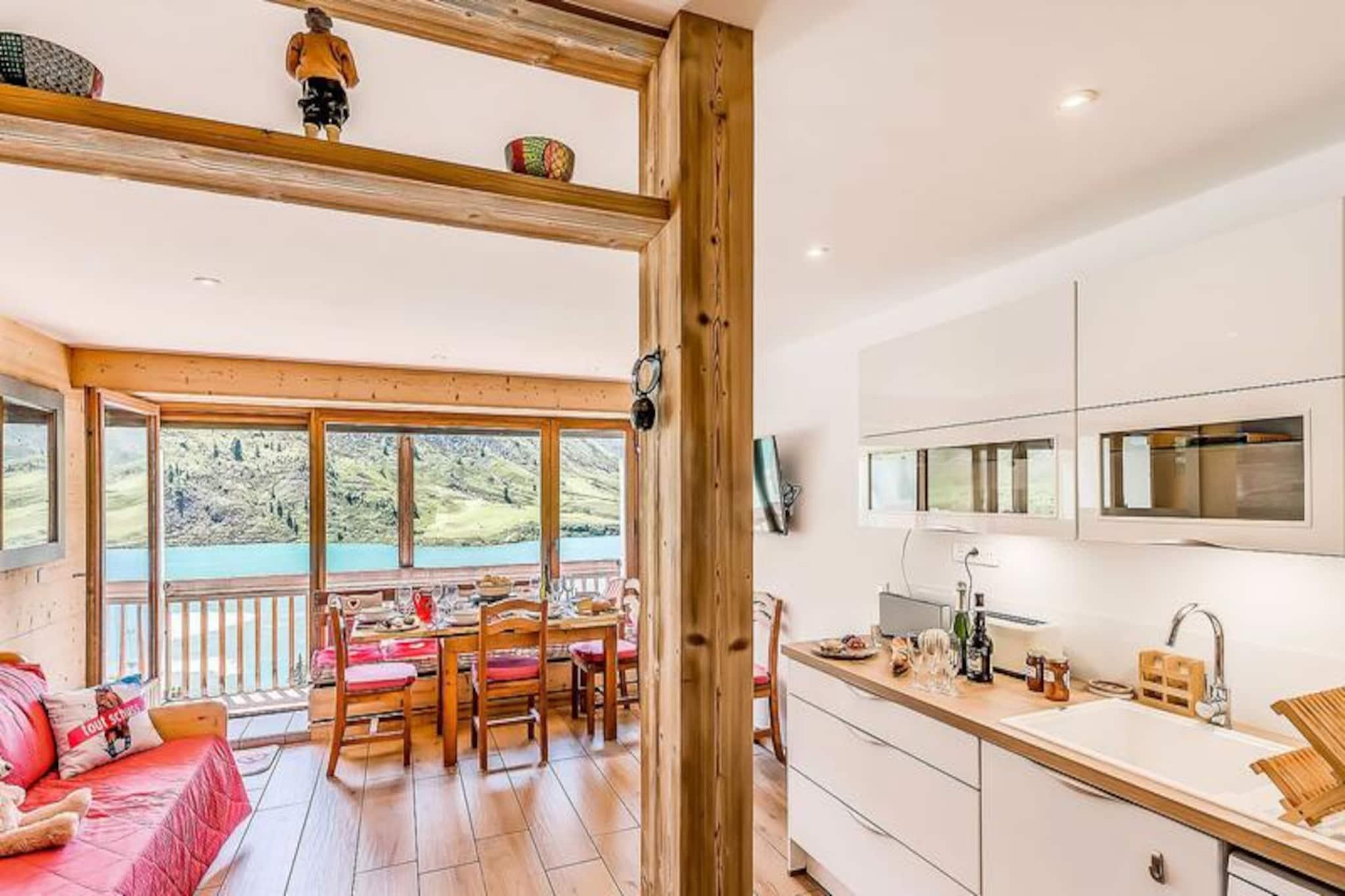 Hoch über dem glitzernden Wasser von Tignes-le-Lac bietet dieses atemberaubende Apartment einen unvergleichlichen Rückzugsort in den Bergen. Mit dem spektakulären Blick auf den Gletscher Grande Motte und das Toviere-Massiv fühlt sich jeder Moment hier wie eine lebendig gewordene Postkarte an. Ob Sie Ihren Morgenkaffee auf dem sonnigen Balkon genießen oder den Sonnenuntergang beobachten, der den See in Gold- und Rosatöne taucht – hier steht die Schönheit der Natur im Mittelpunkt. Gelegen in der Rue de la Poste, nur wenige Schritte von den Pisten und dem pulsierenden Herzen von Tignes-le-Lac entfernt, vereint diese Residenz alpinen Charme mit modernem Komfort. \n\nDas Premium-Apartment mit zwei Schlafzimmern ist ein Meisterwerk an Komfort und Stil und bietet Platz für bis zu sechs Gäste. Es wurde kürzlich renoviert und verfügt über einen hellen, geräumigen Wohnbereich mit Ausziehbett, einem an der Wand montierten Flachbildfernseher und einem Essbereich mit Zugang zum nach Süden ausgerichteten Balkon. Die offene Küche ist mit hochwertigen Geräten wie Geschirrspüler, Backofen, Mikrowelle und Nespresso-Kaffeemaschine ausgestattet und eignet sich perfekt für die Zubereitung herzhafter Mahlzeiten nach einem Tag auf der Piste. Das Hauptschlafzimmer verfügt über ein komfortables Doppelbett und ein eigenes Duschbad, während das zweite Schlafzimmer mit gemütlichen Etagenbetten ausgestattet ist. Zwei Badezimmer, eine Waschmaschine und durchdachte Details wie ein Schuhtrockner und viel Stauraum sorgen für maximalen Komfort. Nur 50 Meter vom Wassersportzentrum LE LAGON und 100 Meter vom Sport- und Kulturkomplex TIGNESPACE entfernt, befindet sich die Unterkunft in unmittelbarer Nähe. Für zusätzlichen Komfort stehen Ihnen private Skischränke und ein Aufzug zur Verfügung. Ob Sie die Pisten hinunterwedeln, die lebhaften Geschäfte und Restaurants der Umgebung erkunden oder einfach nur die idyllische Alpenkulisse genießen möchten – dieses Apartment ist Ihr Tor zu den schönsten Seiten von Tignes-Le-Lac. Bettwäsche, Handtücher und die Endreinigung sind inklusive – Sie brauchen nur noch anzukommen und sich zu entspannen. Dies ist mehr als nur eine Ferienwohnung – es ist Ihr zweites Zuhause im Herzen der französischen Alpen.