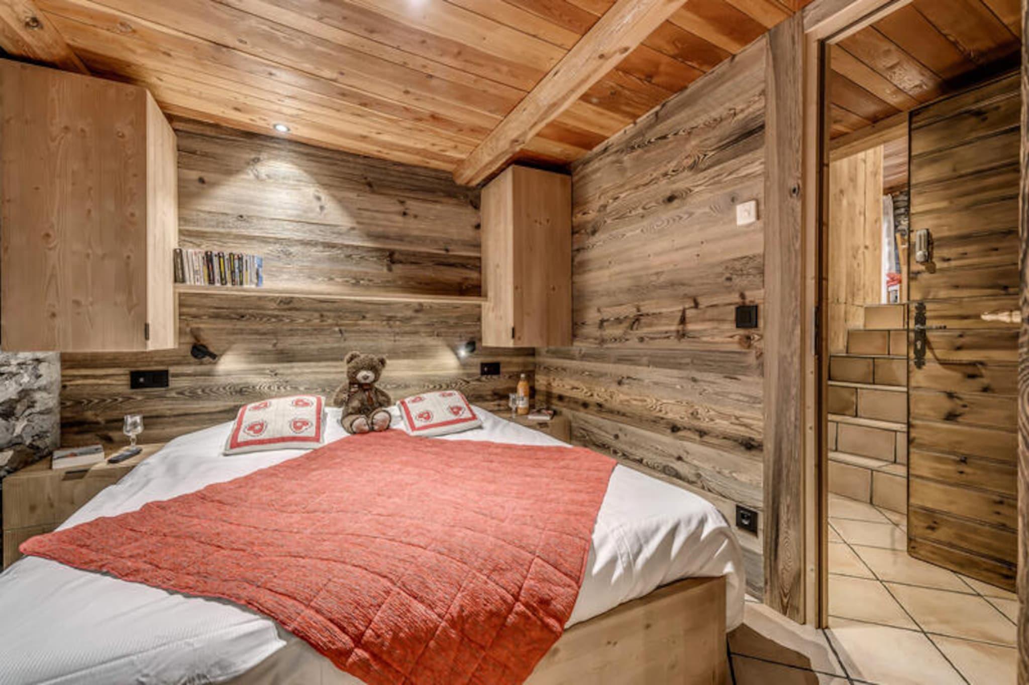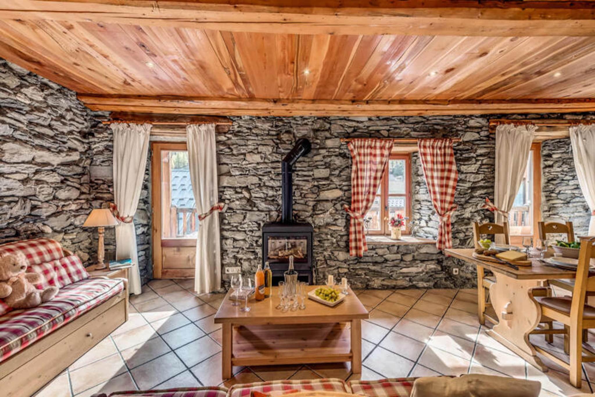 Hoch über dem Tarentaise-Tal, im charmanten Dorf Tignes-les-Brévières, bietet das Chalet Les Champs du Pont einen alpinen Rückzugsort, der Tradition und modernen Komfort vereint. Bekannt für seine sonnigen Pisten und seine einladende Atmosphäre, ist dieses malerische Dorf auf 1650 Metern Höhe Teil des renommierten Skigebiets Tignes-Val d'Isère und lockt Skifahrer aller Könnensstufen mit seinen weitläufigen Pisten und Anfängerhängen. Hier trifft die Schönheit der Berge auf die Herzlichkeit einer engen Gemeinschaft und schafft so den perfekten Rahmen für einen unvergesslichen Urlaub. \n\nDas Apartment Grande Ferme im ersten Stock des Chalets ist eine geräumige Oase für Gruppen bis zu 16 Personen. Mit 205 Quadratmetern Wohnfläche bietet es sieben Schlafzimmer und fünf Badezimmer und garantiert so Komfort und Privatsphäre für alle. Das Wohnzimmer mit gemütlichem Kamin und großen Balkonen lädt zum Entspannen ein und bietet einen atemberaubenden Blick auf die Pisten und die umliegenden Gipfel. Die voll ausgestattete Küche mit zwei Backöfen, einem Weinkeller und modernen Geräten macht die Zubereitung von Mahlzeiten zum Vergnügen. Der Essbereich mit seinen großzügigen Sitzgelegenheiten lädt zum gemeinsamen Essen und Plaudern nach einem Tag auf der Piste ein. \n\nNur 20 Meter entfernt befindet sich die Sache-Seilbahn, die Ihnen einen direkten Zugang zum Skigebiet bietet. Im Dorf selbst finden Sie Skischulen, Geschäfte und das renommierte Restaurant Armailly, das Ihnen sogar einen Lieferservice anbietet. Im Sommer verwandelt sich das Chalet in einen üppigen Rückzugsort mit einem gepflegten Garten und Grillplatz – perfekt, um die Alpensonne zu genießen. \n\nOb Sie aufregende Wintersportarten oder entspannte Sommerwanderungen suchen, das Chalet Les Champs du Pont ist der ideale Ausgangspunkt, um die Wunder der französischen Alpen zu entdecken. Mit atemberaubenden Ausblicken, luxuriöser Ausstattung und dem Charme von Tignes-les-Brévières werden hier unvergessliche Erinnerungen geschaffen.