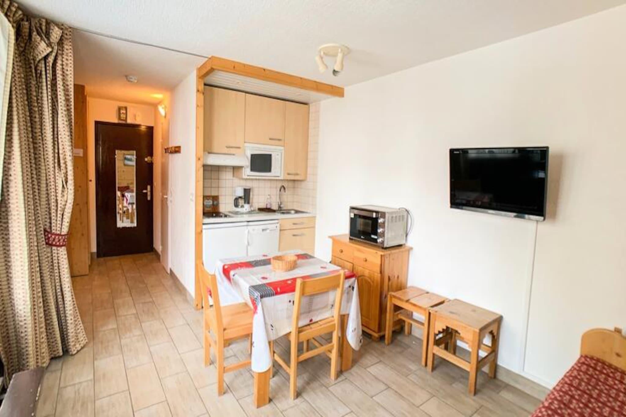 Hoch über den Dächern der Welt, wo die klare Alpenluft Ihre Sinne belebt, liegt die Residenz Platière im pulsierenden Herzen von Tignes Val Claret. Dieses gemütliche Studio bietet den perfekten Rückzugsort für Abenteurer und Erholungssuchende gleichermaßen, denn die Pisten und Skischulen sind nur 150 Meter entfernt. Stellen Sie sich vor, Sie erwachen mit Blick auf die friedliche Schönheit der Berge, treten auf Ihren nach Nordosten ausgerichteten Balkon und planen Ihren Tag inmitten des Charmes dieses lebhaften Alpendorfs. Das kompakte und dennoch durchdacht gestaltete 21 m² große Studio im 5. Stock bietet Platz für bis zu vier Gäste. Der Wohnbereich verfügt über ein bequemes Schlafsofa, während im Eingangsbereich zwei Klappbetten für erholsame Nächte nach aktiven Tagen sorgen. Eine gut ausgestattete Küche mit Grillofen, Mikrowelle, Cerankochfeld und Geschirrspüler lädt zum Zubereiten leckerer Mahlzeiten ein, und das moderne Duschbad bietet zusätzlichen Komfort. Die Residenz verfügt außerdem über einen Skiraum im Erdgeschoss, sodass Sie Ihre Ausrüstung bequem schnappen und direkt auf die Piste gehen können. Am Fuße der Residenz finden Sie alles, was Sie brauchen: Apotheke, Lebensmittelgeschäft, Bäckerei, Skiverleih, Supermärkte, Restaurants und lebhafte Bars. Im Winter locken die Pisten mit ihrem unberührten Schnee, während Ihnen die My Tignes Card im Sommer eine Welt voller Aktivitäten eröffnet – vom Mountainbiken bis zum Paragliding. Die nahegelegenen Skilifte von Tignes und Val d'Isère ermöglichen Ihnen unzählige Erkundungsmöglichkeiten in dieser einzigartigen Region. Ob Sie nun durch den Tiefschnee carven, auf malerischen Wanderwegen wandern oder einfach nur die alpine Atmosphäre genießen möchten – die Residenz Platière bietet Ihnen eine einladende Oase. Buchen Sie jetzt und erleben Sie einen unvergesslichen Aufenthalt im Herzen der französischen Alpen.
