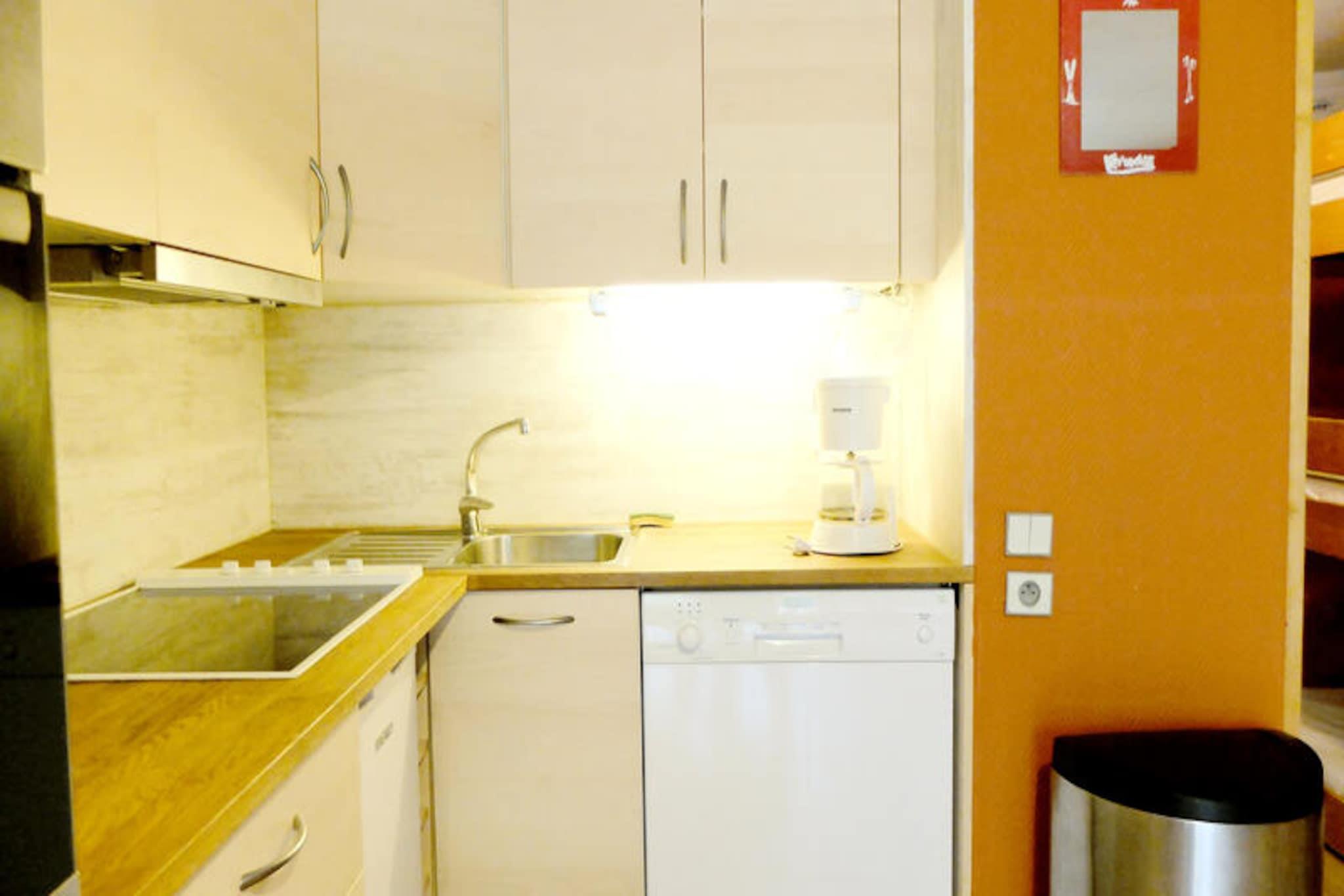 Mitten im pulsierenden Herzen von Tignes-le-Lac bietet dieses charmante Studio-Apartment den perfekten alpinen Rückzugsort für Abenteurer und Erholungssuchende gleichermaßen. Dank der unschlagbaren Ski-in/Ski-out-Lage können Sie direkt von der Unterkunft auf die Piste treten und die weitläufigen Skigebiete von Tignes und Val d'Isère erkunden. Die nach Süden ausgerichtete Terrasse lädt zum Sonnenbaden ein und bietet atemberaubende Ausblicke auf die umliegenden Gipfel – hier wird jeder Moment unvergesslich. \n\nDas 27 m² große Studio ist durchdacht gestaltet und bietet Platz für bis zu vier Gäste. Im Eingangsbereich befindet sich ein Dreibettbett, während das Wohnzimmer mit einem bequemen Schlafsofa und einem Flachbildfernseher für gemütliche Abende ausgestattet ist. Die gut ausgestattete Küche mit Induktionskochfeld, Backofen und Geschirrspüler ermöglicht es Ihnen, nach einem Tag auf der Piste oder beim Wandern köstliche Mahlzeiten zuzubereiten. Ein modernes Badezimmer mit WC sorgt für zusätzlichen Komfort, und der Skischrank im Erdgeschoss stellt sicher, dass Ihre Ausrüstung stets für das nächste Abenteuer bereit ist. Neben der Unterkunft bietet Tignes Le Lac eine Vielzahl an Annehmlichkeiten, von Geschäften und Restaurants über ein Schwimmbad bis hin zu den Abfahrtsstellen der Skischule – alles nur wenige Schritte entfernt. Im Winter profitieren Sie von exklusiven Preisen für Skipässe, und im Sommer ermöglicht Ihnen die My Tignes Card den Zugang zu einer Vielzahl von Aktivitäten, vom Mountainbiken bis zum Stand-Up-Paddling auf dem See. Ob Sie durch Tiefschnee carven oder alpine Wanderwege erkunden – von hier aus sind Sie mittendrin. Wählen Sie dieses gemütliche Refugium wegen seiner unschlagbaren Lage, des modernen Komforts und des ganzjährigen Zugangs zu den Highlights von Tignes. Ob Sie zum Skifahren, Wandern oder einfach nur zum Entspannen hier sind – dieses Studio verspricht einen unvergesslichen Aufenthalt in den französischen Alpen.
