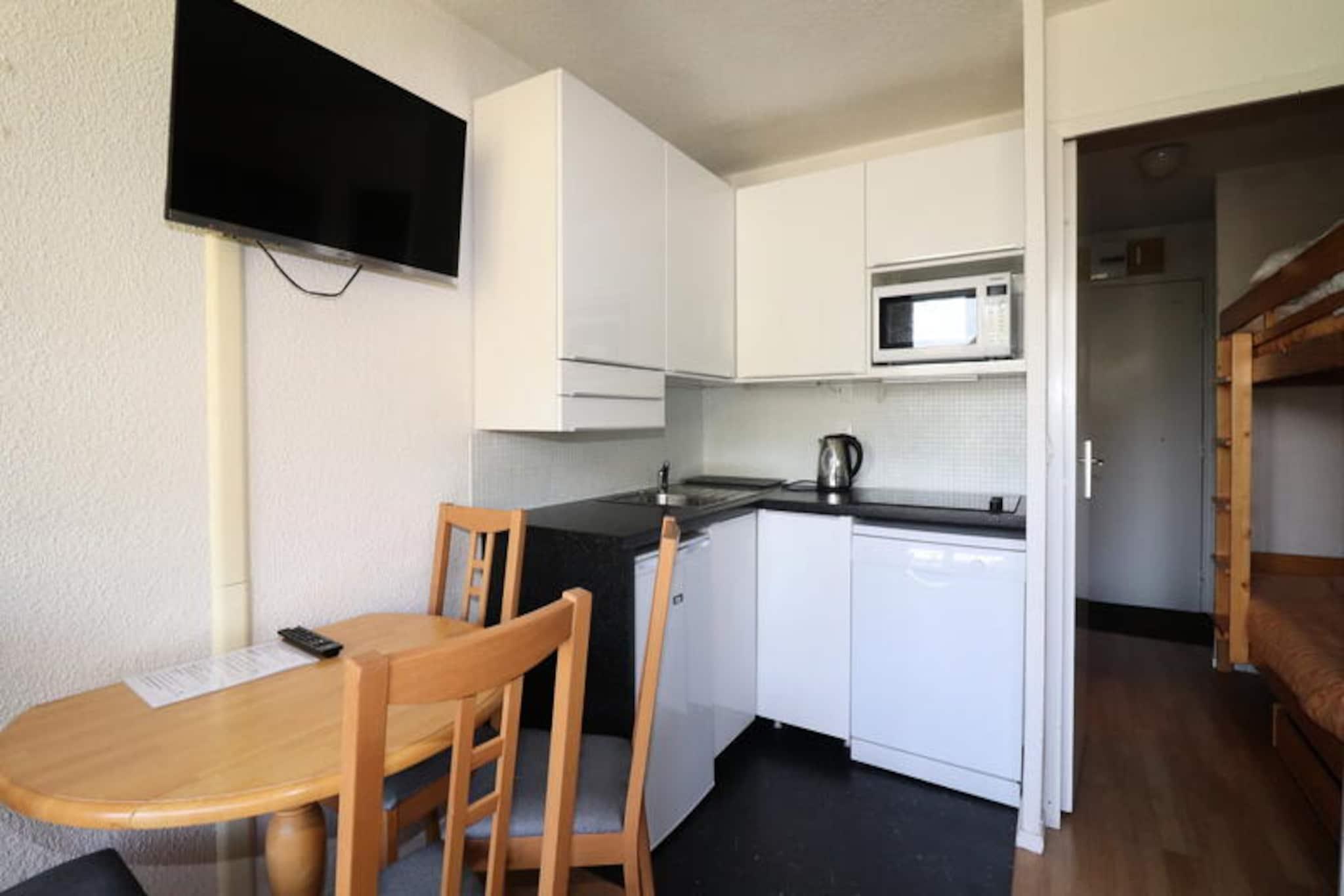 Mitten in Tignes-le-Lavachet bietet dieses gemütliche Studio den perfekten alpinen Rückzugsort für alle, die Abenteuer und Entspannung suchen. Dank der erstklassigen Lage, nur wenige Schritte von den Pisten und Geschäften entfernt, finden Sie alles für einen unvergesslichen Bergurlaub direkt vor der Tür. Ob Sie im Winter durch unberührten Pulverschnee gleiten oder im Sommer die atemberaubenden Wanderwege erkunden möchten – diese Unterkunft bringt Sie mitten hinein. Genießen Sie von Ihrem privaten, nach Norden ausgerichteten Balkon den ruhigen Bergblick und die frische Alpenluft – die ideale Voraussetzung für eine erholsame Auszeit. \n\nDieses 21 m² große Studio ist durchdacht gestaltet und bietet Platz für bis zu vier Gäste. Der Wohnbereich verfügt über ein bequemes Schlafsofa, während die Eingangsnische mit einem Etagenbett ausgestattet ist – perfekt für Familien oder kleine Gruppen. Die Küchenzeile ist modern ausgestattet mit Cerankochfeld, Mikrowelle mit Grillfunktion und Geschirrspüler, sodass Sie Ihre Lieblingsgerichte ganz einfach zubereiten können. Zusätzliche Annehmlichkeiten wie Waschmaschine, WLAN und Fernseher bieten Ihnen den Komfort von zu Hause, während der Skiraum im Erdgeschoss Ihnen bequemen Zugriff auf Ihre Ausrüstung ermöglicht. \n\nTignes Le Lavachet ist ein lebendiger Treffpunkt für Outdoor-Fans. Im Winter profitieren Sie von Vorzugspreisen für Skipässe in Tignes und Val d'Isère und haben so Zugang zu einigen der besten Pisten der Alpen. Im Sommer eröffnet Ihnen die My Tignes Card eine Vielzahl von Aktivitäten, vom Mountainbiken bis zum Stand-Up-Paddling auf dem See. Geschäfte, Restaurants und Après-Ski-Angebote sind nur wenige Schritte entfernt, sodass Sie Ihre Tage so aktiv oder entspannt gestalten können, wie Sie möchten. \n\nOb Sie die Pisten erobern, alpine Wanderwege erkunden oder einfach nur in der atemberaubenden Bergkulisse entspannen möchten – dieses Studio ist der perfekte Ausgangspunkt für einen unvergesslichen Urlaub in Tignes. Buchen Sie jetzt und lassen Sie sich von der Magie der französischen Alpen zu Ihrem nächsten Abenteuer inspirieren.