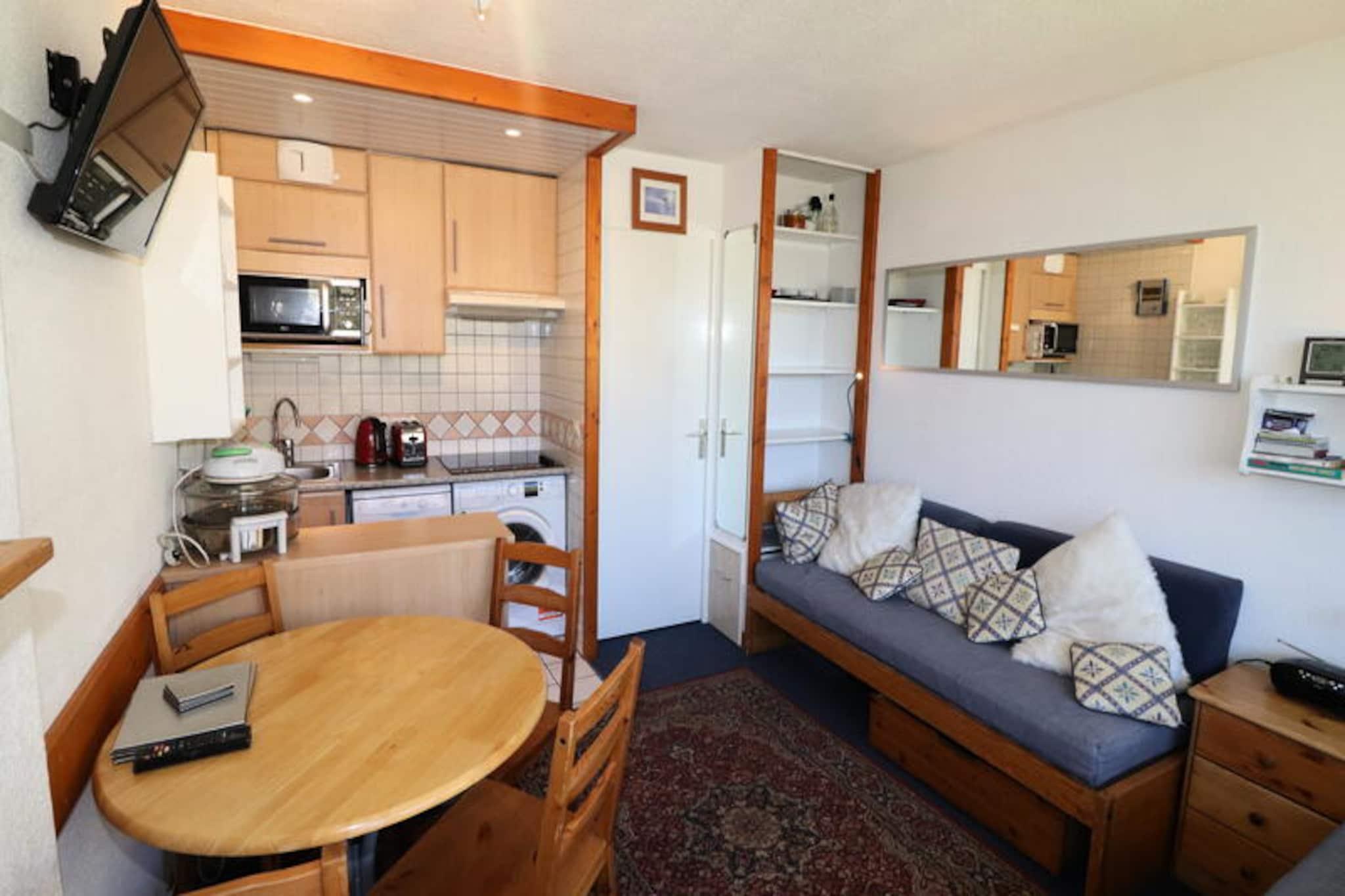 Mitten in Tignes-le-Lavachet bietet dieses gemütliche Studio-Apartment den perfekten alpinen Rückzugsort mit modernem Komfort und direktem Zugang zu den Pisten und allen Annehmlichkeiten des Ortes. Die nach Norden ausgerichtete Unterkunft befindet sich im zweiten Stock der Residenz „Home Club“ und verfügt über einen privaten Balkon mit atemberaubendem Blick auf die umliegenden Berge – ideal für Winter- wie Sommerurlaube. Ob Sie im Tiefschnee die Pisten hinunterziehen oder die vielfältigen Sommeraktivitäten erkunden möchten, hier sind Sie mittendrin. Das 21 m² große Studio ist durchdacht gestaltet und bietet Platz für bis zu vier Gäste. Das Wohnzimmer ist mit zwei bequemen Schlafsofas ausgestattet, während der Eingangsbereich eine gemütliche Nische mit einem Etagenbett bietet – perfekt für einen erholsamen Aufenthalt von Familien oder kleinen Gruppen. Die voll ausgestattete Küche mit Cerankochfeld, Mikrowelle mit Grillfunktion und Geschirrspüler macht die Zubereitung von Mahlzeiten zum Kinderspiel. Zusätzliche Annehmlichkeiten wie WLAN, eine Waschmaschine und ein Skischrank im Erdgeschoss sorgen für einen komfortablen und praktischen Aufenthalt. Treten Sie vor die Tür und schon befinden Sie sich in unmittelbarer Nähe der Pisten, Geschäfte und Restaurants von Tignes-le-Lavachet. Im Winter profitieren Sie von vergünstigten Preisen für die Skilifte von Tignes und Val d'Isère, während Sie im Sommer mit der My Tignes Card Zugang zu einer Vielzahl von Aktivitäten erhalten – vom Mountainbiken bis zum Stand-Up-Paddling. Jede Jahreszeit bietet ein einzigartiges Abenteuer und so viel zu entdecken. Ob Sie aufregende Outdoor-Aktivitäten oder eine Auszeit in den französischen Alpen suchen: Dieses charmante Studio ist der perfekte Ausgangspunkt für unvergessliche Momente in Tignes.