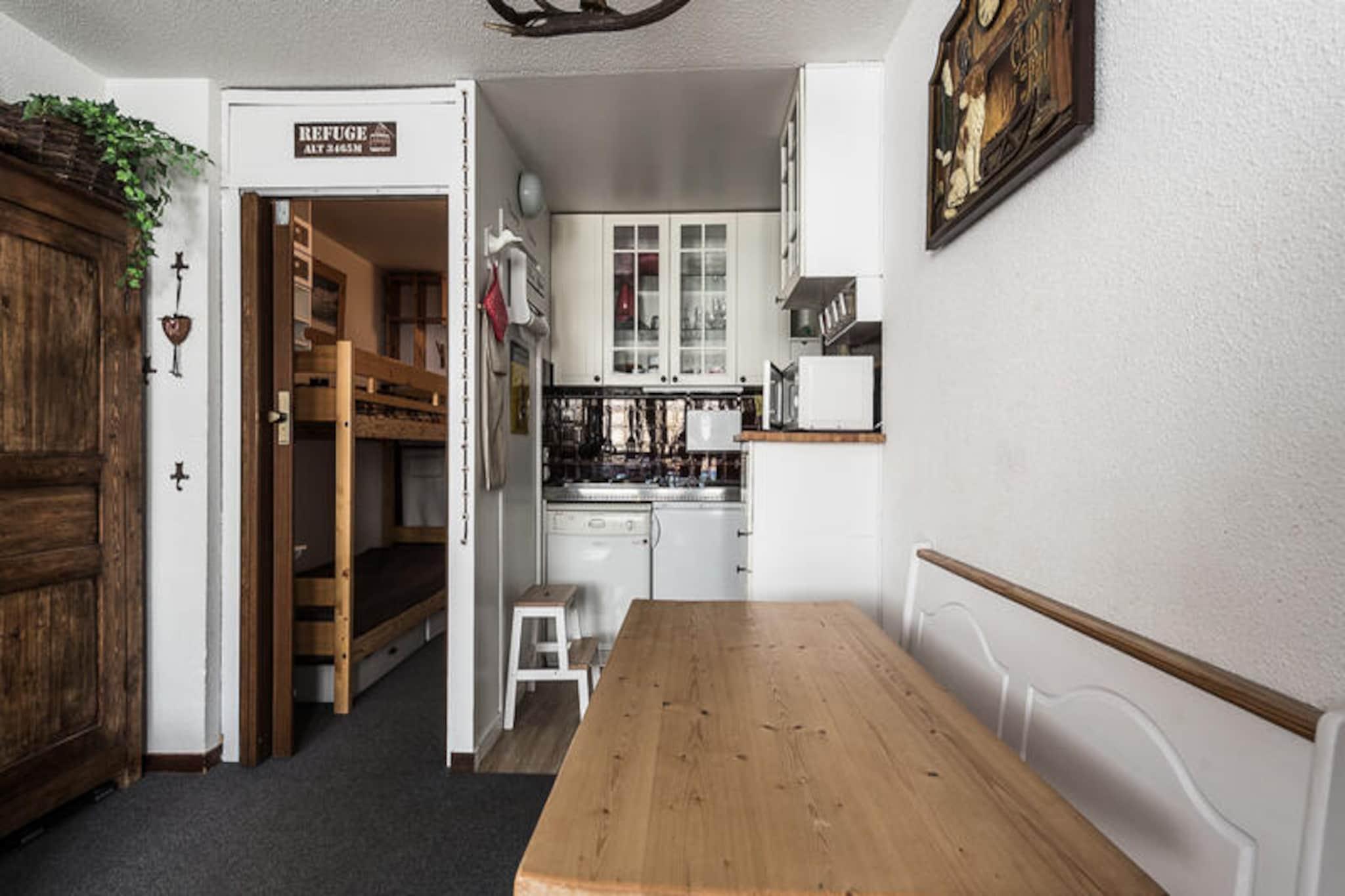 Hoch über dem idyllischen Alpendorf Tignes Val Claret bietet dieses gemütliche Studio-Apartment den perfekten Rückzugsort für Skibegeisterte und Naturliebhaber. Vom Südbalkon aus genießen Sie einen ungestörten Blick auf die verschneiten Pisten und können die Morgensonne genießen, während Sie Ihren Tag im Herzen der französischen Alpen planen. Die Residenz Le Borsat liegt ideal an der Piste, direkt gegenüber dem ESF-Kindergarten und nur wenige Schritte von den Treffpunkten der Skischule entfernt – eine ausgezeichnete Wahl für Familien und Anfänger. Das 25 m² große Studio ist durchdacht gestaltet und bietet Platz für bis zu vier Gäste. Der Wohnbereich mit zwei bequemen Schlafsofas und einem Fernseher lädt zum Entspannen nach einem Tag auf der Piste ein. Eine gemütliche Nische im Eingangsbereich bietet ein Etagenbett – ideal für Kinder oder weitere Gäste. Die Küchenzeile ist komplett ausgestattet mit Elektroherd, Mikrowelle und Geschirrspüler, sodass Sie alles für die Zubereitung leckerer Mahlzeiten haben. Das Badezimmer mit WC sorgt für zusätzlichen Komfort. Für zusätzlichen Komfort bietet die Residenz einen Skiraum im Erdgeschoss und einen Aufzug, der Sie bequem in die Wohnung im vierten Stock bringt. Direkt am Fuße der Residenz finden Sie verschiedene Geschäfte, darunter eine Bäckerei, ein Sportgeschäft und einen Minimarkt. Im Winter genießen Sie direkten Zugang zu den Pisten, während Ihnen die My Tignes Card im Sommer unzählige Outdoor-Aktivitäten eröffnet – vom Wandern und Mountainbiken bis hin zu Wassersport auf dem See. Der lebhafte Ferienort Tignes bietet ganzjährig Unterhaltung mit Aktivitäten und Veranstaltungen für jedes Alter. Ob Sie nun im Tiefschnee Ihre Spuren ziehen, alpine Wanderwege erkunden oder einfach nur die atemberaubende Landschaft genießen möchten – dieses charmante Studio ist Ihr Tor zu einem unvergesslichen Bergurlaub. Buchen Sie jetzt und lassen Sie sich vom Zauber von Tignes Val Claret verzaubern.