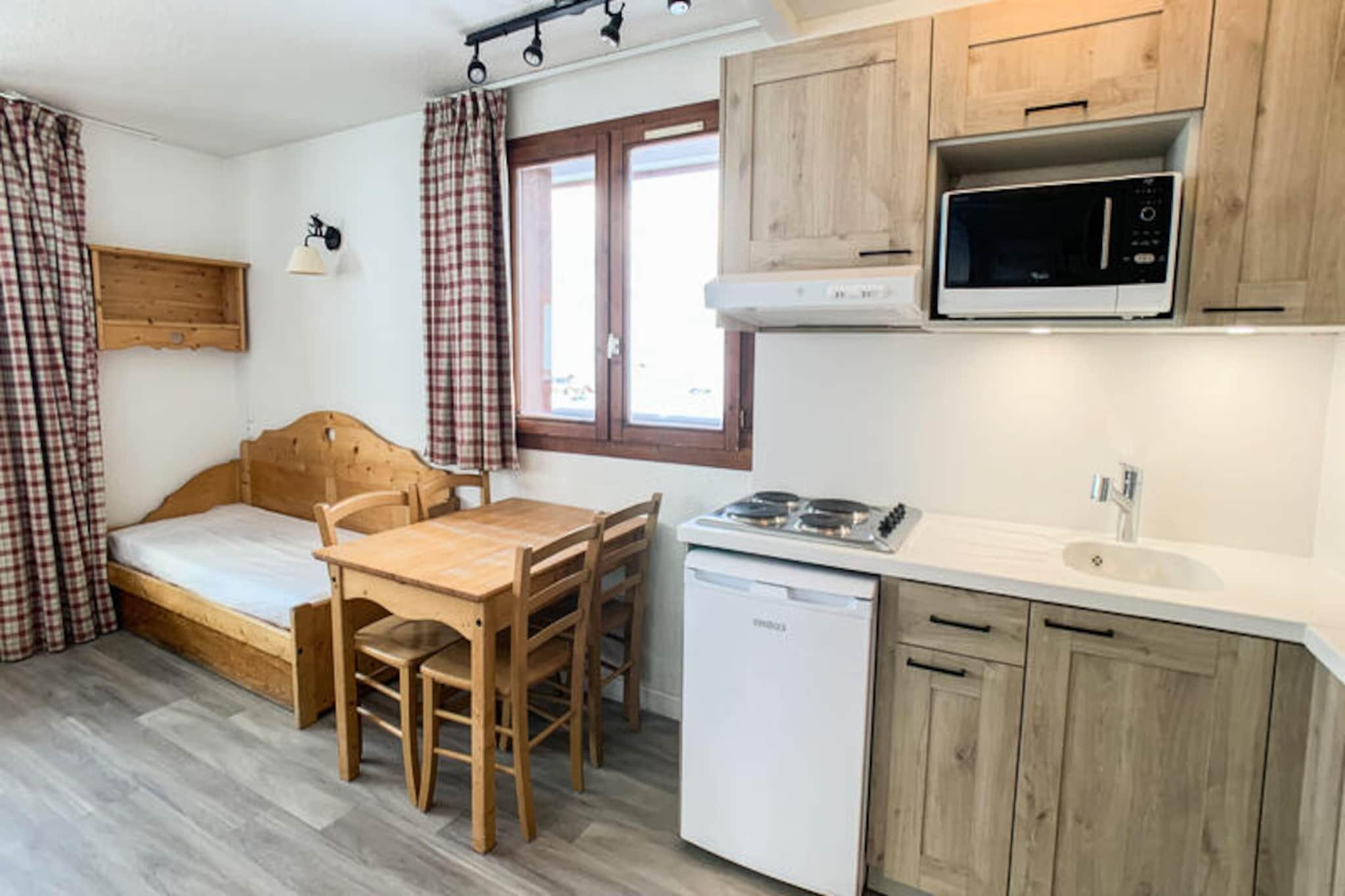Hoch oben im Herzen der französischen Alpen bietet dieses gemütliche Apartment in der Residenz Le Rond Point des Pistes A ein unvergleichliches Ski-in/Ski-out-Erlebnis in Tignes Val Claret. Stellen Sie sich vor, Sie wachen mit der frischen Bergluft auf, treten auf Ihren nach Westen ausgerichteten Balkon und sind nur wenige Meter von der Piste und den Skiliften entfernt. Ob Sie die Pisten hinunterwedeln oder einfach nur die alpine Atmosphäre genießen möchten – dies ist der perfekte Ausgangspunkt für Ihre Abenteuer. Die nahegelegene Standseilbahn bietet bequemen Zugang zum berühmten Gletscher Grande Motte, der sich auf beeindruckende 3.040 Meter erhebt und somit ein Paradies für Wintersportler und Sommerurlauber gleichermaßen ist. Das 30 m² große Apartment ist durchdacht gestaltet und bietet Platz für bis zu sechs Gäste. Es verfügt über eine gut ausgestattete Küche mit Mikrowelle und Elektroherd, ein Wohnzimmer mit Ausziehbett und zwei gemütliche Schlafzimmer im Hüttenstil mit Etagenbetten. Das Badezimmer ist mit einer Badewanne ausgestattet, und das separate WC bietet zusätzlichen Komfort für Gruppen. Nach einem Tag auf der Piste können Sie Ihre Ausrüstung im Skiraum in Gebäude A2 verstauen und im gemütlichen Wohnbereich entspannen. Haustiere sind gegen einen kleinen Aufpreis willkommen – ideal für Familien oder Gruppen mit ihren vierbeinigen Freunden. Die Unterkunft liegt perfekt am Fuße des Skigebiets Tignes Val Claret, umgeben von Restaurants, Bars, Skiverleihen und Supermärkten. Im Winter ist das Parken reglementiert, reservieren Sie daher unbedingt im Voraus. Im Sommer bietet Ihnen die MyTignes-Karte Zugang zu einer Vielzahl von Aktivitäten, vom Mountainbiken bis zum Stand-Up-Paddling. Ob Sie Schnee oder Sonne suchen – dieses Apartment bietet alles für einen unvergesslichen Urlaub in den Alpen. Buchen Sie jetzt und lassen Sie sich vom Zauber von Tignes verzaubern.