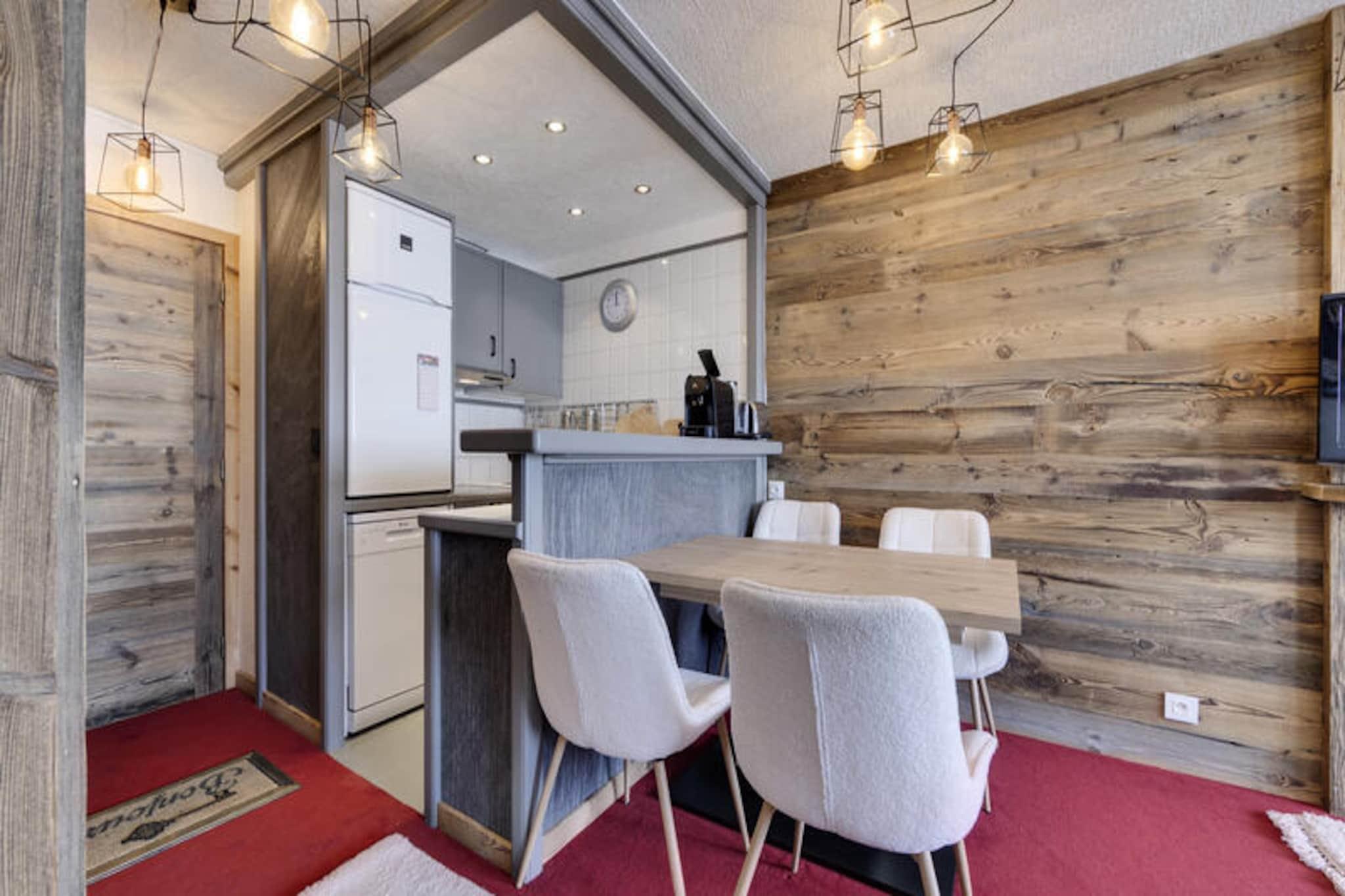 Hoch oben in den französischen Alpen auf 2.100 Metern Höhe bietet dieses charmante Apartment in Tignes-le-Lavachet den perfekten Rückzugsort für alle, die Abenteuer und Ruhe suchen. Schon bei Ihrer Ankunft werden Sie von dem atemberaubenden Bergpanorama und der klaren Alpenluft verzaubert sein und einen unvergesslichen Aufenthalt genießen. Die Unterkunft ist ideal gelegen für Ski-in/Ski-out: Ein Skiabfahrtsweg führt direkt zu den Sesselliften Chaudanne und Paquis und garantiert so einen nahtlosen Einstieg ins Skigebiet. Der kostenlose Shuttle-Service von Tignes bringt Sie bequem in die drei Ortsteile und macht die Erkundung zum Kinderspiel. \n\nDas 41 m² große Apartment ist durchdacht gestaltet und bietet Platz für bis zu vier Gäste. Die offene Küche mit Backofen, Herd und Geschirrspüler lädt dazu ein, nach einem Tag auf der Piste leckere Mahlzeiten zuzubereiten. Vom Wohnzimmer mit gemütlicher Eckcouch und Essbereich gelangen Sie auf einen nach Süden ausgerichteten Balkon, auf dem Sie die Sonne genießen oder im Freien speisen können. Ein separates Schlafzimmer mit Doppelbett und Balkonzugang sowie eine Schlafnische mit Etagenbett sorgen für Komfort für alle. Moderne Annehmlichkeiten wie Waschmaschine, Fernseher und Skischrank erhöhen den Komfort Ihres Aufenthalts. Nur wenige Schritte entfernt finden Sie Geschäfte und Restaurants – ideal, um regionale Spezialitäten zu probieren oder sich mit dem Nötigsten einzudecken. Im Winter profitieren Sie von Vorzugspreisen für die Skipässe von Tignes und Val d'Isère, während Sie im Sommer mit der My Tignes Card unzählige Aktivitäten von Wandern bis Wassersport entdecken können. Ob Skifahren, Wandern oder einfach nur Entspannung inmitten der atemberaubenden Alpenkulisse – dieses Apartment ist Ihr Tor zu den schönsten Seiten von Tignes. Haustiere sind gegen eine geringe Gebühr willkommen, sodass sich die ganze Familie hier wie zu Hause fühlt. Schaffen Sie unvergessliche Erinnerungen in diesem idyllischen Bergrefugium.