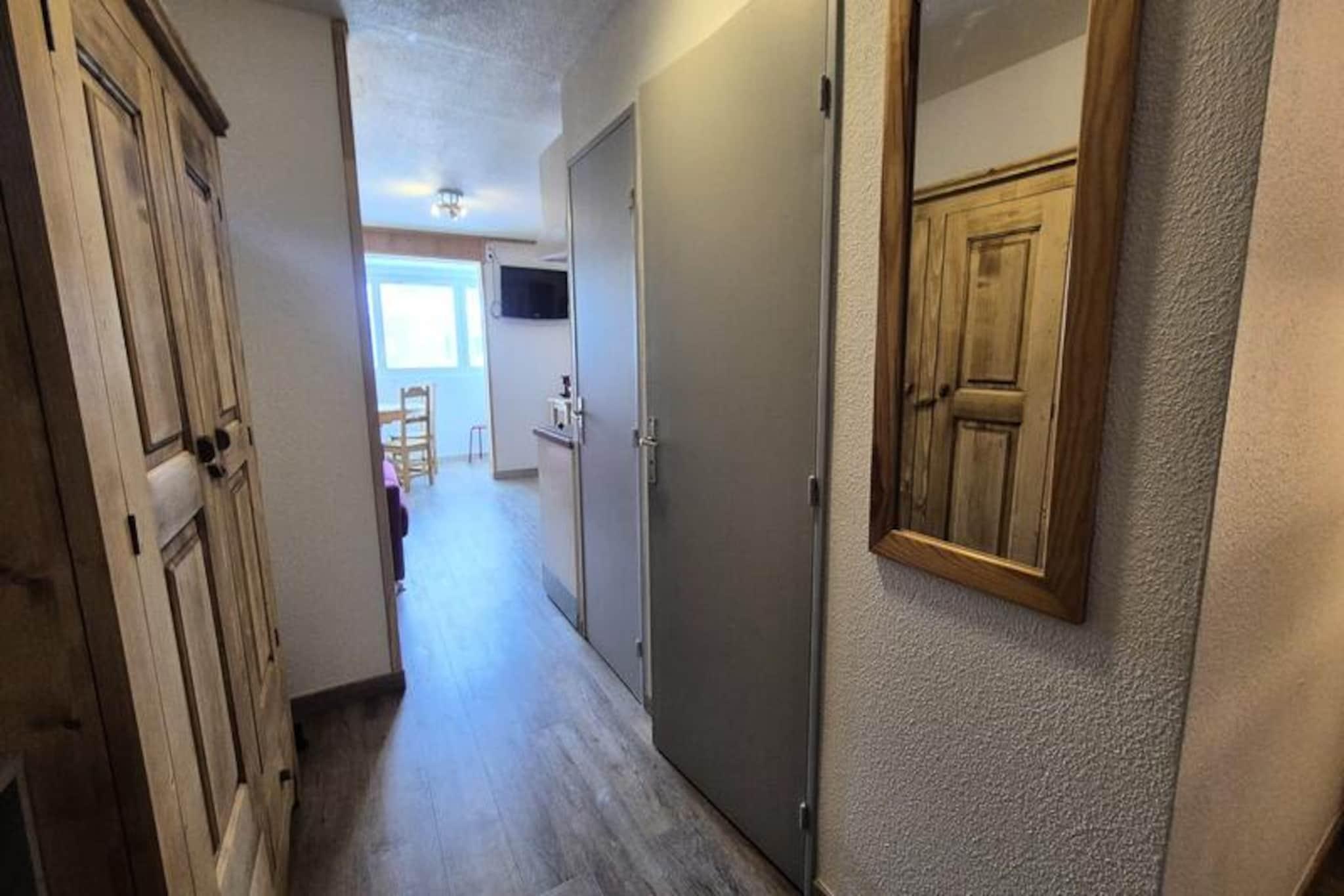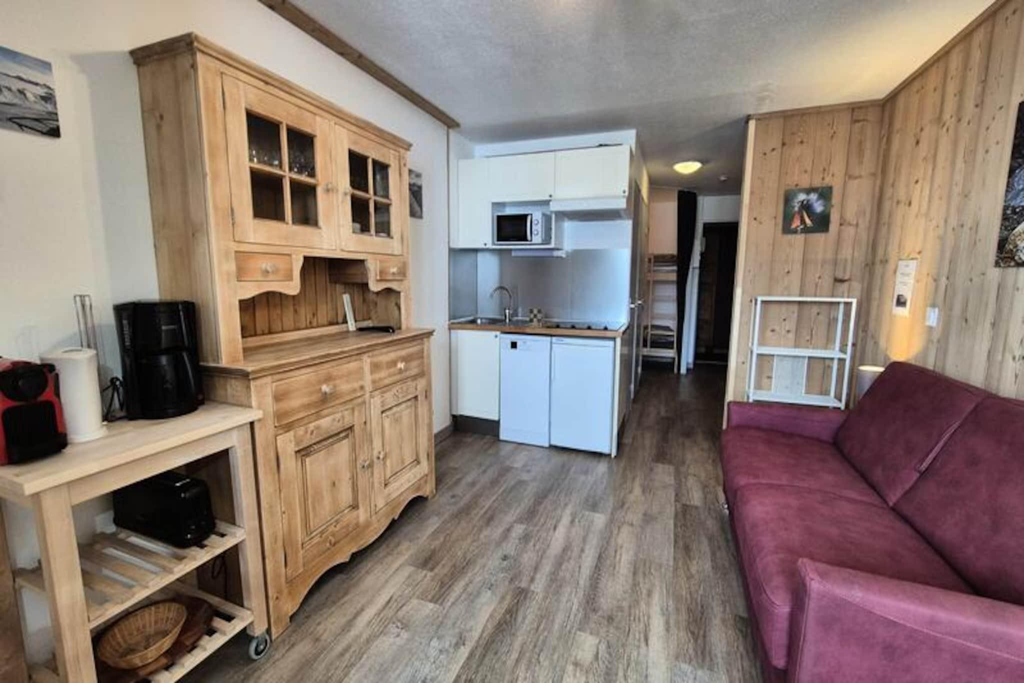 Mitten im Herzen von Tignes Val Claret, wo der alpine Geist das ganze Jahr über spürbar ist, bietet diese charmante Studio-Hütte einen gemütlichen Rückzugsort, nur 50 Meter von den Skipisten und Skischulen entfernt. Stellen Sie sich vor, Sie wachen mit der frischen Bergluft auf und finden alles, was Sie für einen unvergesslichen Urlaub benötigen, in unmittelbarer Nähe. Von lebhaften Geschäften und Bäckereien bis hin zu pulsierenden Restaurants und Après-Ski-Bars – die lebendige Atmosphäre von Val Claret schafft die perfekte Grundlage für Ihr alpines Abenteuer. Ob Sie nun durch unberührten Pulverschnee gleiten oder die Sommerloipen erkunden möchten, dieser Ort ist ideal, um das Beste der französischen Alpen zu genießen. \n\nDiese komplett renovierte, 29 m² große Studio-Hütte ist durchdacht gestaltet und bietet Platz für bis zu vier Gäste. Der nach Süden ausgerichtete Wohnbereich ist lichtdurchflutet und schafft eine warme und einladende Atmosphäre. Das Apartment verfügt über ein komfortables Wohnzimmer mit Schlafsofa und Fernseher, einen Schlafbereich mit Etagenbetten und eine gut ausgestattete Küchenzeile mit Herd, Mikrowelle und Geschirrspüler. Das moderne Badezimmer und das separate WC sorgen für Komfort, während der Skiraum im Erdgeschoss Wintersportbegeisterten zusätzliche Vorteile bietet. Dieses mit 2 Sternen für möblierte Unterkünfte bewertete Nichtraucher-Apartment garantiert einen komfortablen und unkomplizierten Aufenthalt. \n\nTritt vor die Tür und tauche ein in die lebendige Umgebung. Skiverleihe, Supermärkte und sogar Nachtclubs sind nur wenige Schritte entfernt, sodass du nach aufregenden Tagen auf der Piste nahtlos in pulsierende Abende im Dorf übergehen kannst. Im Sommer eröffnet dir die My Tignes Card eine Welt voller Aktivitäten, vom Mountainbiken bis zum Stand-Up-Paddling, sodass jeder Gast sein ganz persönliches Abenteuer findet. \n\nOb du nun actionreiche Tage oder ruhige Abende in den Bergen suchst – diese Studio-Hütte vereint Komfort, Bequemlichkeit und den Zauber von Tignes Val Claret zu einem unvergesslichen alpinen Urlaub.