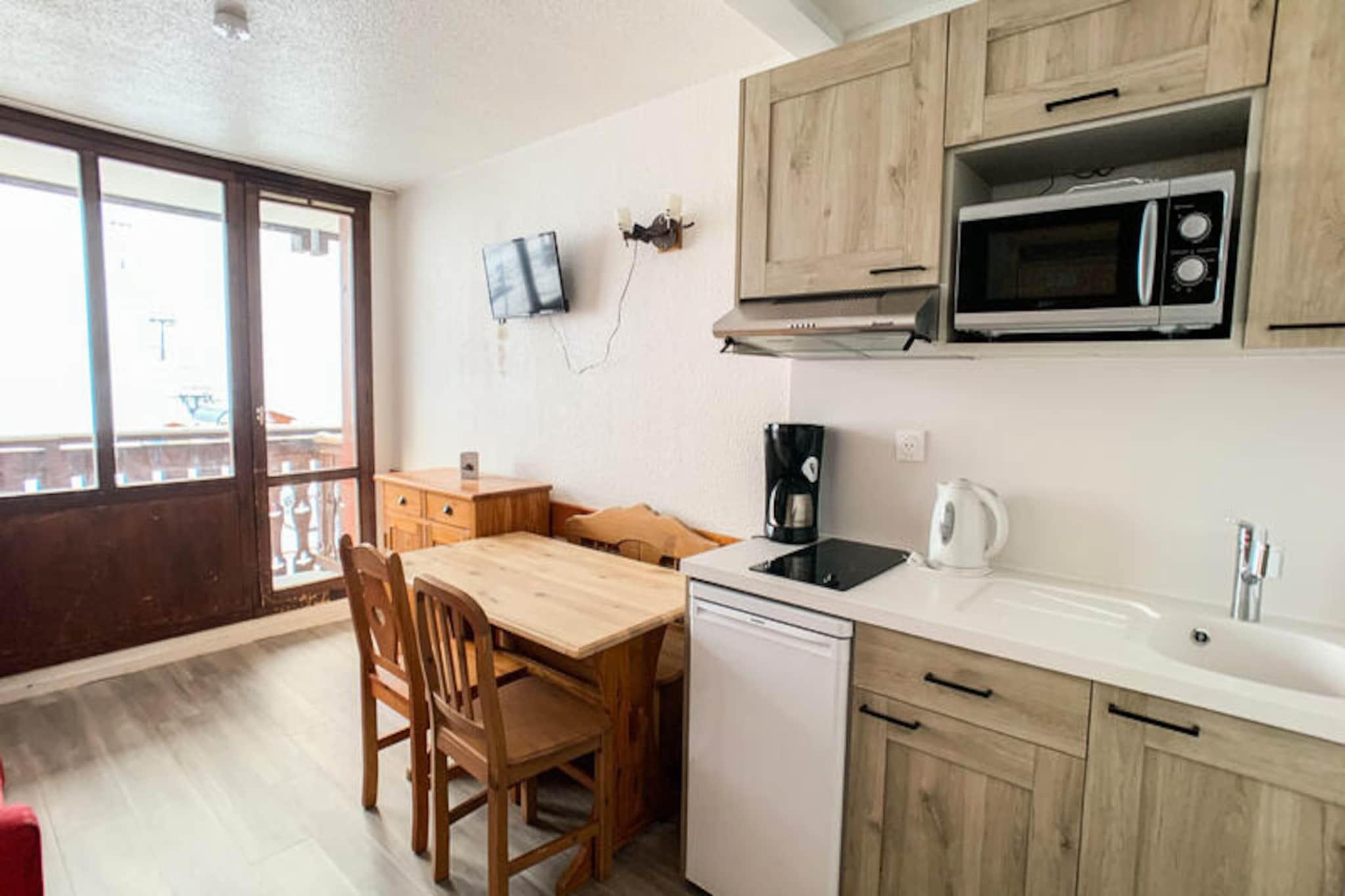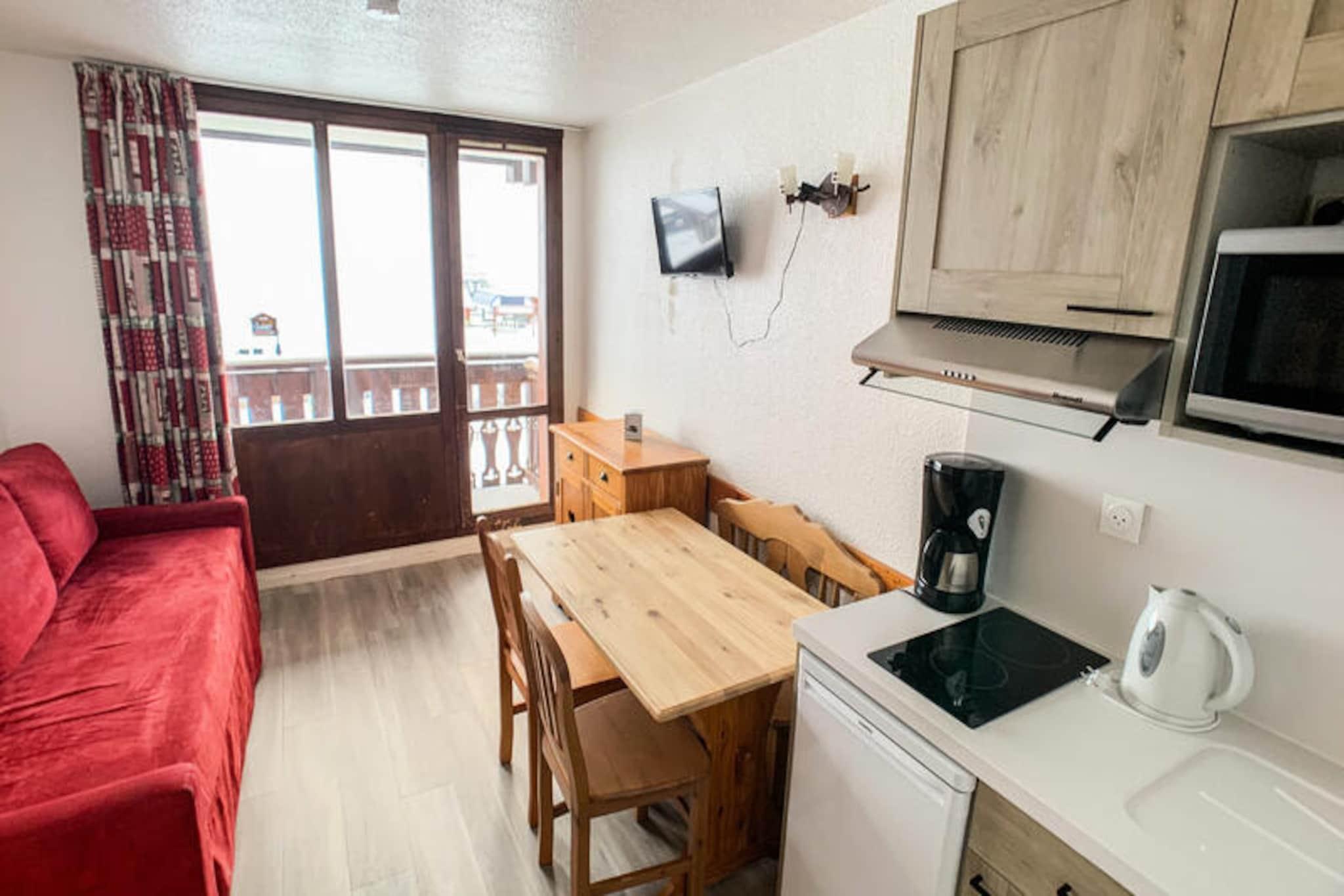 Hoch oben im Herzen von Tignes Val Claret, wo die Alpenluft belebt und die Pisten locken, liegt die Residenz Rond Point des Pistes B. Dieses gemütliche Studio bietet ein nahtloses Ski-in/Ski-out-Erlebnis und befindet sich direkt am Fuße der Standseilbahn, die zum berühmten Grande-Motte-Gletscher auf 3.050 Metern Höhe führt. Stellen Sie sich vor, Sie wachen mit der frischen Bergbrise auf, treten auf Ihren nach Westen ausgerichteten Balkon und genießen den Blick auf die schneebedeckten Gipfel, bevor Sie zu einem erlebnisreichen Tag aufbrechen. Das kompakte und dennoch durchdacht gestaltete 18 m² große Studio bietet Platz für bis zu vier Gäste und ist somit ideal für Paare, kleine Familien oder enge Freunde. Im Eingangsbereich befindet sich ein praktisches Etagenbett, während das Wohnzimmer mit einem bequemen Schlafsofa und einem Fernseher für entspannte Abende ausgestattet ist. Die Küchenzeile verfügt über alle wichtigen Geräte, darunter ein Elektroherd, ein Kühlschrank und eine Mikrowelle, sodass Sie alles für die Zubereitung einfacher Mahlzeiten haben. Ein modernes Duschbad mit WC rundet das Angebot ab, während ein Skischrank im Erdgeschoss Ihren Aufenthalt noch angenehmer macht. Die Unterkunft ist ideal gelegen: Supermarkt, Skiverleih, Skischulen sowie diverse Restaurants und Bars befinden sich in unmittelbarer Nähe. Ob Sie Après-Ski genießen oder sich für einen Tag auf der Piste ausrüsten möchten – alles, was Sie brauchen, ist in greifbarer Nähe. In den Sommermonaten eröffnet Ihnen die My Tignes Card eine Welt voller Aktivitäten, vom Mountainbiken bis zum Stand-Up-Paddling, und garantiert so ganzjährigen Spaß. Mit ihrer unschlagbaren Lage, der Haustierfreundlichkeit und der Ausstattung ist die Unterkunft Rond Point des Pistes B Ihr Tor zum Zauber von Tignes Val Claret. Ob Sie im Winter im Tiefschnee unterwegs sind oder im Sommer die alpinen Pisten erkunden – dieses charmante Studio verspricht unvergessliche Erinnerungen.