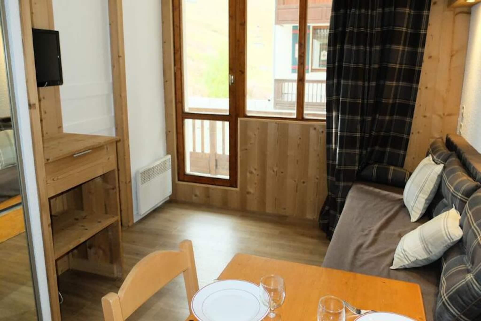Hoch über den glitzernden Gipfeln der französischen Alpen bietet dieses gemütliche Studio-Apartment in Tignes Val Claret ein unvergleichliches Ski-in/Ski-out-Erlebnis. Stellen Sie sich vor, Sie wachen mit der klaren Bergluft auf, treten auf Ihren Südbalkon und genießen den Panoramablick auf die schneebedeckten Hänge. Direkt am Fuße der Standseilbahn zum Grande-Motte-Gletscher auf atemberaubenden 3.050 Metern Höhe gelegen, befindet sich diese Unterkunft mitten im alpinen Abenteuer. Ob Sie Winterspaß pur oder sommerliche Erkundungstouren suchen – die Unterkunft Rond Point des Pistes B ist Ihr Tor zu unvergesslichen Momenten. \n\nDieses 22 m² große Studio-Apartment ist für bis zu vier Gäste ausgelegt und vereint Komfort und Funktionalität. Das Wohnzimmer verfügt über ein Ausziehbett für zwei Einzelbetten, während eine gemütliche Nische mit Etagenbetten zusätzliche Schlafmöglichkeiten bietet. Die Küchenzeile ist mit vier Kochfeldern, einem Backofen, einem Kühlschrank und einem Geschirrspüler ausgestattet, sodass Sie nach einem Tag auf der Piste ganz einfach Mahlzeiten zubereiten können. Ein separates Badezimmer und WC sorgen für Komfort, während der nach Süden ausgerichtete Balkon zum Entspannen und Genießen des alpinen Ambientes einlädt. Für zusätzlichen Komfort steht Ihnen im Erdgeschoss ein Skiraum zur Verfügung, und Haustiere sind gegen einen kleinen Aufpreis willkommen. \n\nTreten Sie vor die Tür und finden Sie alles, was Sie brauchen, in unmittelbarer Nähe. Von Skiverleihen und Skischulen über Supermärkte und Restaurants bis hin zu Après-Ski-Bars – im lebhaften Dorf Tignes Val Claret sind Sie nie weit vom Abenteuer entfernt. Im Sommer eröffnet Ihnen die My Tignes Card eine Welt voller Aktivitäten, vom Mountainbiken bis zum Stand-Up-Paddling auf idyllischen Bergseen. Ob Winter oder Sommer, dieses Reiseziel bietet unzählige Möglichkeiten, Ihre Grenzen zu erweitern und die Schönheit der Berge zu erleben. \n\nOb Sie auf dem Gletscher im Pulverschnee unterwegs sind oder malerische Wanderwege in der Sonne erkunden – diese charmante Studio-Hütte ist der perfekte Ausgangspunkt für eine Auszeit in den Alpen. Buchen Sie jetzt und lassen Sie sich von der Magie von Tignes Val Claret verzaubern und unvergessliche Erinnerungen schaffen.