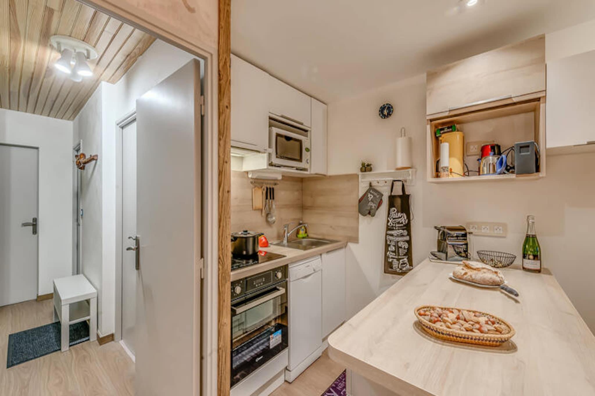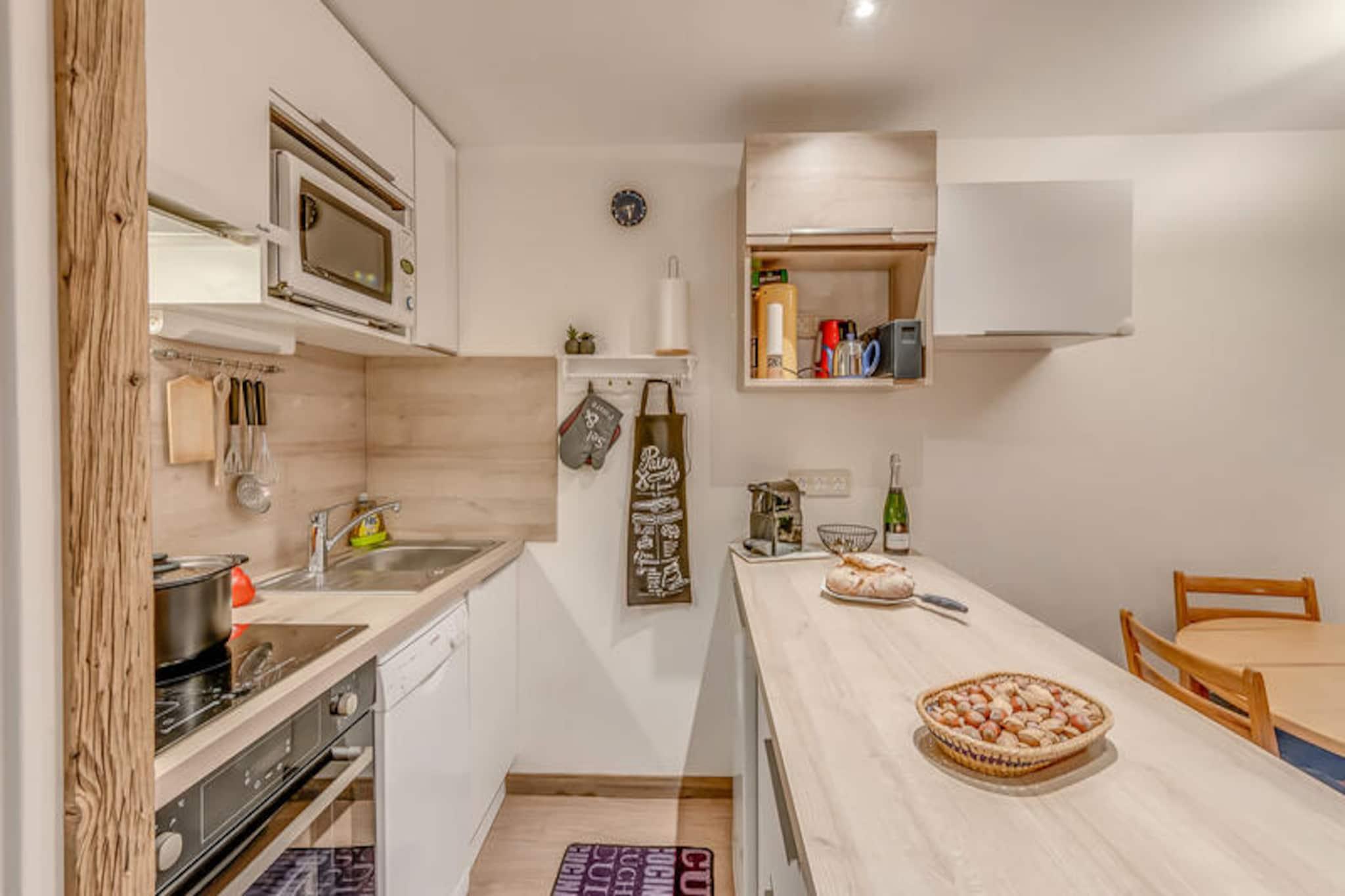 Hoch über den atemberaubenden französischen Alpen, im sonnigen und familienfreundlichen Tignes-le-Lavachet, bietet die Résidence GLACIERS den perfekten alpinen Rückzugsort für Reisende, die Komfort und Bequemlichkeit suchen. Geschäfte wie Supermarkt, Bäckerei und Sportgeschäfte befinden sich nur 20 Meter entfernt, und die Pisten sind nur 50 Meter von der Tür entfernt. So erreichen Sie die Sessellifte Chaudannes und Péquis bequem. Ob Sie aufregende Skiabenteuer oder die Ruhe der Berge genießen möchten – diese charmante Residenz liegt mittendrin. Kostenlose Shuttlebusse bringen Sie in nur fünf Minuten nach Tignes-le-Lac und Tignes Val Claret und machen Ihren Aufenthalt noch angenehmer. \n\nDieses hochwertige 3-Sterne-Apartment im 4. Stock wurde liebevoll renoviert und bietet modernen Komfort. Auf 39 m² bietet es Platz für bis zu fünf Gäste und verfügt über ein gemütliches Schlafzimmer mit einem Doppelbett und einem Einzelbett sowie einen Wohnbereich mit Schlafsofa. Der nach Süden ausgerichtete Balkon lädt zum Genießen der Alpensonne ein, während der nach Norden ausgerichtete Balkon einen ruhigeren Rückzugsort bietet. Die voll ausgestattete Küche mit Herd, Backofen, Kühlschrank und Geschirrspüler macht die Zubereitung von Mahlzeiten zum Vergnügen. Zu den weiteren Annehmlichkeiten gehören ein Badezimmer mit Badewanne, Waschtisch und Waschmaschine sowie ein separates WC und viel Stauraum. \n\nGäste genießen inkludierte Hotelleistungen wie Bettwäsche, Handtücher, Endreinigung (ausgenommen Küche) und WLAN für einen unbeschwerten Aufenthalt. Für zusätzlichen Komfort stehen private Skischränke und ein Aufzug in der Residenz zur Verfügung. Optionale Extras wie Babyausstattung und überdachte Parkplätze können im Voraus reserviert werden. \n\nOb Sie die Pisten erkunden, die lokale Küche genießen oder einfach nur in Ihrem komfortablen Apartment entspannen möchten – die Résidence GLACIERS verspricht einen unvergesslichen Alpenurlaub. Mit atemberaubender Aussicht und der Nähe zu allen Attraktionen von Tignes ist dies der perfekte Ausgangspunkt für Ihre Bergabenteuer.