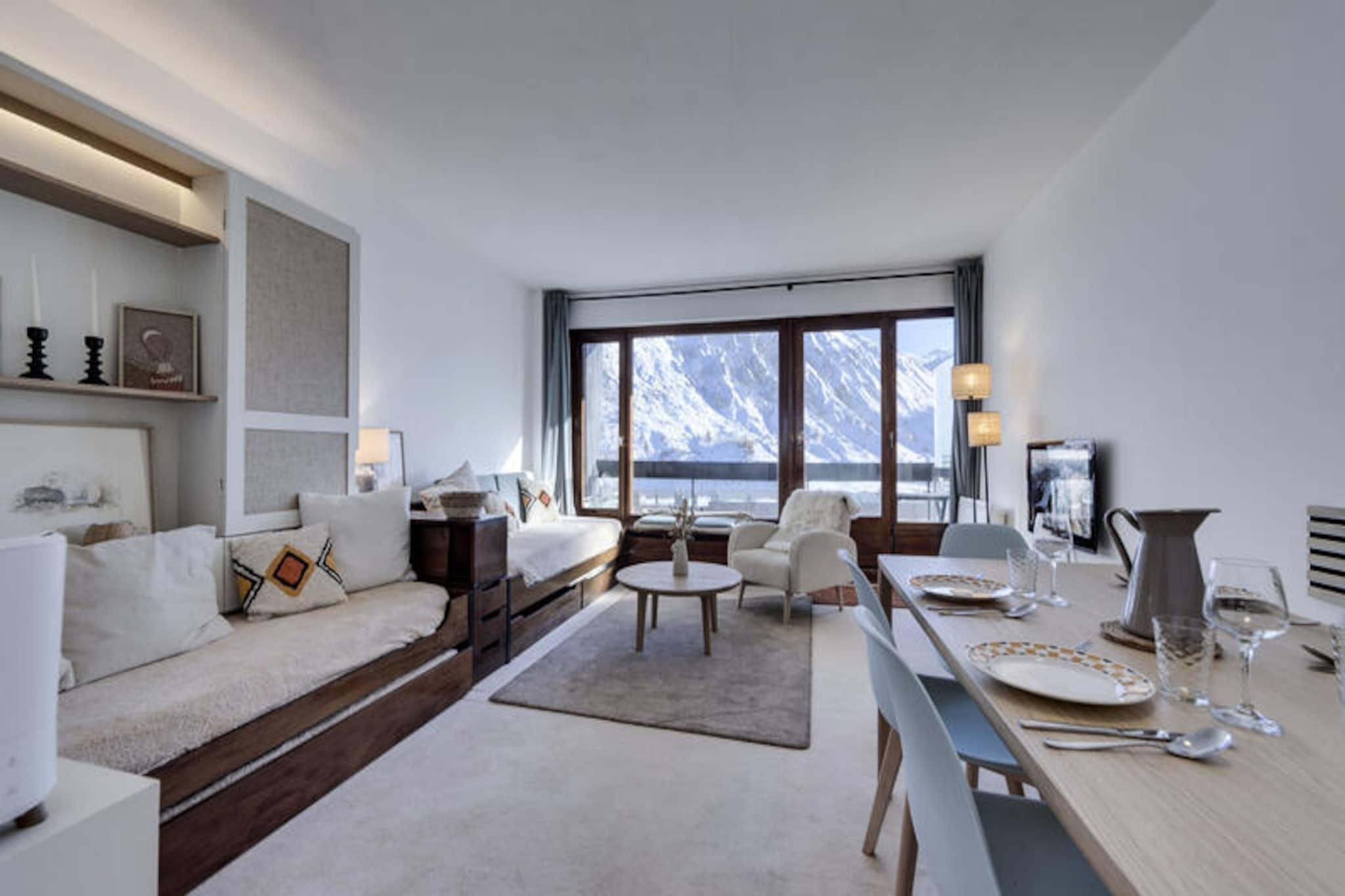 Im Herzen von Tignes-le-Lac, wo der alpine Charme der französischen Alpen auf unvergleichlichen Komfort trifft, bietet das Apartment Bec Rouge 231 einen gemütlichen Rückzugsort für bis zu vier Gäste. Die Unterkunft befindet sich im dritten Stock der begehrten Residenz Bec Rouge und liegt nur wenige Schritte von den Pisten und dem lebhaften Ortskern entfernt. Ob Sie nun durch unberührten Pulverschnee gleiten oder die friedliche Bergkulisse genießen möchten – dieses Apartment verspricht einen unvergesslichen Aufenthalt. Vom Südbalkon aus genießen Sie atemberaubende Ausblicke auf die Tufs, den Gletscher Grande Motte, Palafour und den glitzernden See. Das Apartment ist komfortabel und praktisch eingerichtet und verfügt über eine gut ausgestattete Küche, einen Essbereich, der sich ideal für gemeinsame Mahlzeiten eignet, und einen gemütlichen Wohnbereich mit Fernseher zum Entspannen nach einem erlebnisreichen Tag. Die Schlafmöglichkeiten umfassen ein ruhiges Doppelzimmer und ein charmantes Etagenbett mit Sichtschutzvorhängen und sind somit ideal für Paare, kleine Familien oder enge Freunde. Das moderne Badezimmer und das separate WC sorgen für zusätzlichen Komfort, während die inkludierte Bettwäsche, die Badezimmerartikel und die Endreinigung einen unbeschwerten Aufenthalt garantieren. \n\nTreten Sie vor die Tür und entdecken Sie das Tor zu erstklassigen Skigebieten – die Pisten liegen direkt vor Ihrer Tür. Das lebhafte Dorf bietet eine Vielzahl an Geschäften, Restaurants und Après-Ski-Möglichkeiten und garantiert Unterhaltung für jeden Geschmack. Im Sommer verwandelt sich Tignes in ein Paradies für Wanderer, Mountainbiker und Naturliebhaber. Ob Sie nun den Nervenkitzel der Pisten oder die Ruhe der Berge suchen – das Apartment Bec Rouge 231 ist der perfekte Ort für Ihre alpine Auszeit.