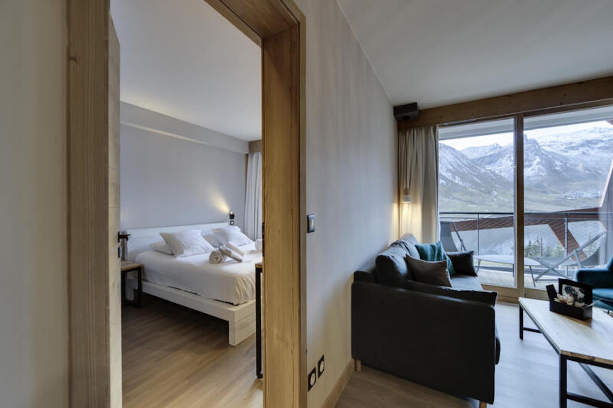 Mitten im lebhaften Ferienort Tignes le Lac bietet dieses wunderschön renovierte Apartment in der Residenz Phoenix einen unvergesslichen Aufenthalt in den Alpen. Mit atemberaubendem Panoramablick auf den ruhigen See und die majestätischen Berggipfel lädt diese Unterkunft dazu ein, in die natürliche Schönheit der französischen Alpen einzutauchen. Ob Sie ein Winterabenteuer zum Skifahren oder einen Sommerurlaub planen – die unschlagbare Lage garantiert Ihnen unvergessliche Momente voller Spannung und Entspannung. Geschäfte, Restaurants und Skipisten befinden sich direkt vor der Tür und machen die Unterkunft zum perfekten Ausgangspunkt, um die Region zu erkunden. \n\nDas Apartment Phoenix 203 bietet Platz für bis zu fünf Gäste und ist ideal für Familien oder kleine Gruppen. Die Südausrichtung sorgt für viel Tageslicht und eine warme, einladende Atmosphäre. Das Apartment verfügt über ein komfortables Schlafzimmer mit Doppelbett, ein gemütliches Zimmer mit Etagenbetten für drei Personen und ein modernes Badezimmer mit Waschmaschinenanschluss. Die voll ausgestattete Küche und der Essbereich laden zum gemeinsamen Kochen und Essen ein, während das Wohnzimmer mit Fernseher nach einem erlebnisreichen Tag zum Entspannen einlädt. Treten Sie auf den Balkon, um die Sonne zu genießen, Ihren Morgenkaffee zu trinken oder einfach die atemberaubende Aussicht von den Liegestühlen aus zu bewundern. \n\nTignes le Lac ist ein Paradies für Outdoor-Fans. Im Winter sind die Weltklasse-Skipisten des Skigebiets Espace Killy nur wenige Schritte entfernt und bieten unzählige Möglichkeiten zum Skifahren und Snowboarden. In den Sommermonaten verwandelt sich die Gegend in ein Paradies zum Wandern, Mountainbiken und für Wassersport auf dem See. Mit Recyclingmöglichkeiten direkt gegenüber der Unterkunft und einer Reihe von Inklusivleistungen wie Bettwäsche, bezogenen Betten bei Ankunft und Endreinigung ist Ihr Aufenthalt so angenehm wie möglich gestaltet. \n\nOb Sie Abenteuer oder Ruhe suchen, das Apartment Phoenix 203 bietet die perfekte Mischung aus Komfort, Bequemlichkeit und alpinem Charme. Schaffen Sie unvergessliche Erinnerungen in diesem idyllischen Bergrefugium.