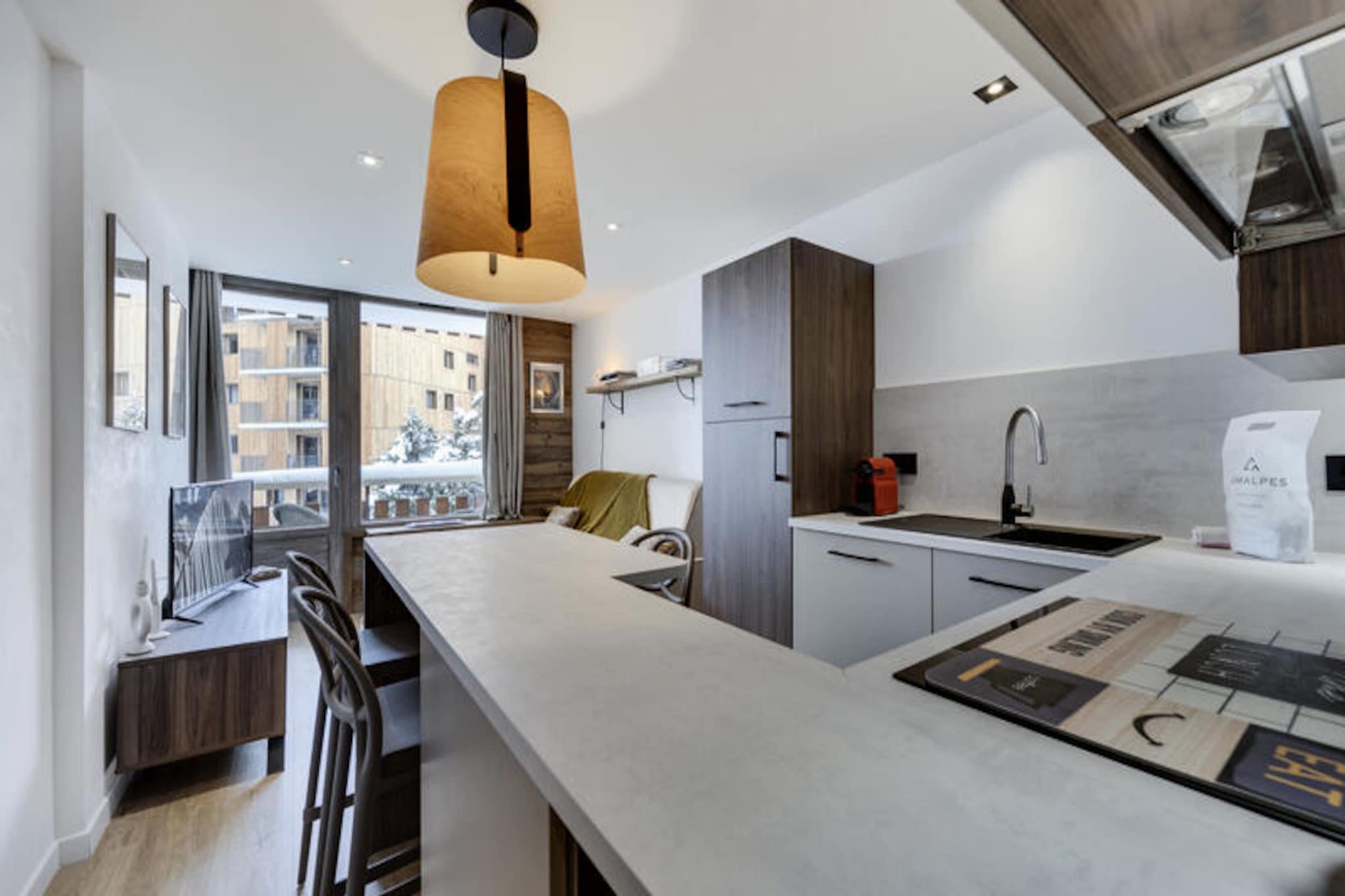 Im Herzen von Tignes-le-Lac, wo alpiner Charme auf den Nervenkitzel der Pisten trifft, bietet dieses frisch renovierte Apartment in der Residenz Le Rosset einen intimen Rückzugsort für bis zu vier Gäste. Stellen Sie sich vor, Sie wachen mit der klaren Bergluft auf, treten auf Ihren privaten Balkon und spüren die lebendige Energie des Ortes nur wenige Schritte entfernt. Ob Sie nun im Tiefschnee Ihre Spuren ziehen oder die Sommerloipen erkunden möchten – von hier aus sind Sie mittendrin. Das Apartment ist durchdacht gestaltet und vereint Komfort und Funktionalität. Der gemütliche Wohnbereich mit Schlafsofa lädt zum Entspannen nach einem aktiven Tag ein, während der Essbereich und die voll ausgestattete Küche zum gemeinsamen Essen und Genießen einladen. Die Schlafnische mit Doppelbett bietet einen ruhigen Rückzugsort, ergänzt durch ein modernes Duschbad und ein separates WC. Jedes Detail, von der Bettwäsche bis zum persönlichen Empfang, ist sorgfältig ausgewählt, um einen reibungslosen Aufenthalt zu gewährleisten. Komfort wird im Le Rosset großgeschrieben. Ein Skischrank im Erdgeschoss macht die Ausrüstung für die Piste kinderleicht, und dank der Nähe zu allen Annehmlichkeiten ist alles Notwendige in Reichweite. Zwar verfügt die Wohnung über keinen Parkplatz, doch die zentrale Lage ermöglicht einen bequemen Zugang zu den lebhaften Geschäften, Restaurants und Après-Ski-Angeboten, die Tignes Le Lac zu einem beliebten Reiseziel machen. Ob Sie nun Abenteuer auf der Piste suchen oder eine ruhige Auszeit inmitten atemberaubender Alpenlandschaft – diese charmante Wohnung ist der perfekte Ausgangspunkt für Ihren Bergurlaub.