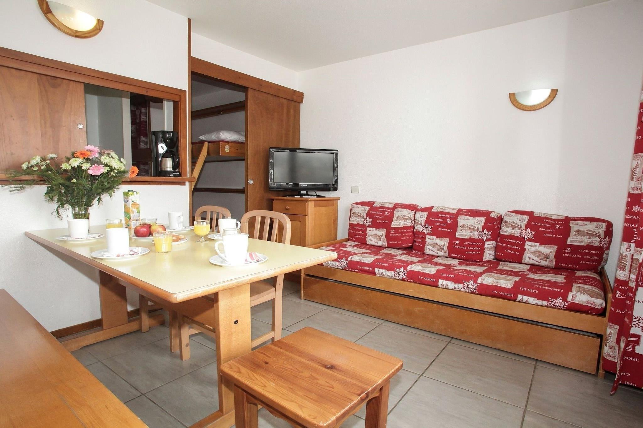 Bergige Schlichtheit mit funktionalem Komfort Entfliehen Sie dem Alltag ins alpine Herz von Tignes mit diesem elegant gestalteten Apartment in der Résidence Le Hameau du Borsat. Perfekt für Familien oder Gruppen von bis zu sechs Personen bietet dieses Chalet-Apartment ein gemütliches Doppelzimmer, ein Etagenbett in einer privaten Schlafkabine und zwei Einzelschlafsofas im Wohnzimmer. Genießen Sie den Komfort einer voll ausgestatteten Küchenzeile, einer entspannenden Badewanne und eines separaten WCs. Die Einrichtung ist schlicht und funktional – ideal für Reisende, die Wert auf Funktionalität und Lage legen. Genießen Sie von Ihrem Balkon oder Ihrer Terrasse die frische Bergluft und die Aussicht. Pfoten im Pulverschnee: Haustierfreundliche Abenteuer Bringen Sie Ihren vierbeinigen Freund mit! Tignes ist ein Paradies für Haustiere und bietet malerische Wanderwege, verschneite Felder zum Toben und im Sommer sogar hundefreundliche Lifte. Beginnen Sie den Tag mit einem ruhigen Morgenspaziergang um den Lac de Tignes oder lassen Sie Ihren Hund direkt vor dem Chalet im Schnee spielen. Viele Cafés in der Umgebung bieten hundefreundliche Terrassen, damit bei heißer Schokolade oder Après-Ski niemand zu kurz kommt. Pistenkomfort trifft auf Savoyer Flair Nur wenige Schritte von den Skiliften, Geschäften und Restaurants von Val Claret entfernt, ist dieses Apartment ein Traum für Skifahrer und Gourmets. Genießen Sie Holzofenpizza im La Pignatta oder einen gemütlichen Snack in Grizzly's Bar, wo Haustiere auf der Terrasse willkommen sind. Ob Sie die Piste unsicher machen oder mit Ihrem vierbeinigen Begleiter entspannen – von hier aus ist alles bequem zu erreichen.