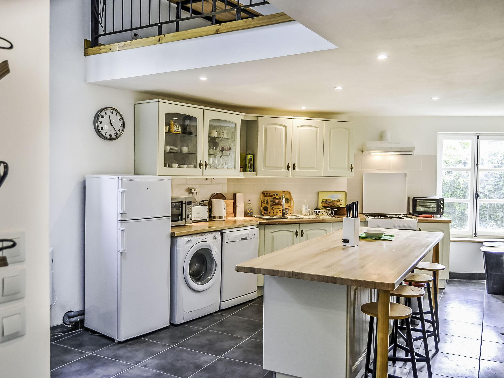 3-Zimmer-Haus 120 m2 auf 2 Stockwerken. Komfortabel und gemütlich eingerichtet: Wohn-/Esszimmer mit TV, Internationale TV-Sender und Holzofen. Ausgang zur Terrasse. Offene Küche (4 Kochplatten, Backofen, Geschirrspüler, Mikrowelle, Tiefkühler, elektrische Kaffeemaschine, Kochinsel). Sep. WC. Obergeschoss: Galerie mit 1 Bett (90 cm, Länge 190 cm). 1 Zimmer mit 1 franz. Bett (140 cm, Länge 190 cm). 1 Zimmer mit 1 franz. Bett (140 cm, Länge 190 cm). Ausgang zum Balkon. Dusche/WC. E-Heizung. Terrasse 8 m2. Terrassenmöbel, Gartengrill. Zur Verfügung: Waschmaschine. Internet (Wireless LAN, gratis). Bitte beachten: Nichtraucher-Haus. Rauchmelder. Anstelle eines abgeschlossenen Schlafzimmers befinden sich manche Schlafplätze in einem offenen Bereich (Galerie, Nische etc.).