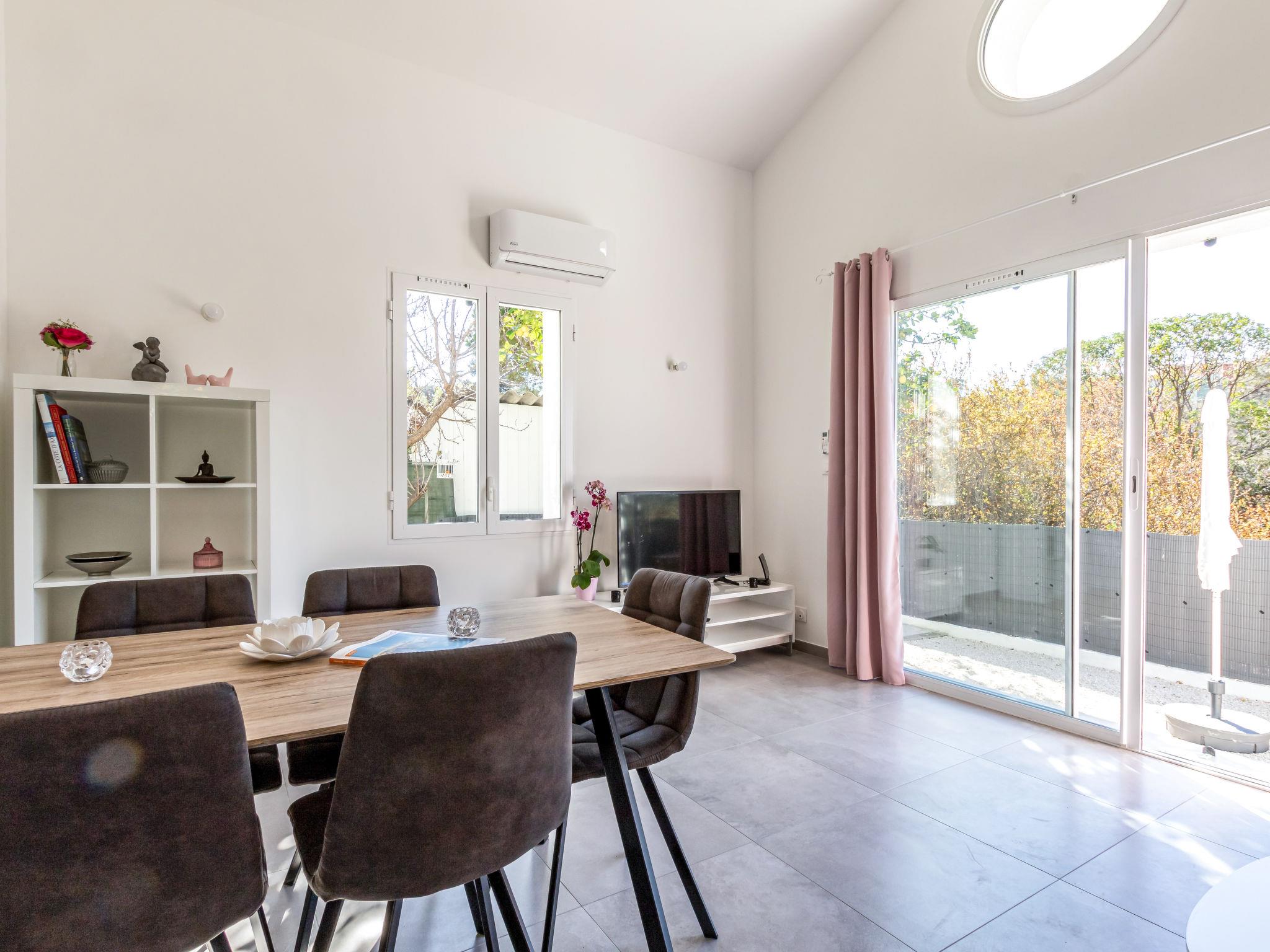 3-Zimmer-Villa 61 m2. Hell, schön und modern eingerichtet: Wohn-/Esszimmer mit TV (Flachbildschirm). Ausgang zur Terrasse. 2 Zimmer, jedes Zimmer mit 1 franz. Bett (140 cm, Länge 190 cm). Kochnische (Backofen, Geschirrspüler, 3 Induktionskochplatten, Mikrowelle, Tiefkühler, elektrische Kaffeemaschine). Dusche, sep. WC, Doppelwaschbecken. E-Heizung, Klimaanlage. Grosse Terrasse. Terrassenmöbel, Elektrogrill, Liegestühle (2). Zur Verfügung: Waschmaschine, Safe, Bügeleisen. Internet (WLAN, gratis). Bitte beachten: Nichtraucher-Haus. TV nur FR. Rauchmelder. Inserat einer Privatperson nach Artikel 155, IV, CGI. FR8370.117.1