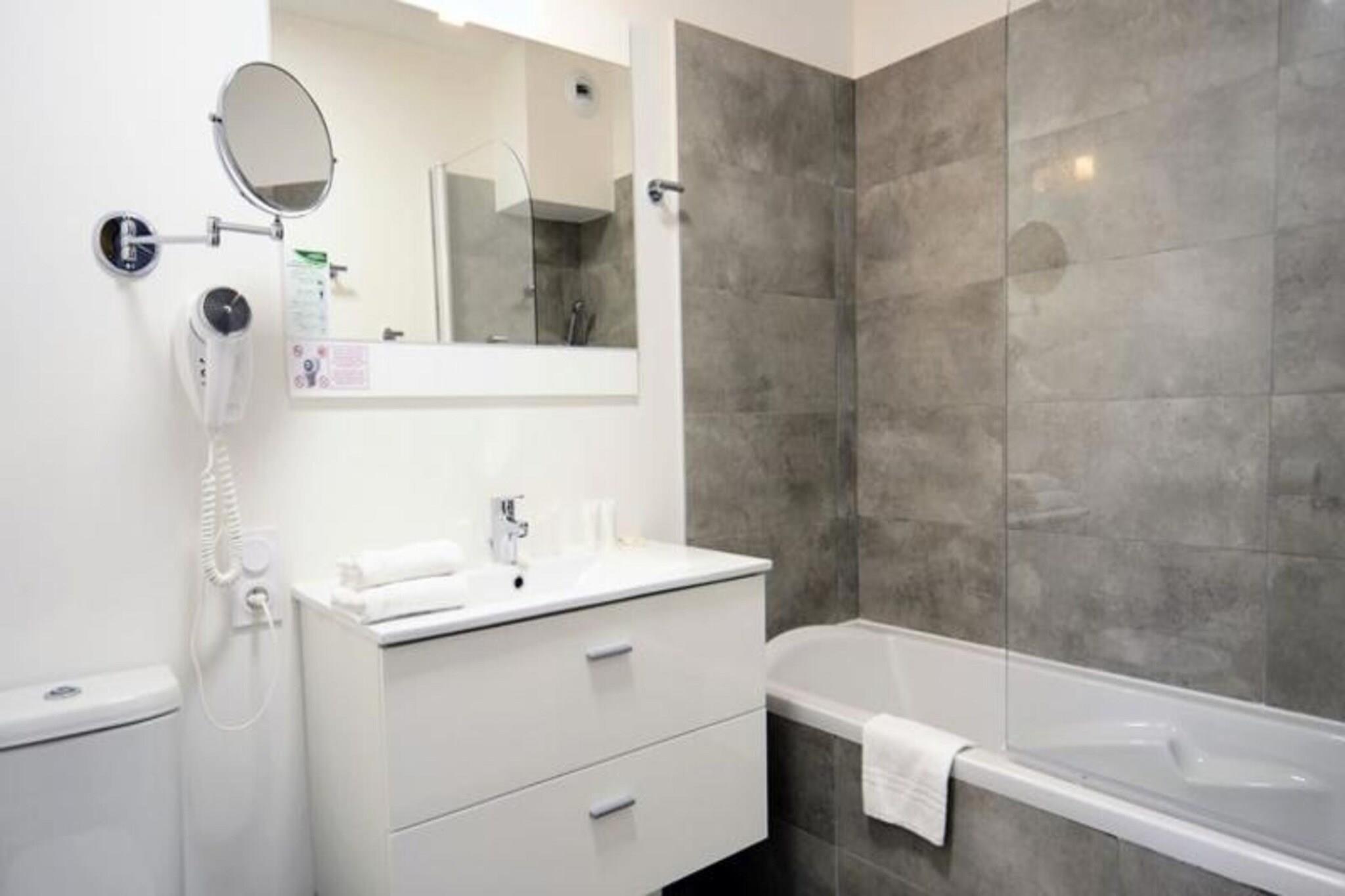 Diese charmante Unterkunft liegt nur 1 km vom berühmten Place du Capitole in Toulouse entfernt und bietet einen komfortablen und bequemen Aufenthalt im Herzen der Stadt. Das Gebäude mit seinen klassischen rosafarbenen Backsteinfassaden liegt in einem belebten Viertel mit allen Annehmlichkeiten in unmittelbarer Nähe. Dieses Anwesen eignet sich perfekt für einen Familien- oder Freundesurlaub und bietet einfachen Zugang zur lebendigen Kultur der Stadt, einschließlich der Basilika Saint Sernin, Les Jacobins und Le Capitole, die alle das außergewöhnliche Erbe von Toulouse präsentieren. Zu den nahe gelegenen Sehenswürdigkeiten zählen die historische Altstadt von Toulouse, der Canal du Midi und der Fluss Garonne, die zahlreiche Möglichkeiten für gemütliche Spaziergänge bieten. Verpassen Sie nicht einen Besuch in der Cité de l'Espace, einem faszinierenden Museum zur Weltraumforschung. Die Lage ist ideal, um die Lebenskunst von Toulouse zu entdecken und gleichzeitig die zahlreichen Museen und historischen Sehenswürdigkeiten zu genießen. Die Unterkunft verfügt über ein Zimmer für 2 Personen, auf Wunsch mit einem Doppelbett oder zwei Einzelbetten. Jedes Zimmer ist mit einer Küche, einem Badezimmer oder Duschbad mit WC und kostenfreiem WLAN ausgestattet. Gäste können außerdem den Fitnessraum, den optionalen Frühstücksservice, Wäschemöglichkeiten, Parkplätze und die Endreinigung nutzen.