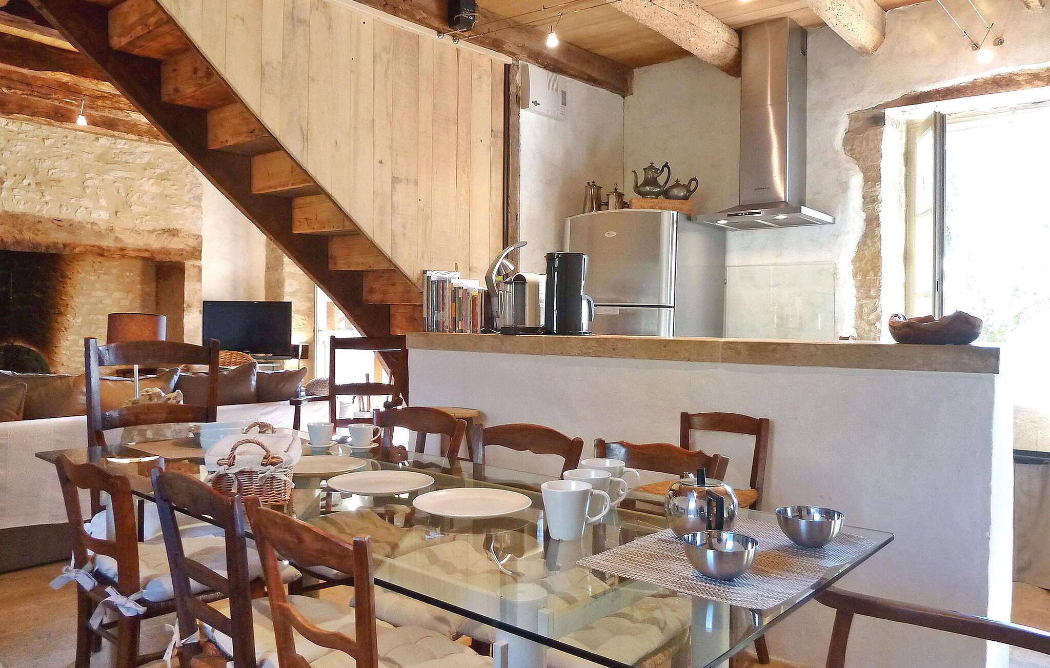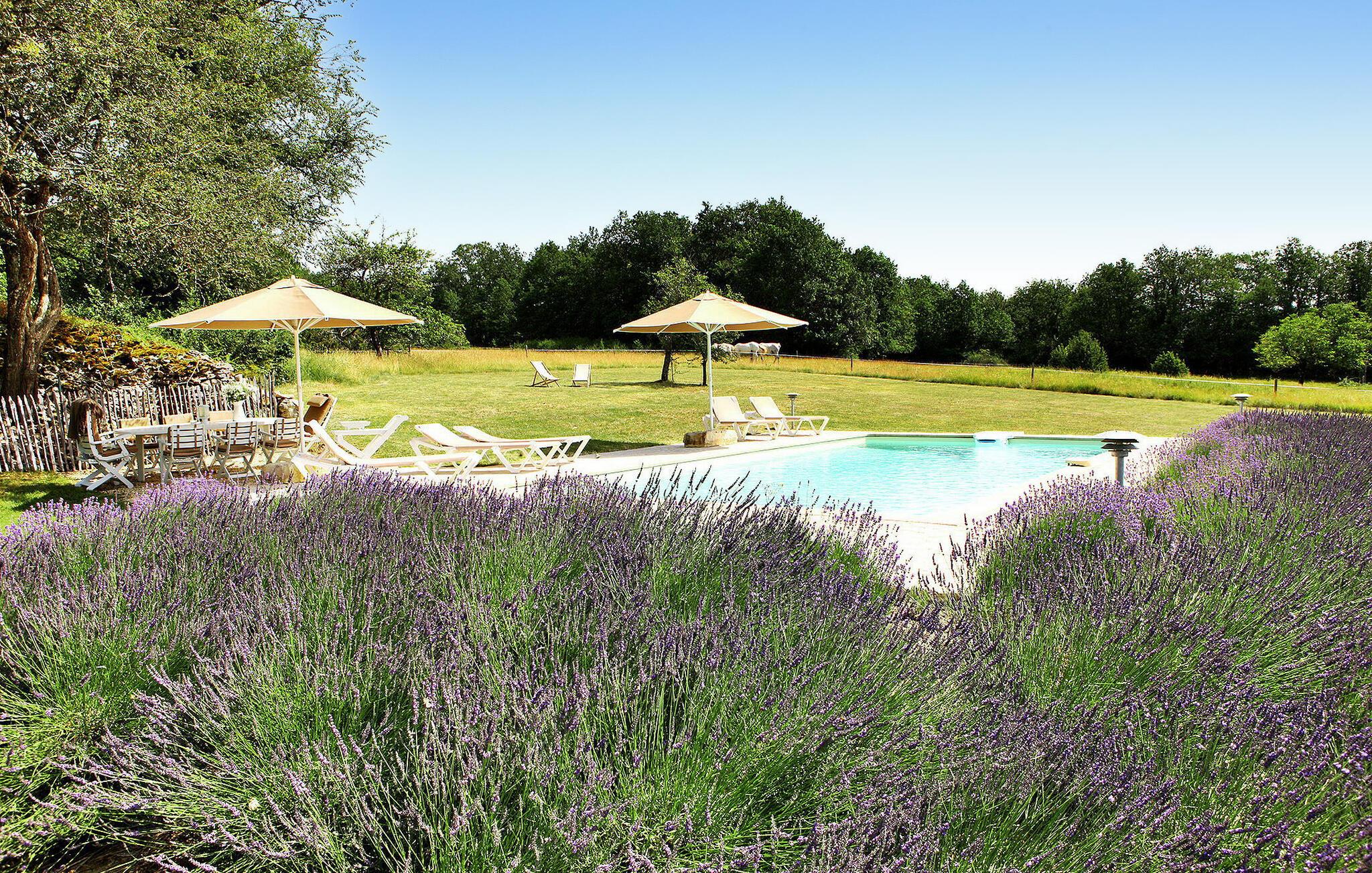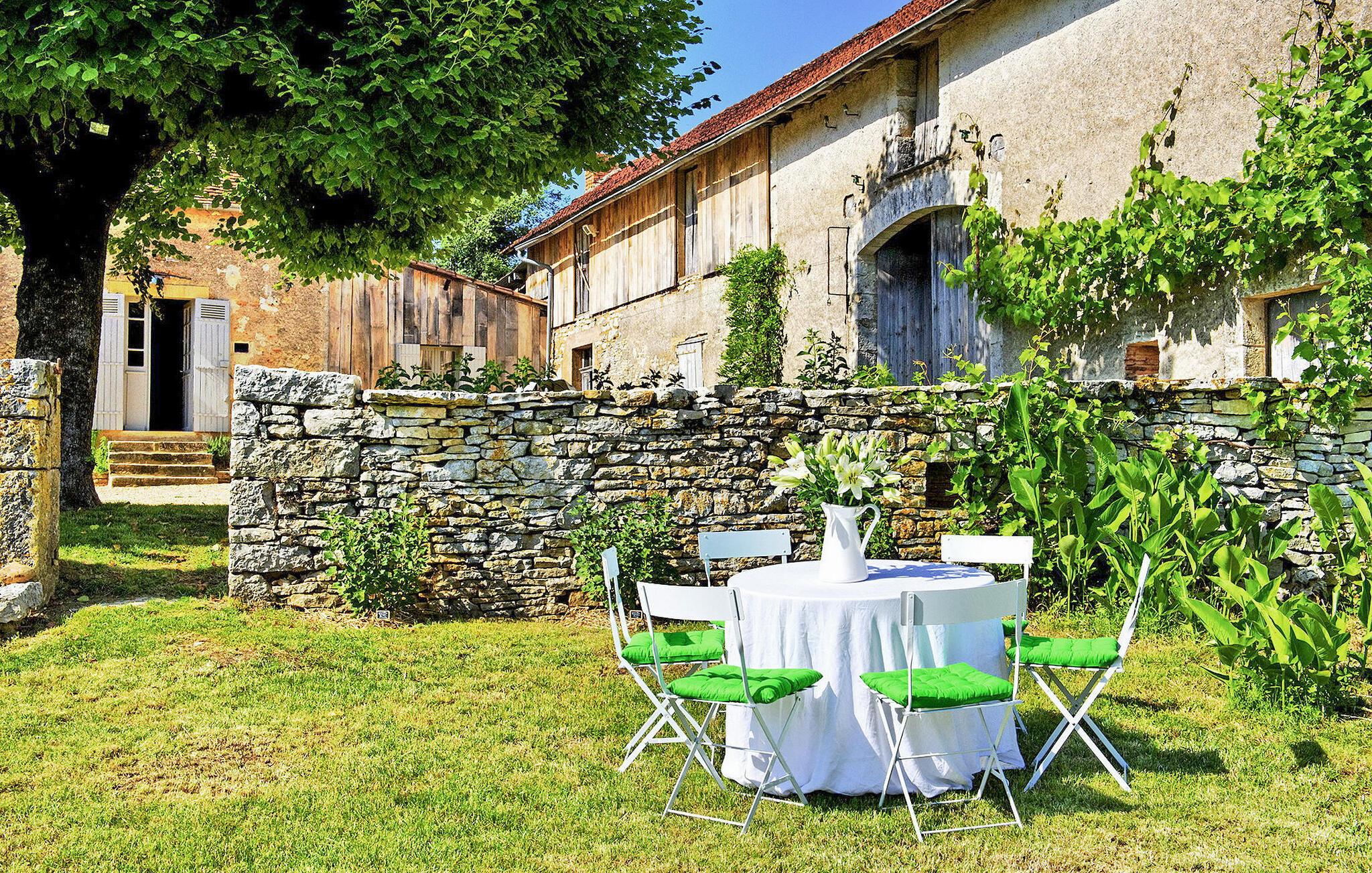 Betreten Sie einen charmanten ländlichen Rückzugsort, eine kürzlich renovierte Ferienwohnung inmitten der malerischen Landschaft des Perigord, die einen privaten beheizten Pool für einen ruhigen Rückzugsort bietet. Dieses geräumige Haus ist eine Oase voller Komfort und Gemütlichkeit. Im Erdgeschoss befindet sich ein herrlicher Wohnbereich mit gemütlicher Sitzecke. Die gut ausgestattete Küche umfasst eine Nespresso-Kaffeemaschine, eine Obstpresse und einen Toaster. Ein Essbereich bietet Zugang zur Rückseite des Hauses, die zum Pool führt. Im Erdgeschoss befinden sich zwei komfortable Schlafzimmer, während im ersten Stock ein durch Möbel und Vorhänge unterteilter offener Raum präsentiert wird. Es gibt einen Schlafbereich mit Klimaanlage, eine Sitzecke mit Sofa, ein Badezimmer und einen zweiten Schlafbereich mit Klimaanlage. Zu den Außenanlagen gehören ein weitläufiges, nicht umzäuntes Grundstück mit Feldern und Wäldern, ein umzäunter Innenhof mit Gartenmöbeln, eine an die Küche angrenzende Terrasse, ein Bereich mit provenzalischen Kräutern und eine überdachte Halle mit Tischtennis. Der private, beheizte und durch eine Alarmanlage gesicherte Pool misst 10 x 5 m, mit gepflasterter Terrasse und Rasenfläche. Für zusätzlichen Komfort gehören zur Ausstattung ein Bademantel pro Person sowie Brettspiele, Bücher und DVDs für Ihre Freizeit. Das Haus liegt auf dem Land, 2 km vom Dorf Tourtoirac mit Bäckerei und Lebensmittelgeschäft entfernt. Das Haus ist von Feldern und Wäldern und einigen Nachbarn umgeben. Genießen Sie Ihren Urlaub in der Dordogne im Quercy - Périgord.