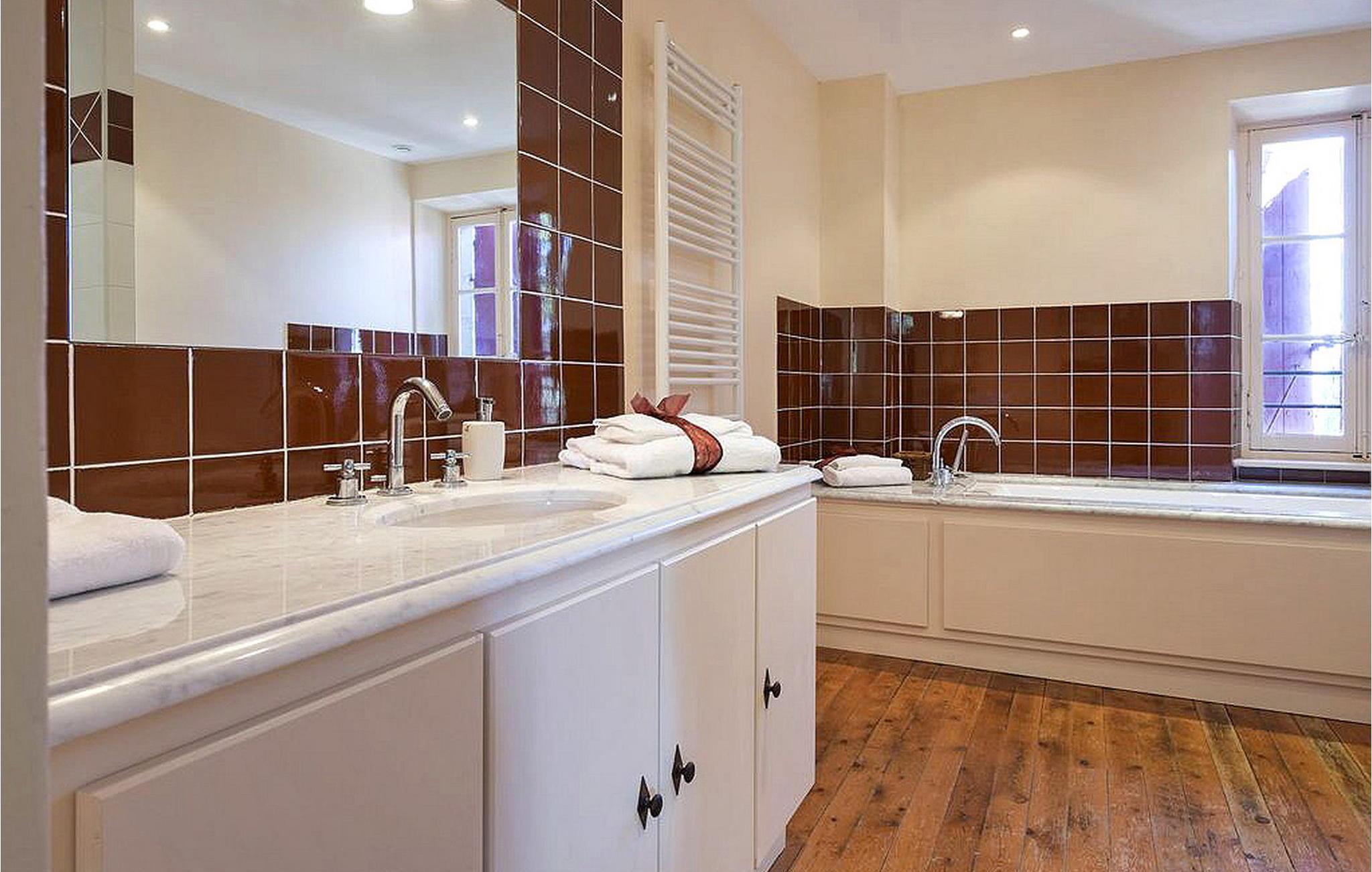 Eingebettet in einen riesigen Weinberg besteht dieses Mietobjekt aus zwei Teilen – dem ehemaligen Taubenschlag und dem Roten Haus. Im ehemaligen Taubenschlag befinden sich im Erdgeschoss ein großzügiger Wohnbereich und eine Küche, während sich über die Etagen vier klimatisierte Schlafzimmer mit jeweils eigenem Bad verteilen. Das rote Haus verfügt über ein Wohnzimmer, eine Küche, Terrassen und fünf Schlafzimmer mit Gemeinschaftsbad und eigenem Bad. Zu den Annehmlichkeiten im Außenbereich gehören ein Poolhaus mit Grill, ein beheizter Pool, ein Kinderplanschbecken, Pétanque und Tischtennis. Die Eigentümer wohnen vor Ort in einer separaten Wohnung. Das Anwesen liegt vor den Toren von Carcassonne und seiner berühmten mittelalterlichen Stadt zwischen den Städten Trèbes und Villedubert, eingebettet in eine von Natur und Weinbergen umgebene Umgebung.